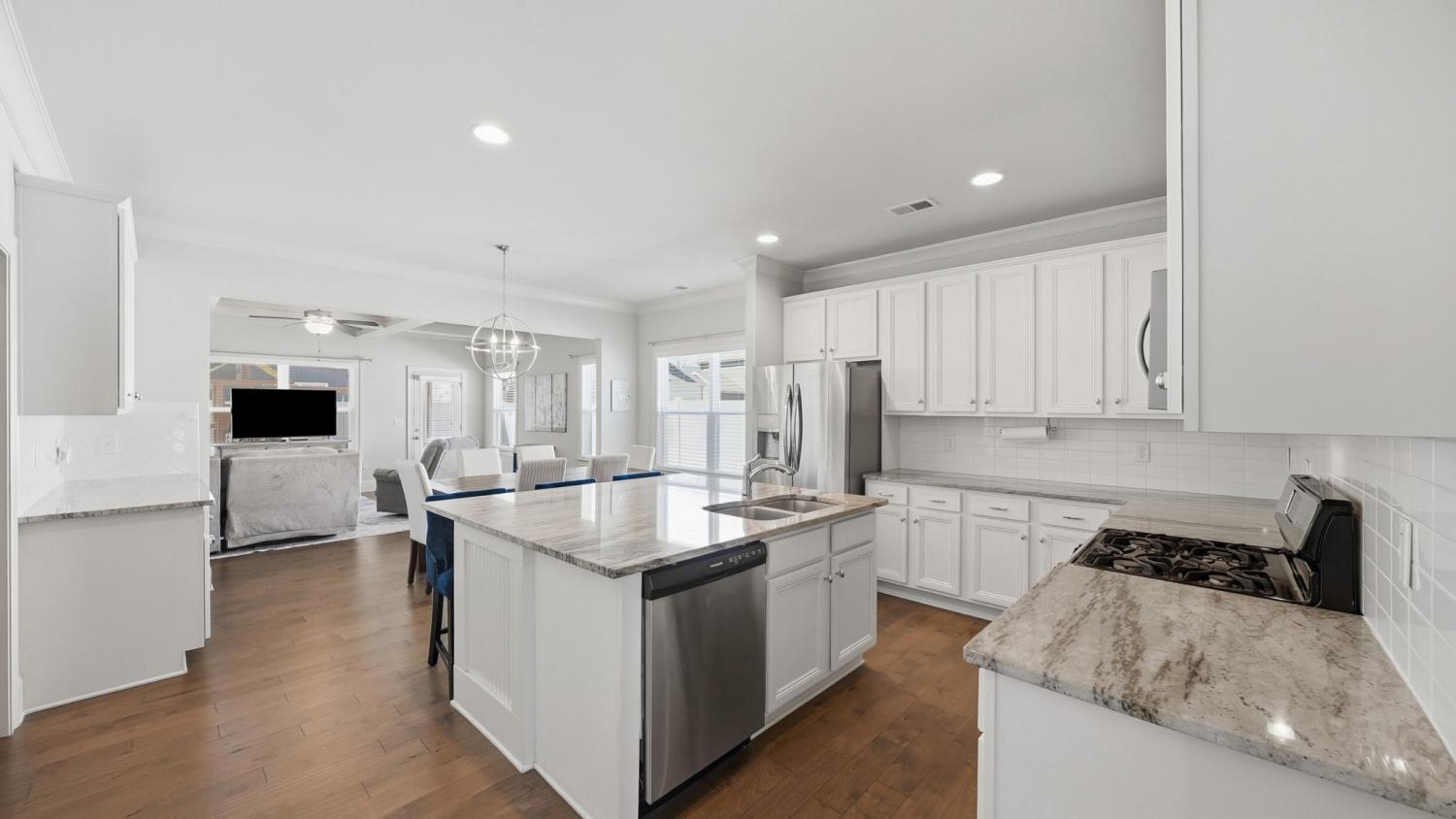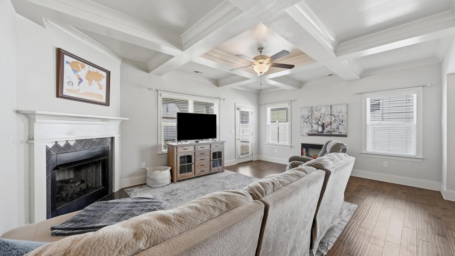 Welcome to a home that was personally designed with you and your family in mind! With over 3400 square feet, this 4 bedroom, 3.5 bath home offers the perfect balance of open gathering spaces and private retreats. From the moment you walk in, you'll notice how naturally everything flows. The main living area is bright and inviting with tons of natural light and a cozy gas fireplace. The kitchen is truly the heart of the home featuring an oversized island, stainless steel appliances, and plenty of space to gather. Whether it's busy mornings, homework at the counter, or hosting friends on the weekend, this space was made to be lived in. There's a convenient drop zone that helps keep shoes and daily life organized, while the private office with brand new soundproof doors at the front of the house creates the ideal work from home setup. The main level primary suite offers a quiet escape at the end of the day, complete with his and her closets and a spacious bath with double vanities, a soaking tub and separate shower. Upstairs, there is room for everyone to spread out. A cozy loft with built-in shelves and cabinets creates the perfect reading nook, while three spacious bedrooms and two full bathrooms, each with double vanities, make mornings easier for a busy household. The large media room with built-in surround sound is ready for movie nights, game days, or a dedicated play space. Brand new carpet upstairs, on the stair runner, and in the primary bedroom adds a fresh feel throughout. Step outside to a screened-in patio and a newly fenced backyard, perfect for letting kids and pets play freely or enjoying quiet evenings at home. Located in a welcoming community with no HOA, this home also features a rare three car garage, giving you the space and flexibility you need both inside and out. If you've been looking for a home where everyday life feels a little easier and a lot more enjoyable, this one is worth seeing.