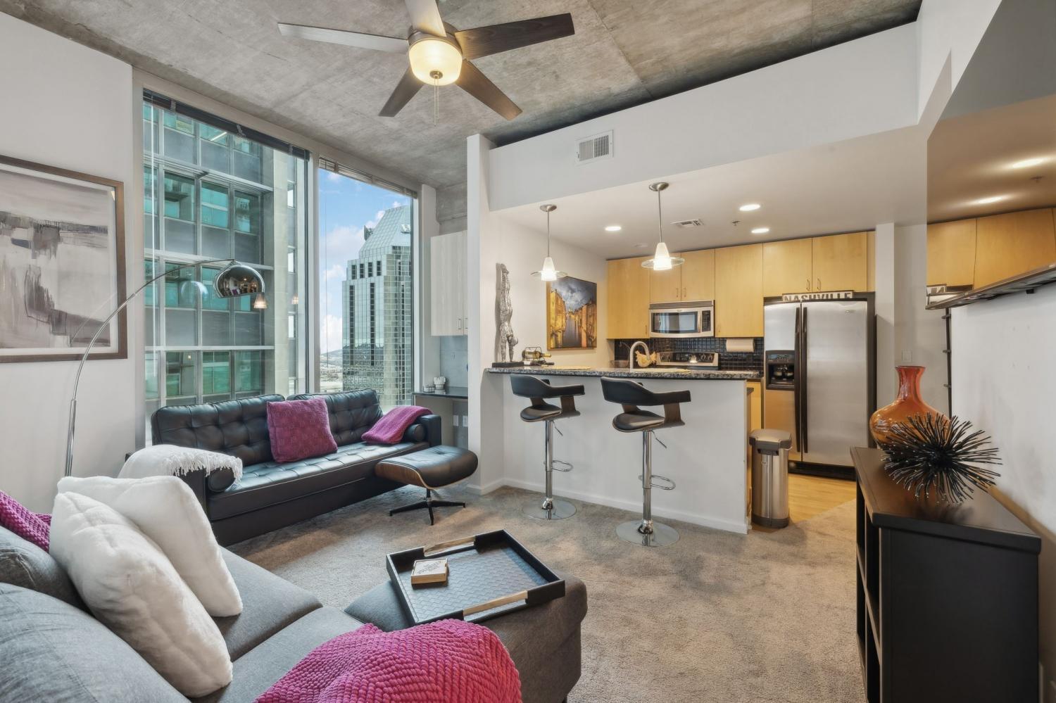 Fully furnished and truly move-in ready, this inviting downtown retreat captures the best of city living. The open-concept design features a sleek kitchen with stainless steel appliances, bar seating for two, and beautiful new carpet throughout. Floor-to-ceiling windows fill the space with natural light, creating a warm and welcoming atmosphere from the moment you walk in. The bedroom offers stunning skyline views, while a cozy nook provides the perfect space for a home office or quiet reading corner. Step out onto your private balcony to enjoy the city views that make Nashville so special. At The Viridian, residents enjoy resort-style amenities including a rooftop pool and patio, a modern fitness center, and an elegant lobby that reflects the ease and sophistication of downtown living. This is your opportunity to experience the heart of Music City with comfort, style, and convenience all in one place.
