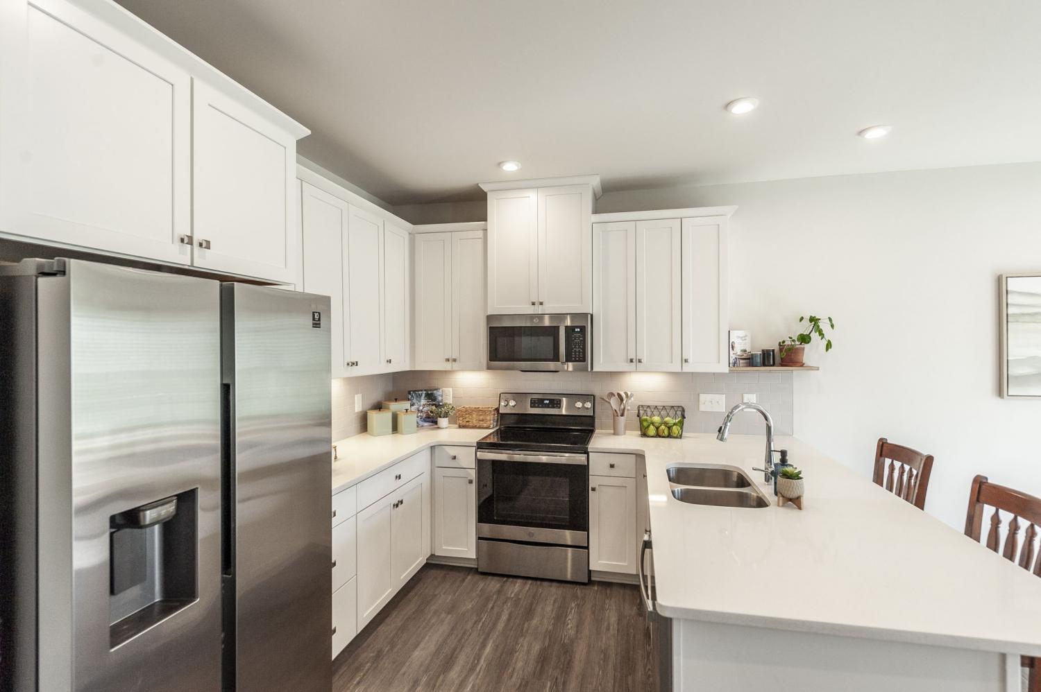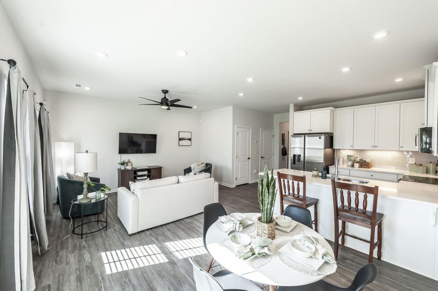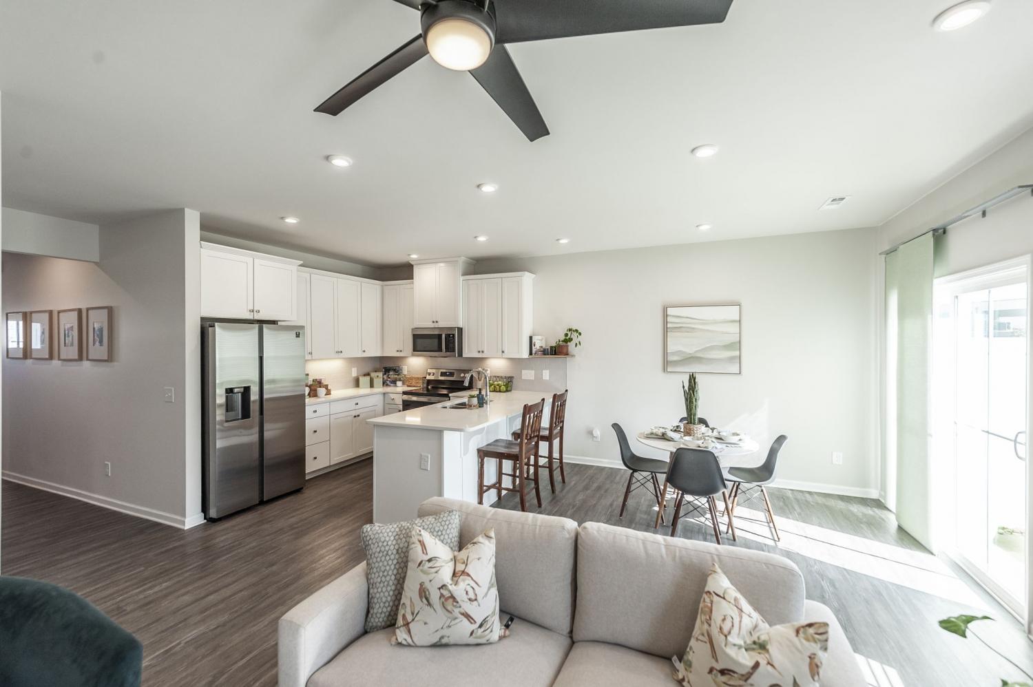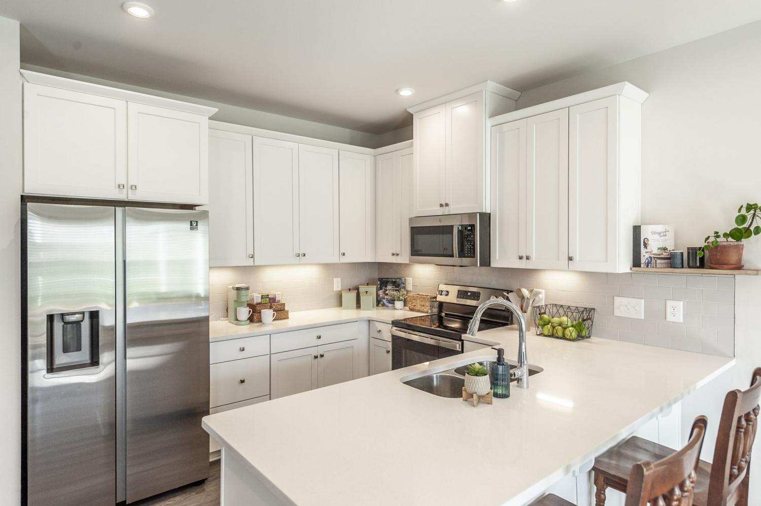 Welcome to Windsong—one of Gallatin’s most convenient and walkable communities just north of Nashville! Ideally located minutes from Old Hickory Lake and Gallatin Marina, this like-new townhome offers the perfect blend of modern comfort, thoughtful upgrades, and everyday convenience. With sidewalks throughout and easy access to nearby retail, dining, and daily essentials, this location truly delivers on lifestyle. Situated on a premium lot backing to a peaceful tree line, this 3-bedroom, 2.5-bath home offers added privacy and a serene backdrop that sets it apart from typical new construction. Inside, you’ll find a bright, open floor plan designed for both everyday living and entertaining. The main level features durable luxury vinyl plank flooring and a spacious living area that flows seamlessly into the kitchen. The kitchen is a standout with crisp white cabinetry, granite countertops, a tile backsplash, stainless steel appliances, and a pantry for extra storage. Even better—this home includes a stainless refrigerator plus a washer and dryer, offering immediate value and convenience over new builds. Upstairs, all bedrooms are well-sized and equipped with remote-operated ceiling fans for added comfort. The bathrooms have been upgraded with enhanced shower heads, and the main level powder room features stylish wallpaper, adding a designer touch you won’t find in standard units. This home is truly move-in ready and has been thoughtfully upgraded throughout. A one-car garage provides secure parking and storage, and the home is perfectly positioned directly across from additional guest parking—making it easy for visitors. If you’re looking for low-maintenance living in a growing area with a premium setting and upgrades already in place, this Windsong townhome is a must-see.