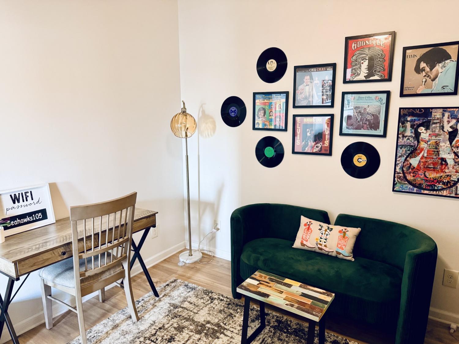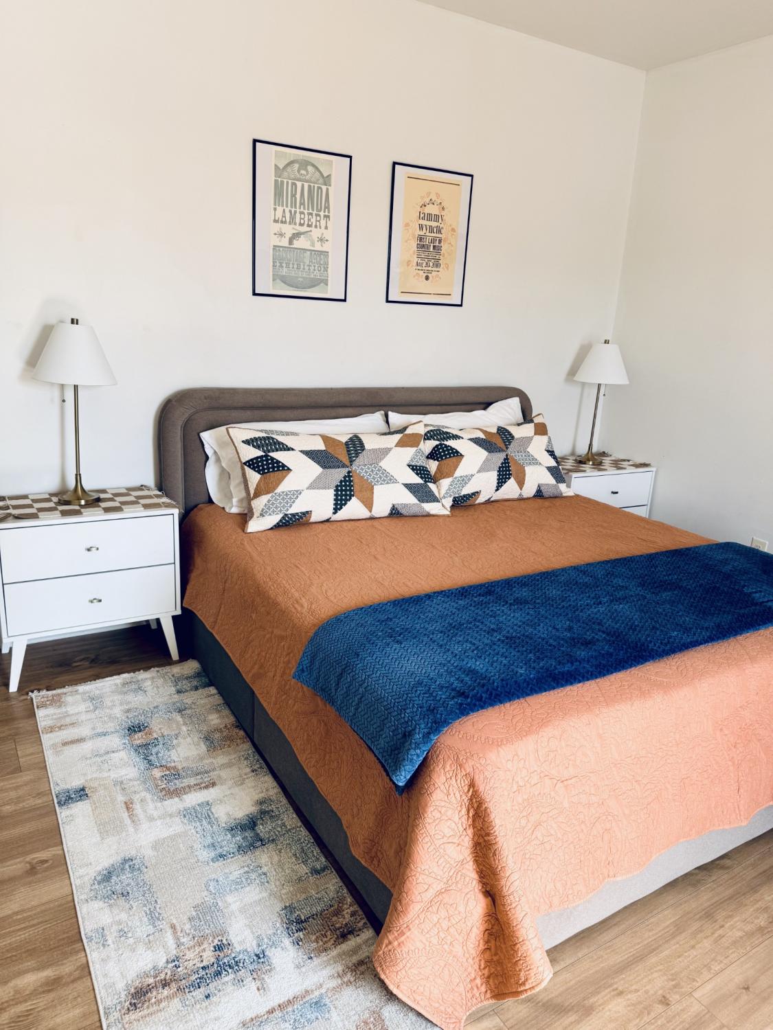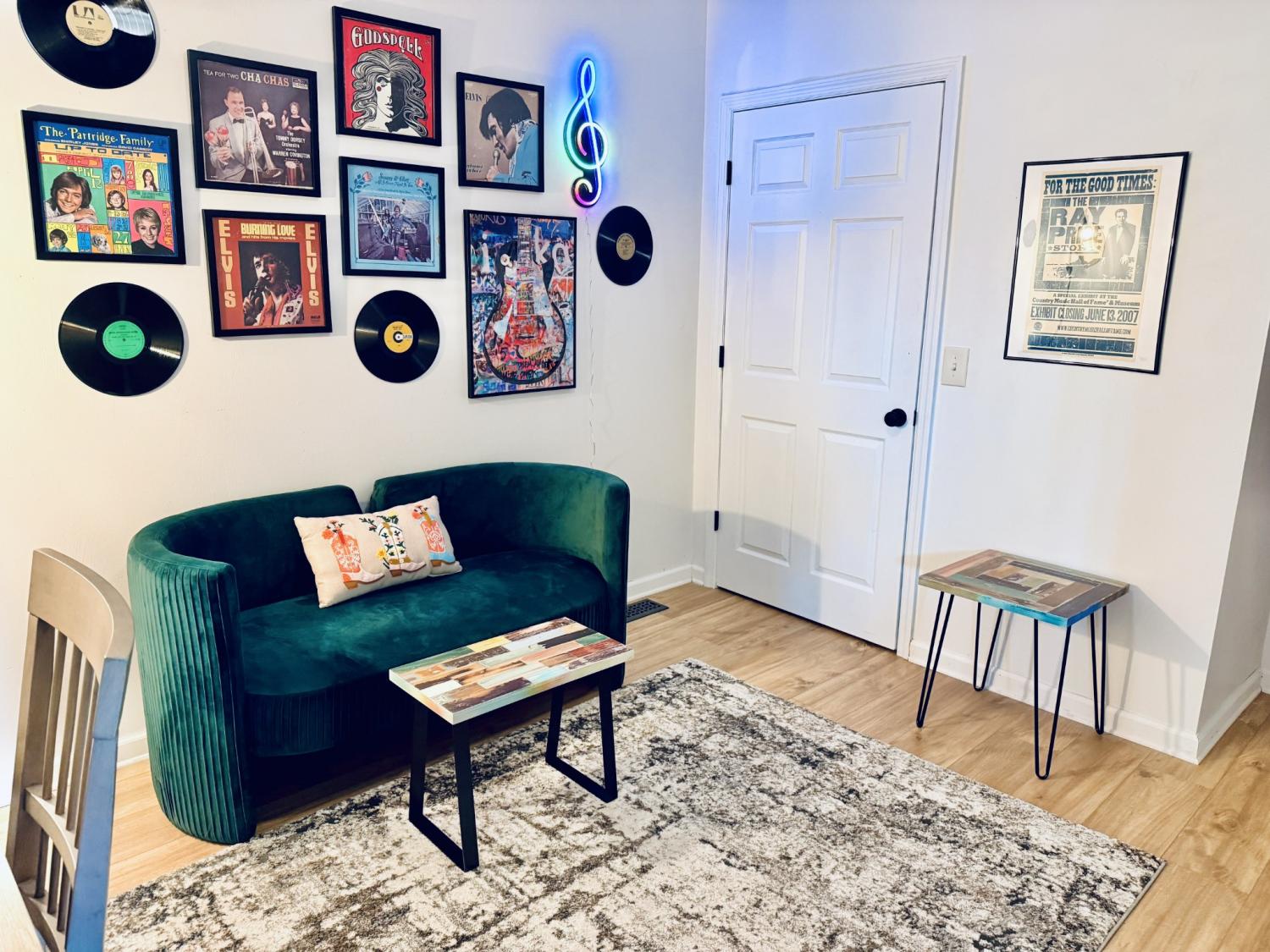 FULLY FURNISHED AND ALL UTILITIES INCLUDED! 2 BR + Bonus Room. Discover the absolute best location in Maury Co! This bright, sunny home sits right beside the vibrant Farmers Market at Riverwalk Park, directly across from two beautiful parks (with playground and splash pad!), and just a 2-minute walk to downtown restaurants and wine bar. Everything is wonderfully walkable. Inside you'll find an open airy layout with high ceilings, tray ceiling in the living room, arched doorways, and an oversized front porch. Well-decorated with modern touches and Music City decor. The bonus room makes a perfect office or extra space to unwind. Ideal for remote workers, relocators, or extended visits. Primary bedroom features a new, comfortable king bed, double closet, and smart TV. Second bedroom has two twin beds, plus a small desk and chair (with mirror) for homework, work, or getting ready. No traditional backyard needed: with the green open space of Riverwalk Park right across the street, it feels expansive and surrounded by nature. This is one side of a duplex, but the other unit is fully separate with its own alley entrance on the backside, so privacy is never an issue. Off-street parking spots are available right at the property (plenty for your group). Quiet yet central, this is an ideal long-term setup for stays of 30 days or more. No smoking. No pets.