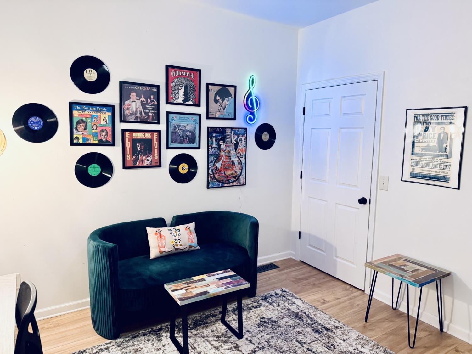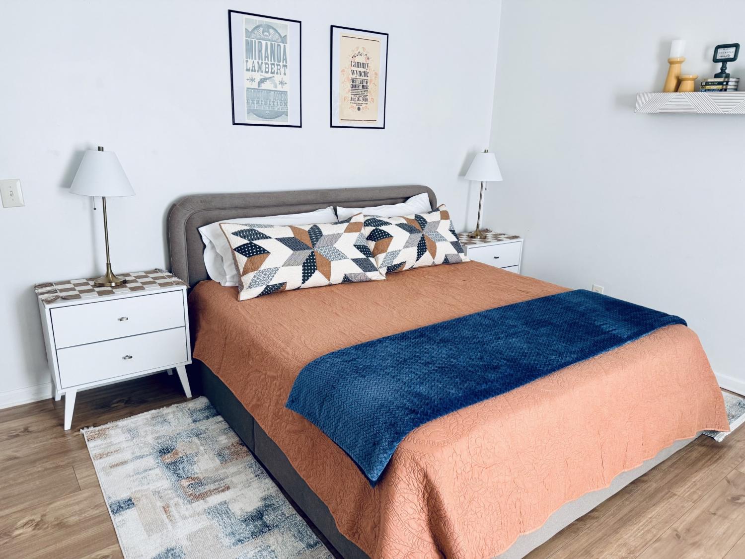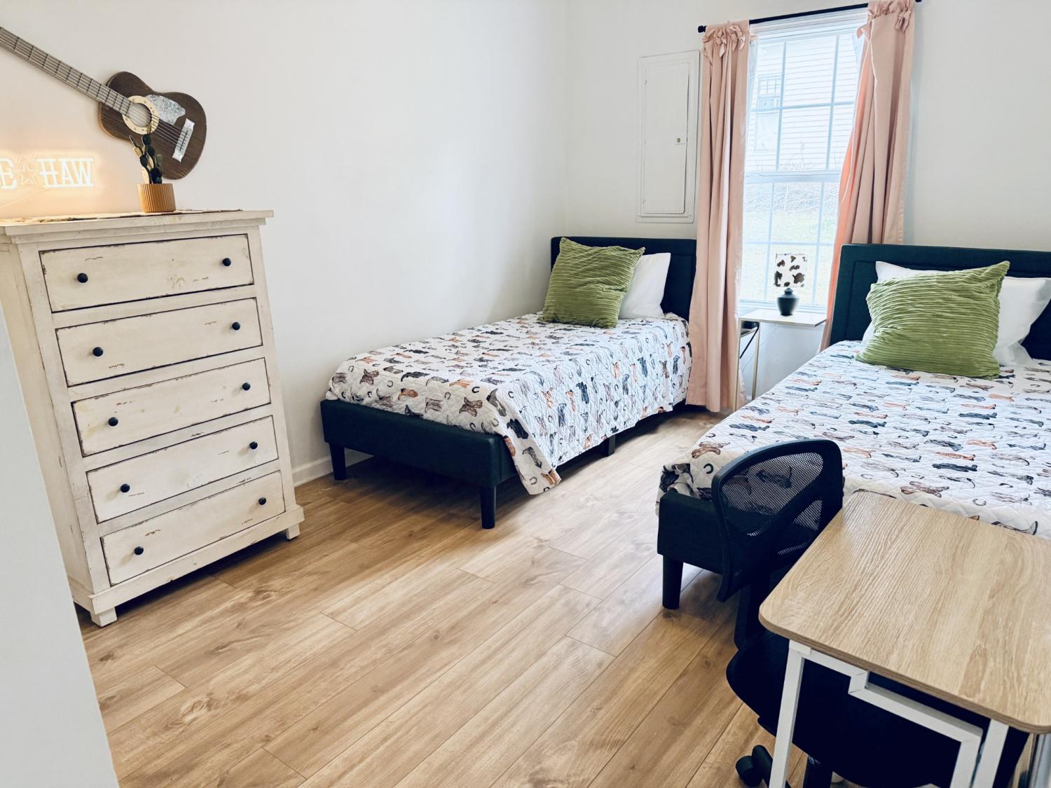 FULLY FURNISHED AND ALL UTILITIES INCLUDED! 2 BR + Bonus Room. Discover the absolute best location in Maury Co! This bright, sunny home sits right beside the vibrant Farmers Market at Riverwalk Park, directly across from two beautiful parks (with playground and splash pad!), and just a 2-minute walk to downtown restaurants and wine bar. Everything is wonderfully walkable. Inside you'll find an open airy layout with high ceilings, tray ceiling in the living room, arched doorways, and an oversized front porch. Well-decorated with modern touches and Music City decor. The bonus room makes a perfect office or extra space to unwind. Ideal for remote workers, relocators, or extended visits. Primary bedroom features a new, comfortable king bed, double closet, and smart TV. Second bedroom has two twin beds, plus a small desk and chair (with mirror) for homework, work, or getting ready. No traditional backyard needed: with the green open space of Riverwalk Park right across the street, it feels expansive and surrounded by nature. This is one side of a duplex, but the other unit is fully separate with its own alley entrance on the backside, so privacy is never an issue. Off-street parking spots are available right at the property (plenty for your group). Quiet yet central, this is an ideal long-term setup for stays of 30 days or more. No smoking. No pets.