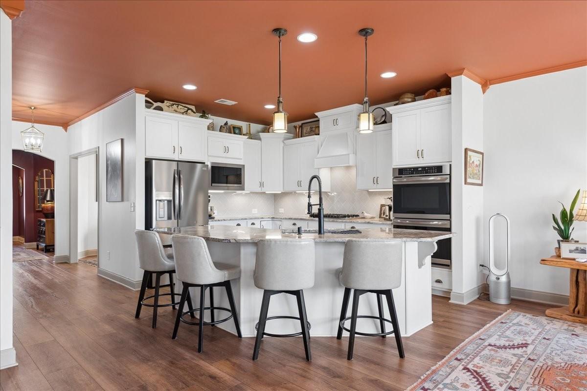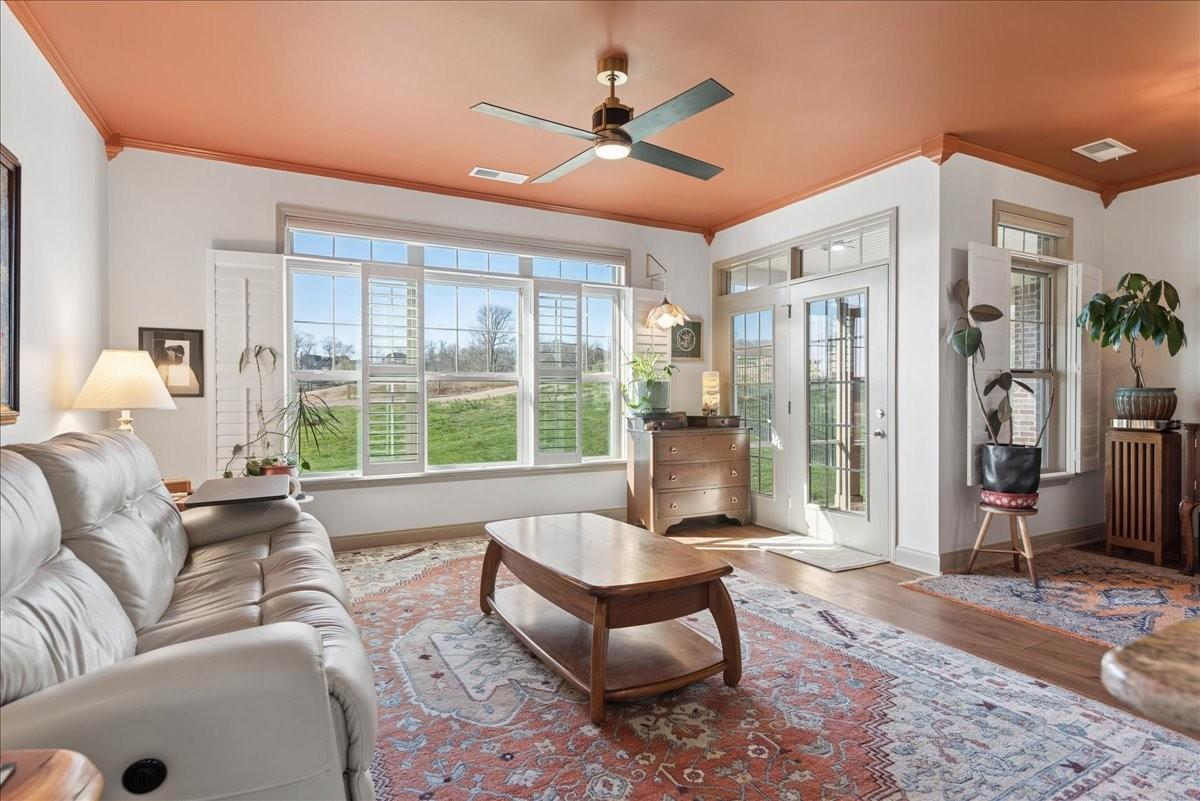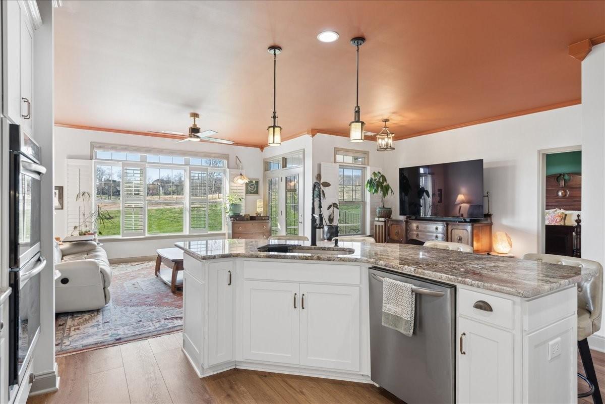 Located in the highly sought-after Five Oaks Golf & Country Club overlooking HOLE 2, this beautifully maintained one-level all-brick home offers easy living with an exceptional golf course setting. Owner has just completed over $40,000 in upgrades: February 2024 LVP flooring throughout home, Remote control blinds, New Countertops, New Cabinet Hardware, New lighting, Home Filtration system and MORE!! Featuring 2 bedrooms, 2 bathrooms, and a versatile flex/office space, the home is perfectly positioned along Hole 2, providing scenic views and a peaceful backdrop. The spacious kitchen is designed for both everyday living and entertaining, complete with granite countertops, tile backsplash, double ovens, a gas cooktop, and a vented hood. The open layout flows seamlessly into the main living area. The owner’s suite offers a private retreat with a large walk-in closet, double vanities, and a frameless tile shower with built-in bench. Step outside to the covered and screened back patio—an ideal space to relax and enjoy the golf course views year-round. This home has been thoughtfully upgraded with features including crown molding, plantation shutters, a custom drop zone with cabinetry in the laundry room, and a professionally finished garage floor. Enjoy true low-maintenance living, with the HOA covering grounds maintenance, lawn care, exterior upkeep including the roof, irrigation, insurance, pest control, underground utilities, and more. Optional membership provides access to the golf course, pools, tennis and pickleball courts, and clubhouse amenities.