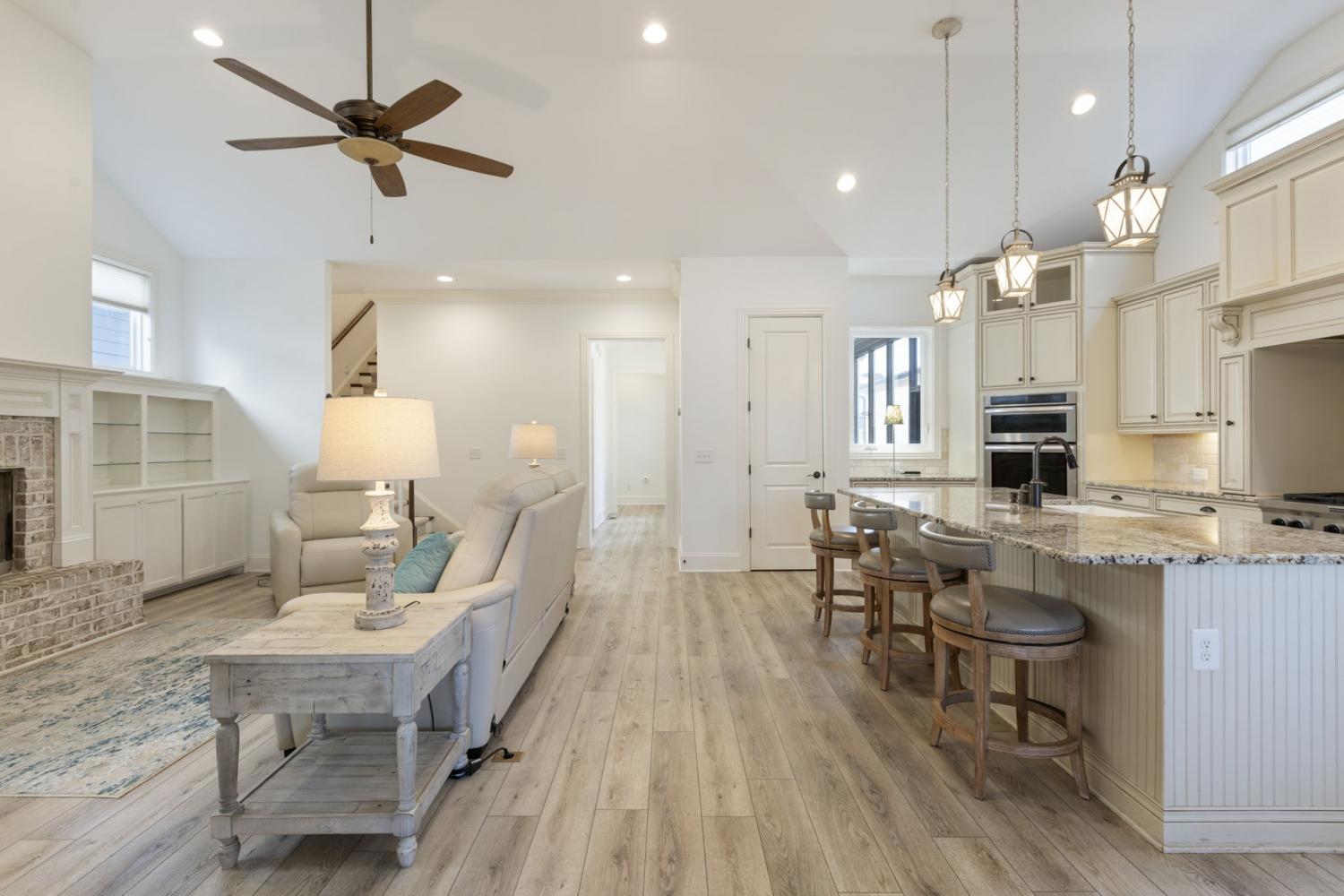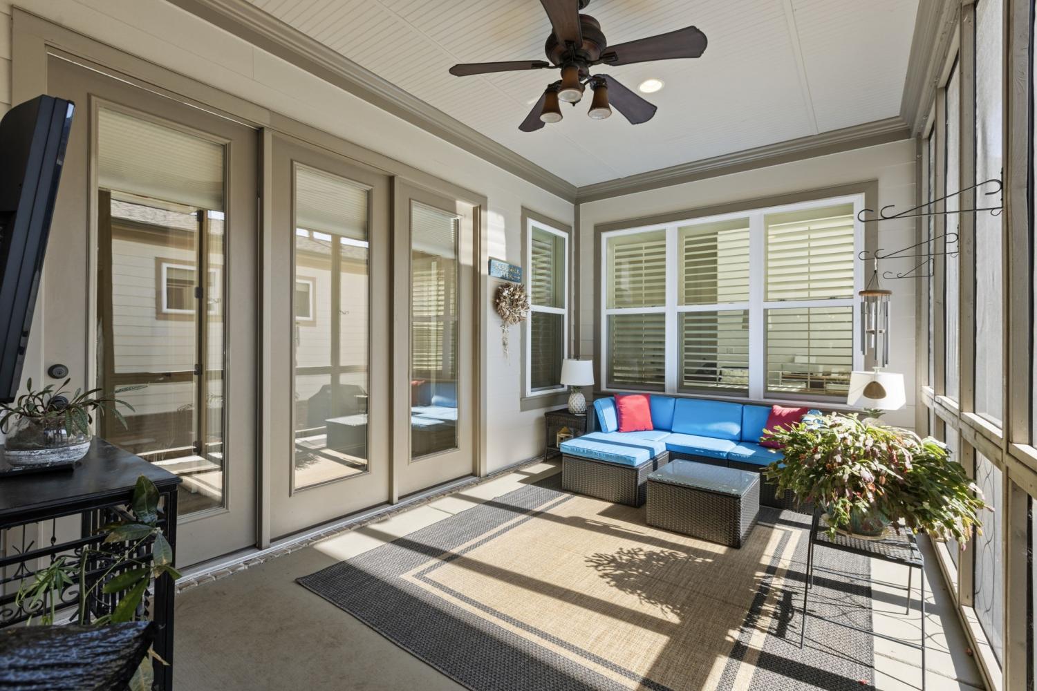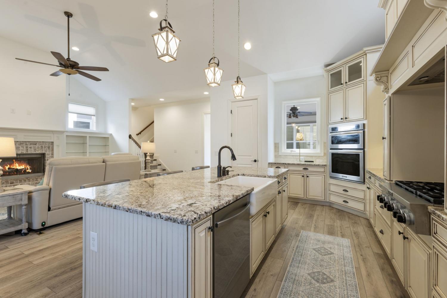 A welcoming front porch, soft natural light, and thoughtfully designed spaces—this Westhaven home captures the ease and charm that make everyday living feel just a little more elevated. Inside, the main level unfolds with 10-foot ceilings and a stunning 13-foot vaulted living room, where a lovely fireplace creates a warm and inviting focal point. Luxury vinyl plank flooring runs throughout the main living areas, with original hardwoods preserved beneath, offering both style and flexibility for the next owner. The kitchen is designed for connection and convenience, featuring a large island, custom cabinetry and shelving, granite countertops, and under-cabinet lighting. A pass-through window to the porch makes entertaining effortless—whether it’s morning coffee outside or hosting friends on a summer evening. The main level offers two bedrooms, including a spacious primary suite with a sitting area and a well-appointed bath complete with double vanities, soaking tub, and glass-enclosed shower. Upstairs, a private third bedroom and full bath create the perfect space for guests or a tucked-away retreat. Outdoor living is just as inviting, with a covered screened-in porch, an additional patio, and a fenced side yard—ideal for relaxing or entertaining in a more intimate setting. Set within the highly sought-after Westhaven community, residents enjoy a true lifestyle experience with resort-style amenities, golf-cart-friendly streets, and dining, coffee, and shopping just moments from your front door.