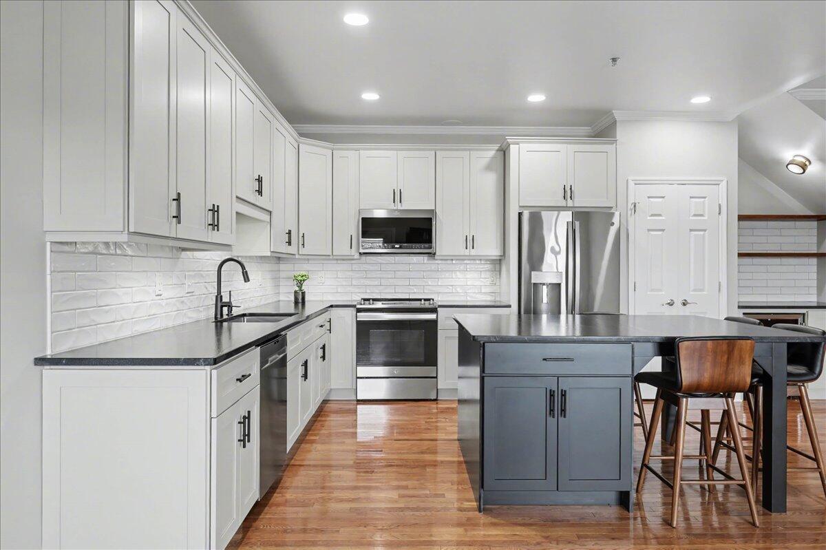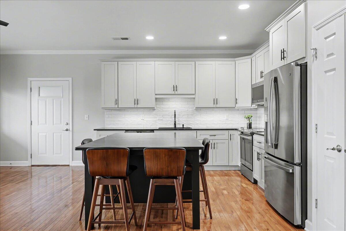 If you've been waiting for the perfect spot in North Chattanooga, this is it! Welcome to this beautifully maintained 3-bedroom, 2.5-bath condo located in the highly sought-after Normal Park school zone, right in the heart of everything that makes Chattanooga so special. Built in 2014, this home offers the open, easy flow everyone loves, perfect for both entertaining and everyday living. The spacious living, dining, and kitchen areas connect seamlessly, featuring hardwood floors, recessed lighting, and thoughtful touches throughout, including a mounted TV in the living area that stays. The kitchen truly shines with abundant cabinetry, a pantry, stainless steel appliances, a tiled backsplash, a breakfast bar with extra storage, and even a wine cooler with a dedicated bar area, ideal for hosting. Plus, the washer, dryer, and refrigerator all remain for added convenience. The primary suite is located on the main level and features a large walk-in closet with built-ins. The en-suite bathroom offers a separate tiled shower and stylish finishes, creating a relaxing retreat. Upstairs, you'll find two additional spacious bedrooms, both with walk-in closets--along with a full bathroom, making it perfect for guests, family, or even a home office setup. Step outside to your private deck, a peaceful spot to enjoy your morning coffee or unwind in the evening while taking in the city skyline. You'll also appreciate the two assigned parking spaces, no need to worry about parking! You're just minutes from local restaurants, parks, shopping, and all the charm of the North Shore, with quick access to downtown Chattanooga and the riverfront. Plus, you're only 2 blocks from Coolidge Park, perfect for getting out and enjoying the area. This is low-maintenance living in one of Chattanooga's most loved neighborhoods. Come see it before it's gone!