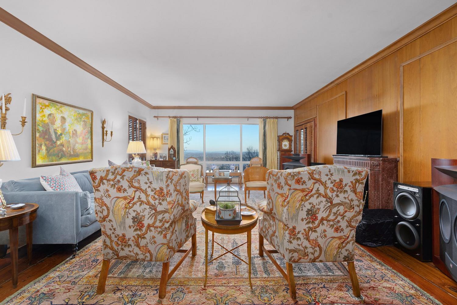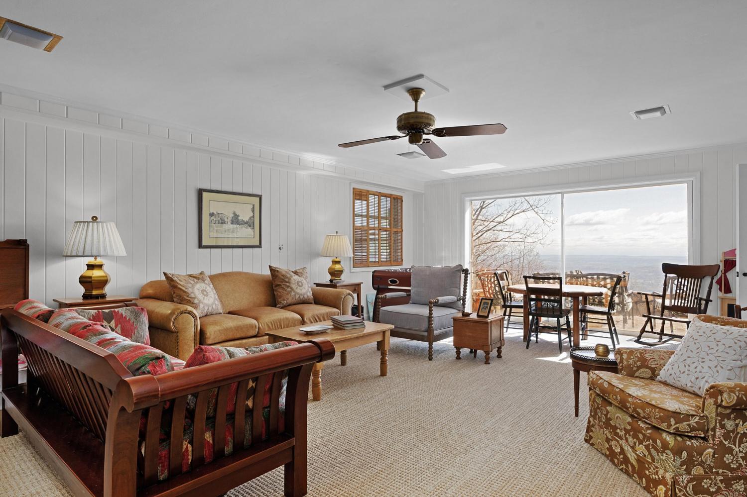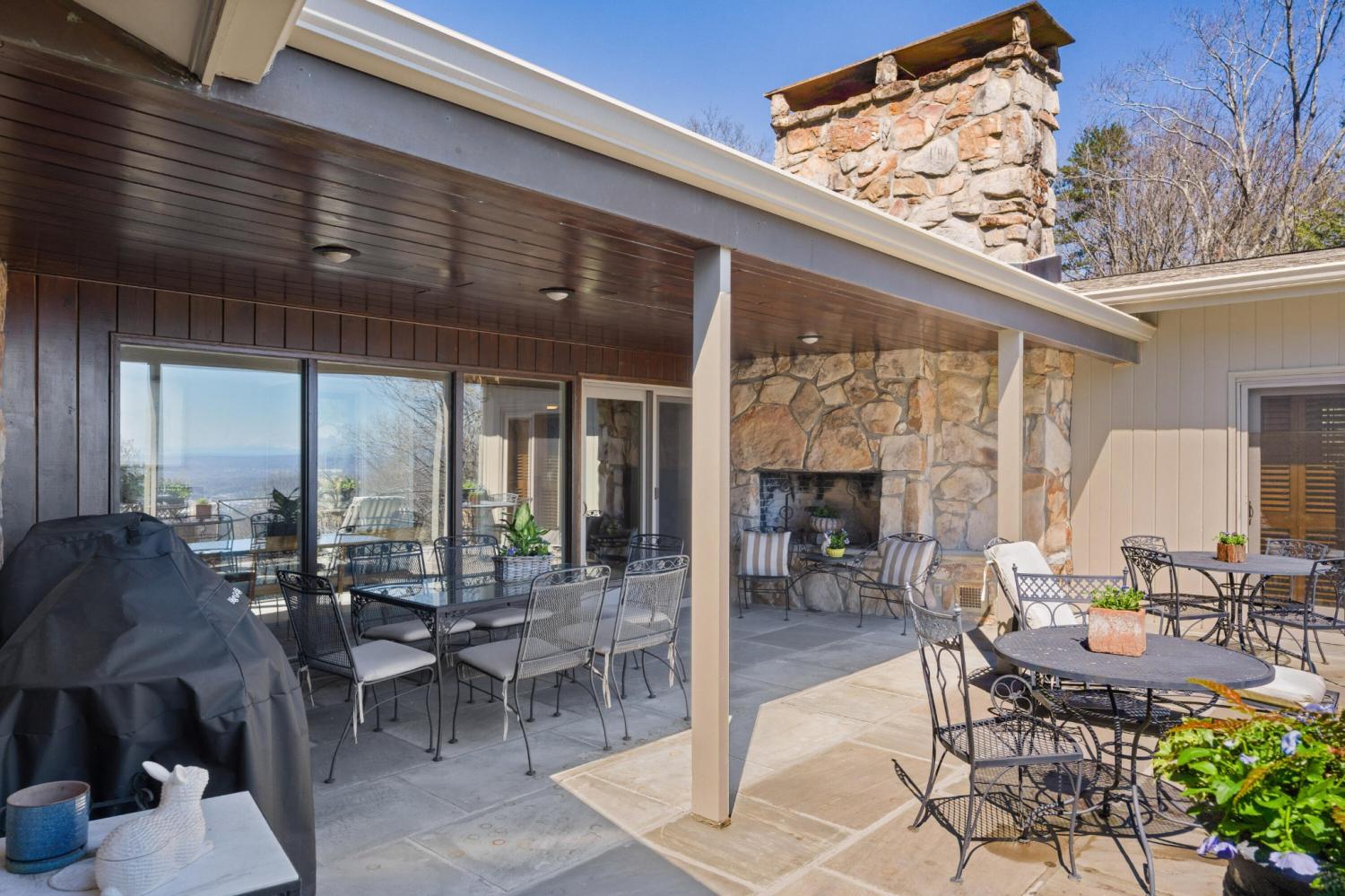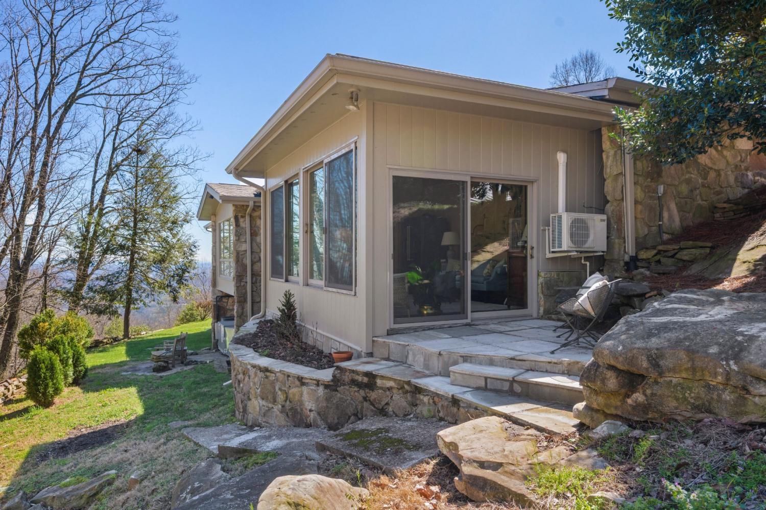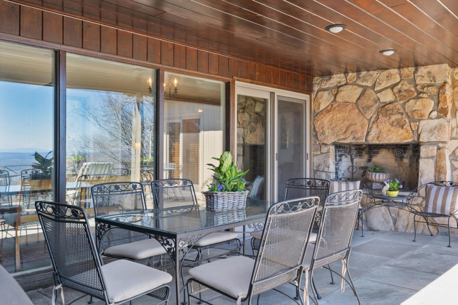 Family owned since 1977, this mid-century Lookout Mountain brow home offers a unique opportunity for the buyer seeking a premier brow estate with 3 parcels totaling over 5.19 +/- acres offering views, privacy, a wet weather creek, natural rock formations and endless potential. The sellers have completed many recent improvements, such as adding additional stone to the exterior and sanding and staining the beautiful carport to enhance curb appeal, replacing the HVAC units and more, but this 4 bedroom, 4 bath, one-level over a daylight basement also boasts many of the original desirable mid-century features, such as gorgeous hardwoods, stone, brick and marble tile flooring, solid wood paneling, crown moldings, multiple built-in features, 5 fireplaces, and wonderful windows everywhere you look that take full advantage of the views and provide warm natural lighting on both levels. The home has a great flow for entertaining, and your tour begins with entry to a large foyer that has a wall of windows to the main patio area with an outdoor fireplace, a pass-through wet bar to the den and access to the large formal living room. The living room has a fireplace and amazing views and adjoins the formal dining room. The handsome den also has a fireplace, the wet bar with ice maker, beautiful wood paneling, built-ins and double doors to the breakfast room and kitchen. The laundry room is off of the breakfast area as is the access to the double carport for easy loading and unloading and everyday ingress and egress. The kitchen adjoins the sunroom which will quickly become a favorite spot in the house. The primary suite is located on the back and enjoys the brow view, has a gas fireplace and the primary bath with a dressing area that has multiple built-ins. It has its own tub/shower, but there is also a separate shower that is shared with the guest bedroom. The guest bedroom also has access to the hall powder room.