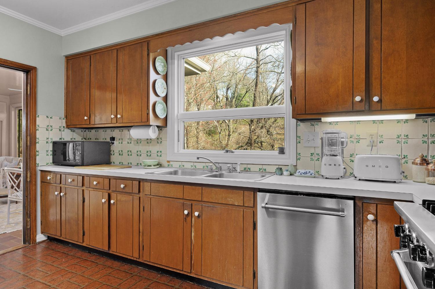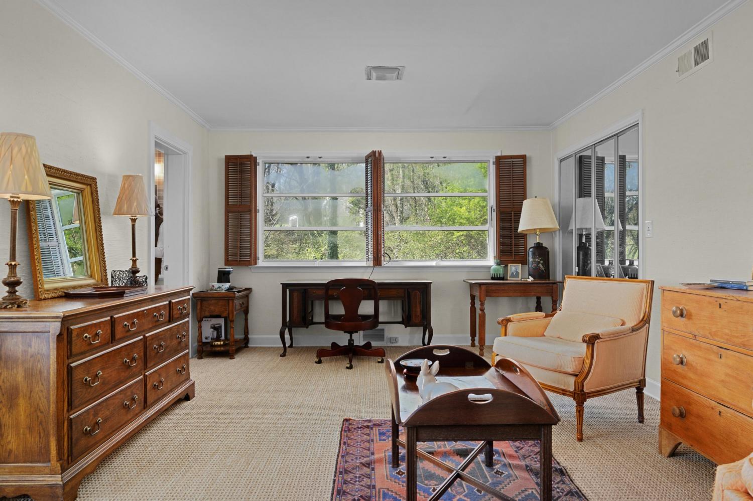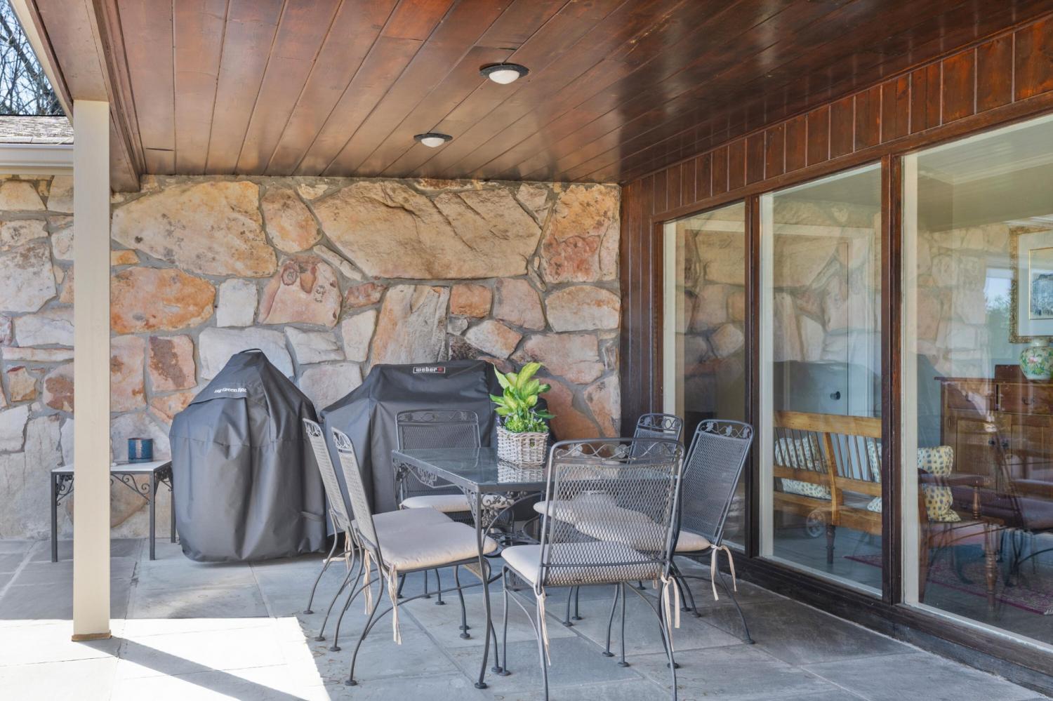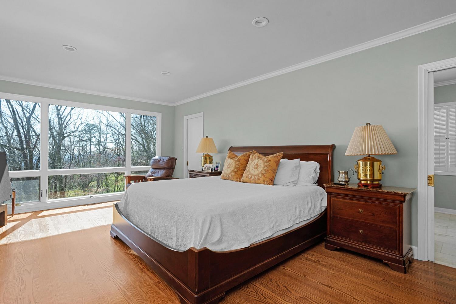 Family owned since 1977, this mid-century Lookout Mountain brow home offers a unique opportunity for the buyer seeking a premier brow estate with 3 parcels totaling over 5.19 +/- acres offering views, privacy, a wet weather creek, natural rock formations and endless potential. The sellers have completed many recent improvements, such as adding additional stone to the exterior and sanding and staining the beautiful carport to enhance curb appeal, replacing the HVAC units and more, but this 4 bedroom, 4 bath, one-level over a daylight basement also boasts many of the original desirable mid-century features, such as gorgeous hardwoods, stone, brick and marble tile flooring, solid wood paneling, crown moldings, multiple built-in features, 5 fireplaces, and wonderful windows everywhere you look that take full advantage of the views and provide warm natural lighting on both levels. The home has a great flow for entertaining, and your tour begins with entry to a large foyer that has a wall of windows to the main patio area with an outdoor fireplace, a pass-through wet bar to the den and access to the large formal living room. The living room has a fireplace and amazing views and adjoins the formal dining room. The handsome den also has a fireplace, the wet bar with ice maker, beautiful wood paneling, built-ins and double doors to the breakfast room and kitchen. The laundry room is off of the breakfast area as is the access to the double carport for easy loading and unloading and everyday ingress and egress. The kitchen adjoins the sunroom which will quickly become a favorite spot in the house. The primary suite is located on the back and enjoys the brow view, has a gas fireplace and the primary bath with a dressing area that has multiple built-ins. It has its own tub/shower, but there is also a separate shower that is shared with the guest bedroom. The guest bedroom also has access to the hall powder room.