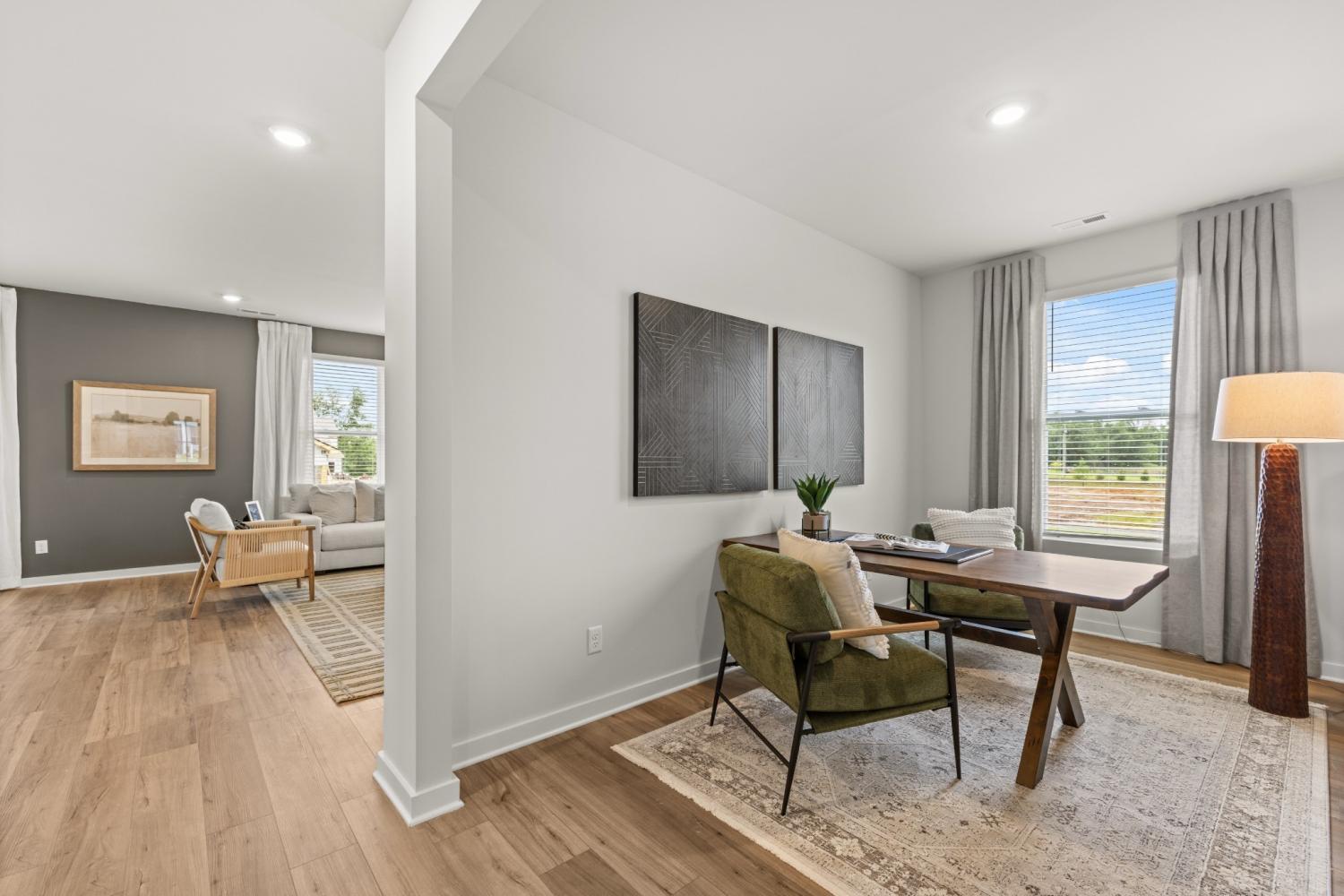Welcome to the Laurel. This spacious and modern two-story home is ready for various lifestyles. A convenient study and bedroom are located off the foyer, leading to a flexible open-concept layout shared between the kitchen, dining area and family room. A versatile loft provides a shared living space upstairs, perfectly placed near four bedrooms, including the luxurious owner’s suite with a spa-inspired bathroom and dual walk-in closets for growing wardrobes. With all kitchen appliances included—fridge too—plus blinds and select smart-home features, this home blends charm with convenience from the moment you move in. Ask about special incentives towards lowering your rate or closing costs covered when using preferred lender! Images from artist rendering. Actual configuration and features may vary.