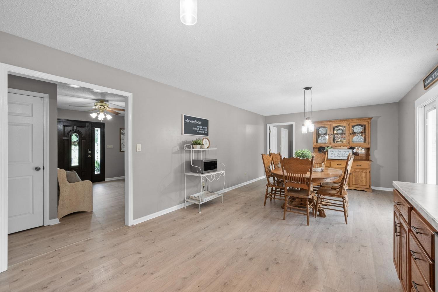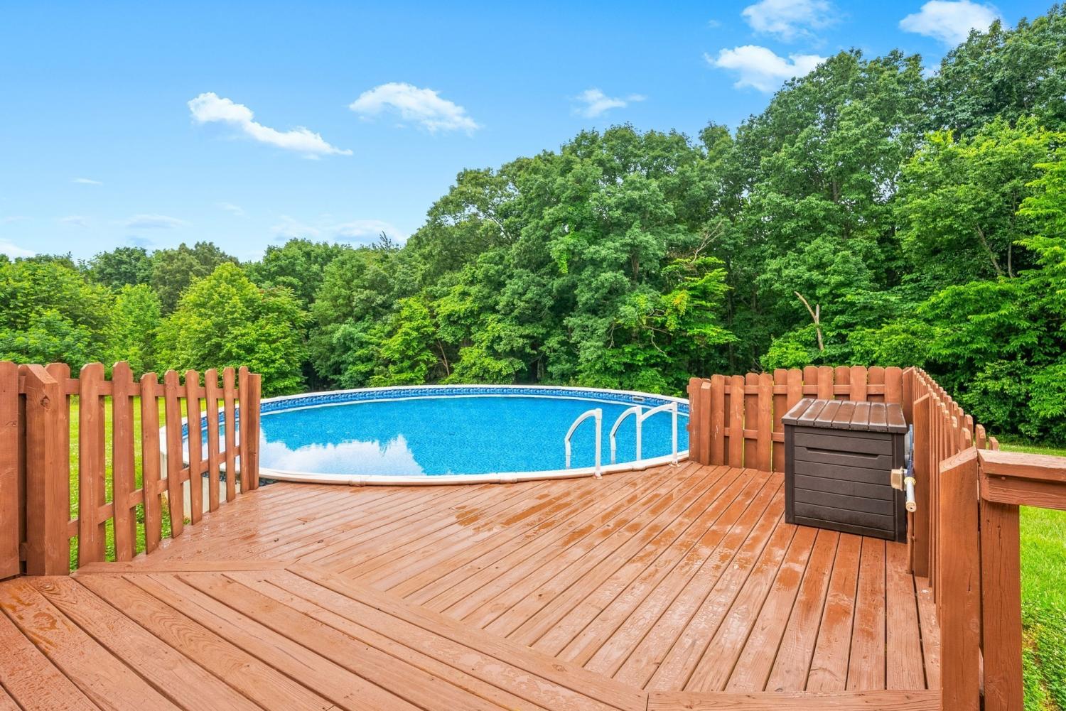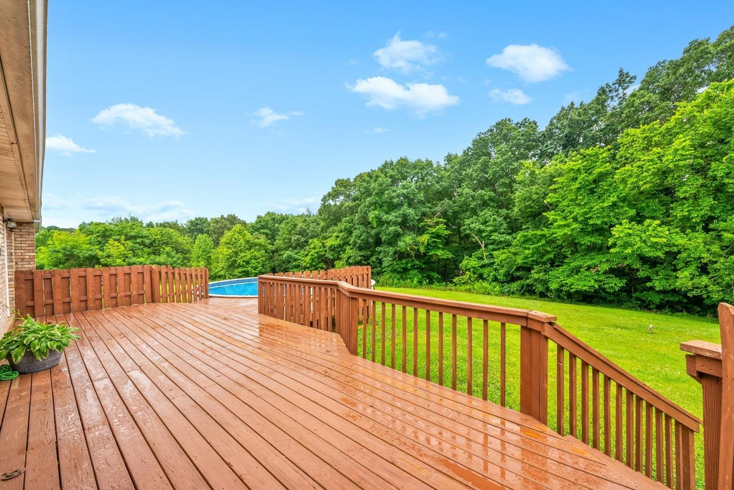 Welcome to this spacious home with over 2,500 square feet of living space, set on 5 unrestricted acres with county taxes only. BRAND NEW HVAC for upstairs just installed! - Located on a dead-end street, the property offers both open yard space and wooded areas for added privacy. A large covered front porch provides peaceful views of surrounding farmland. Inside, you’ll find a picture-perfect kitchen with modern updates and a large dining area - perfect for gatherings! The main-level primary suite features a jacuzzi tub, step-in shower, and sliding glass doors leading to a large deck overlooking the pool. Upstairs, you'll find three generously sized bedrooms and a full bathroom. The main floor also includes a spacious utility room and a versatile bonus space. Recent updates include a new roof, new appliances, new carpet upstairs, and new flooring on the main level. Two-car basement garage and large detached garage so bring the toys!