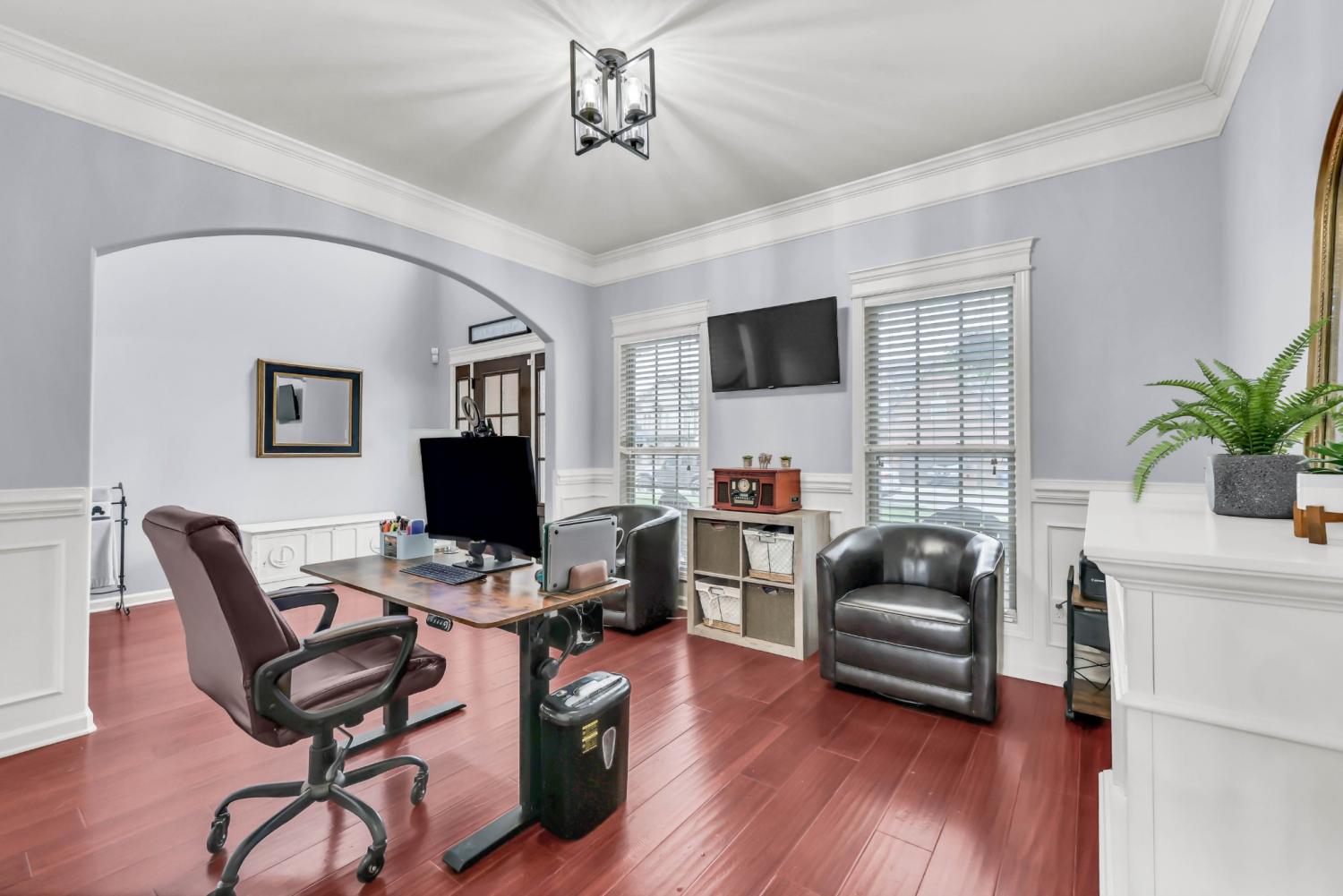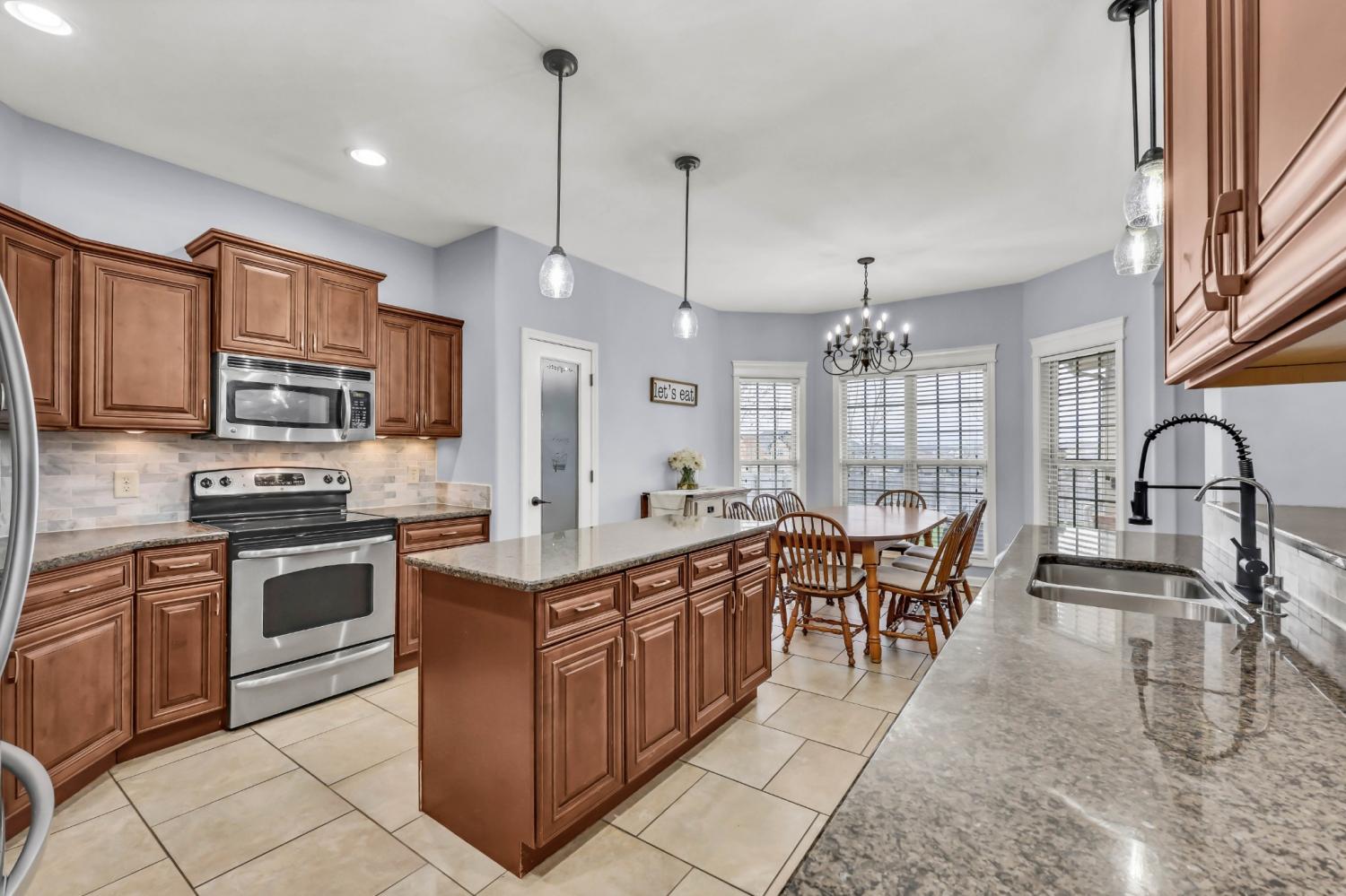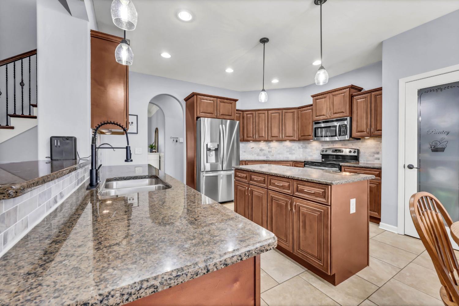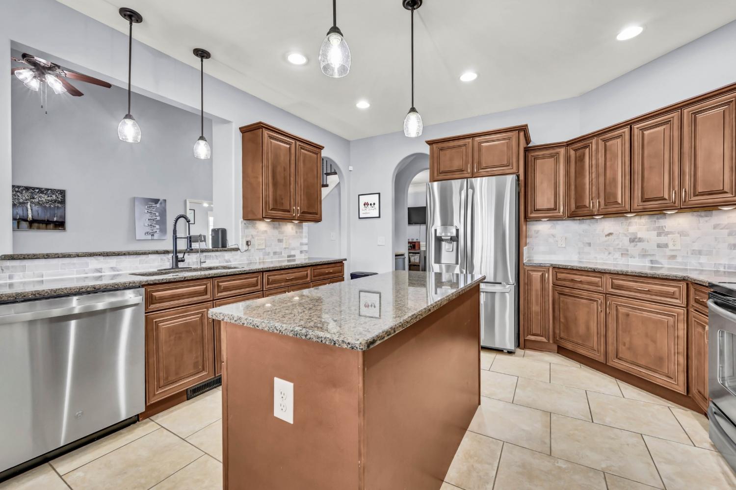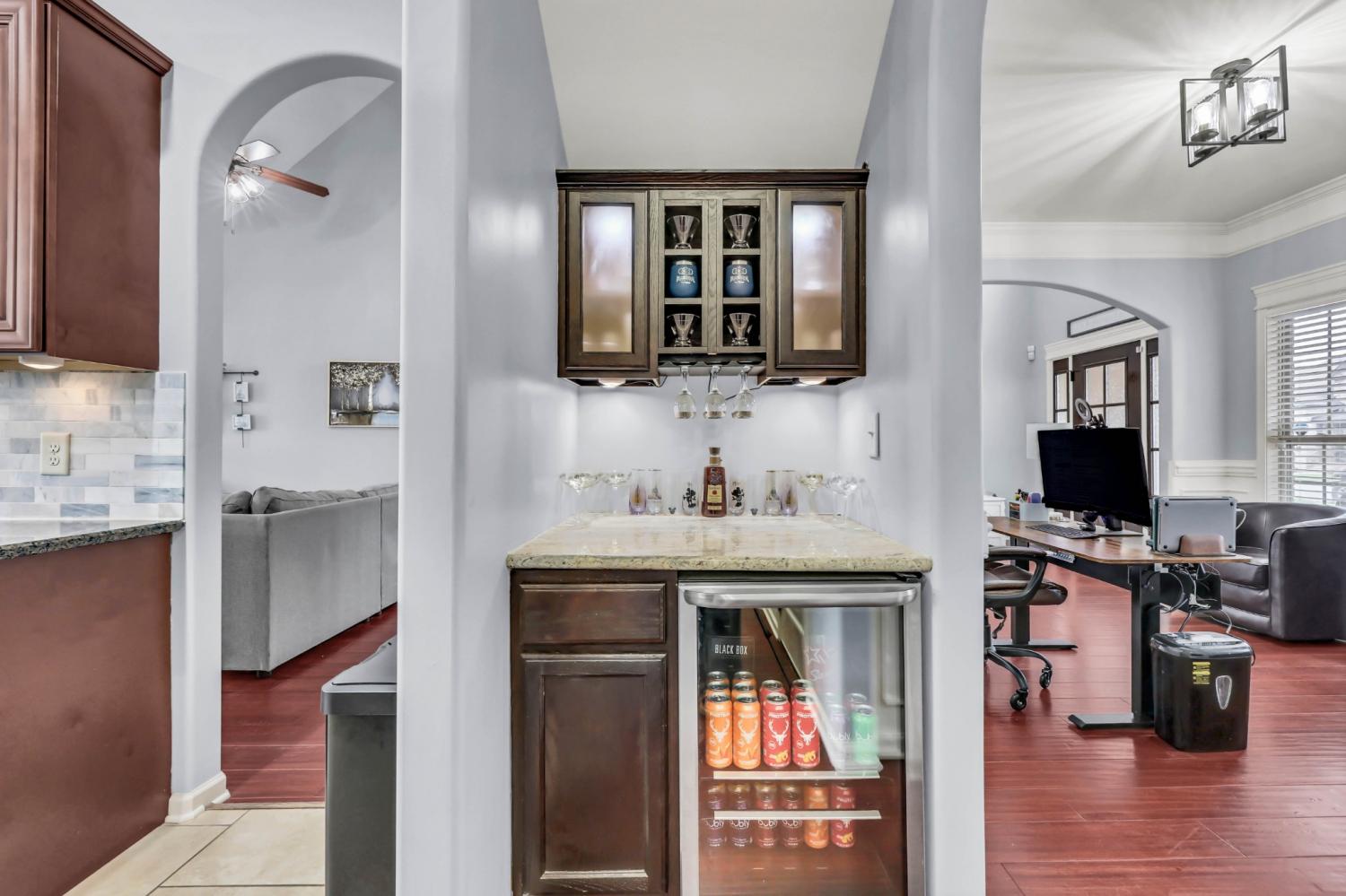 Hello Gorgeous! This stunning home offers the perfect blend of comfort, space, and privacy with no immediate backyard neighbors giving you peaceful views you’ll love coming home to. As you walk in, you’re welcomed by a beautiful foyer featuring elegant archway accents that set the tone for the rest of the home. The kitchen is truly the heart of the home, featuring a large island, granite countertops, a spacious pantry and a built-in bar with mini fridge perfectly situated between the kitchen and formal dining room. Plus, enjoy peace of mind with a brand new dishwasher and refrigerator. The primary suite is massive and features trey ceilings, dual vanities, a huge tiled shower with new shower heads, a relaxing jetted tub, water closet, and two walk-in closets. Cozy up in the living room by the gas log fireplace, powered by natural gas or enjoy the functionality of the laundry room with a mud sink and hanging rack. A secondary bedroom and full bath are conveniently located on the main level. Upstairs, you'll find bedroom three and four with walk-in closets. The upstairs bonus room has been divided into two separate rooms, providing additional flexible space ideal for a home office, workout area, or playroom. Step outside to your covered patio and enjoy the privacy from your fully fenced backyard. This space is perfect for relaxing or entertaining, complete with sun shades, a ceiling fan, and an electrical hookup ready for your future hot tub. Added bonus: garage features a tesla charger + brand new roof (2025) + 2 HVAC units are new + NO CITY TAXES! This home offers an incredible amount of space for everyone. Schedule your tour today!