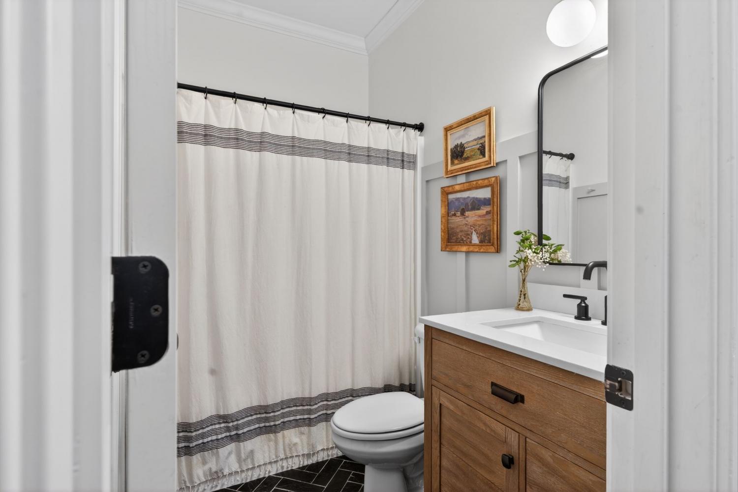Stunning Home! Situated on an established cul-de-sac street in Campbell Station - 5 Bedrooms & 3 Full Baths. This home jumps right out of magazine with on point renovations! The timeless real, hardwood floors welcome you into spaces that you can settle into. There's a tastefully renovated kitchen- quartz counters, custom range hood, and light cabinetry. The main floor primary bedroom feels like a retreat with natural light, trey ceiling and reading nook. Step into the spa-like primary renovated bathroom. Additionally, on the main floor, you will find a very spacious guest suite, as well as a formal dining room with transient windows. Upstairs offers three additional bedrooms, a generous laundry room, plenty of walk-in storage, and a recreation space with built-ins. All of this on nearly a 1/2 acre fenced lot, backing to trees and a creek! A highly desirable street and neighborhood amenities in sought after Williamson County! Roof 5 yrs old. Welcome home!