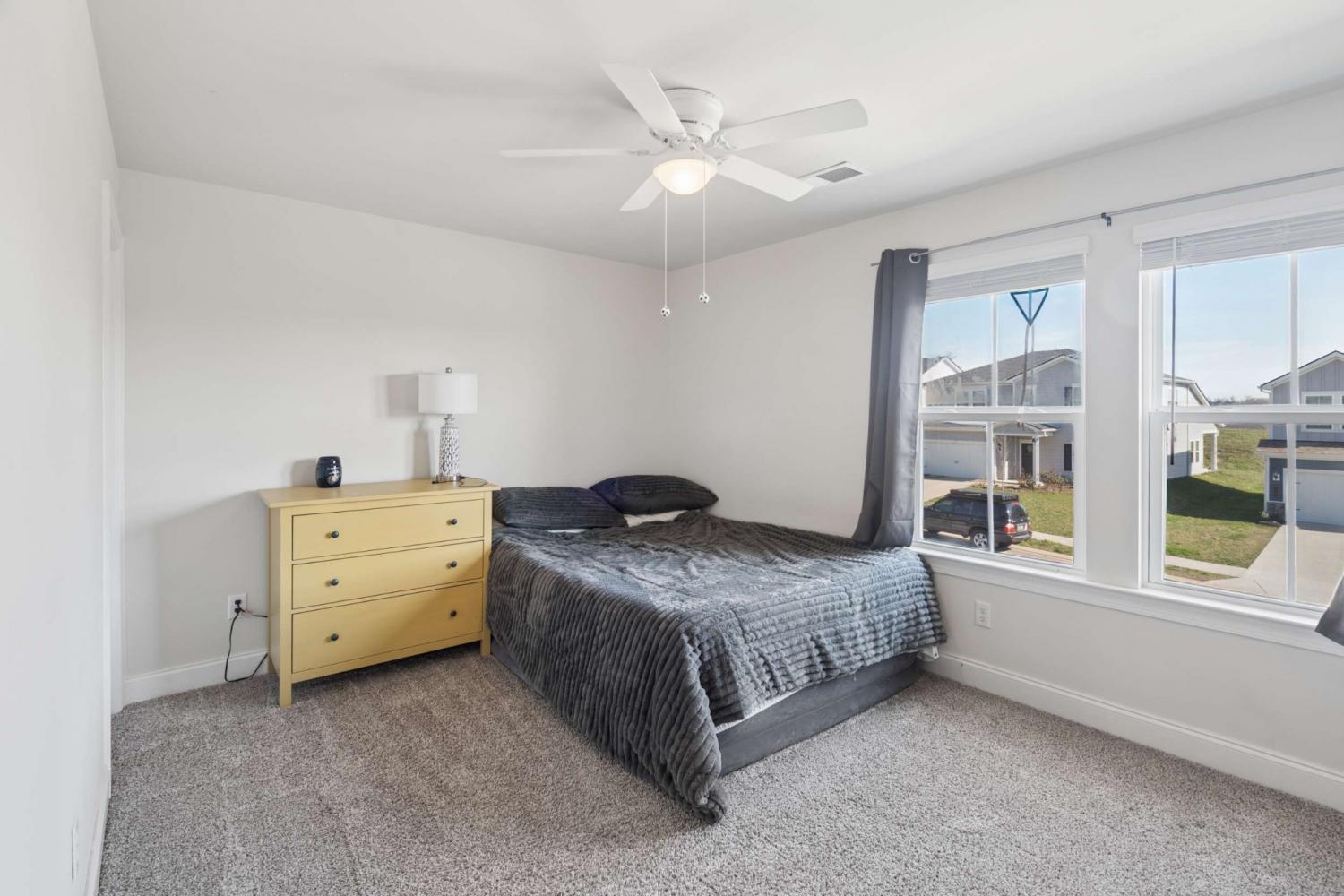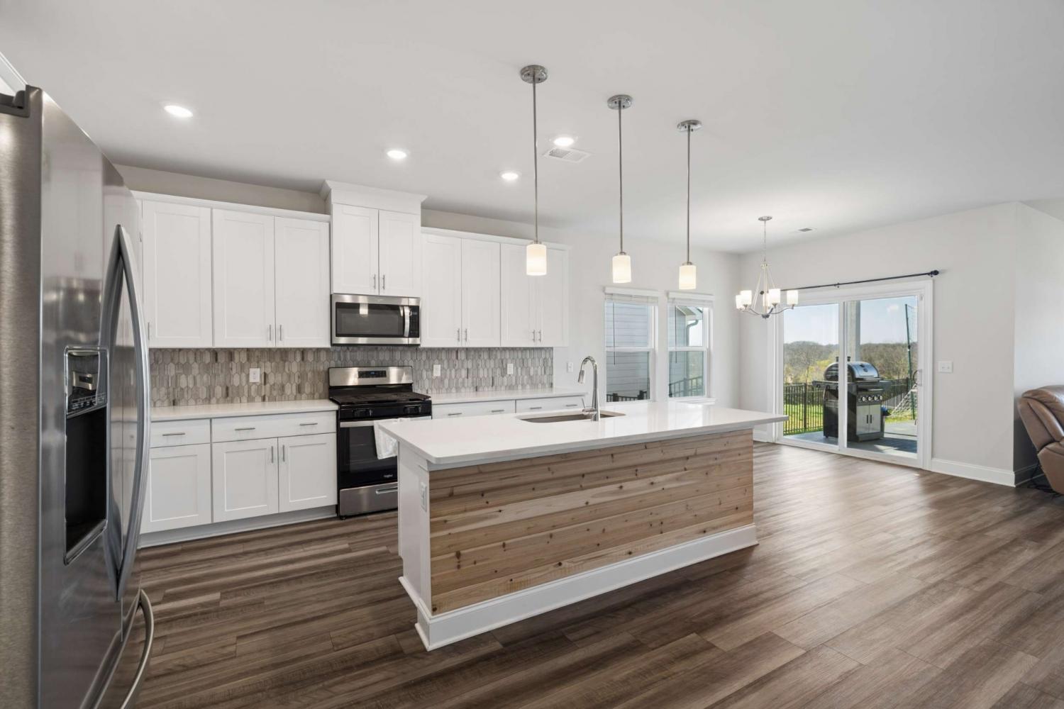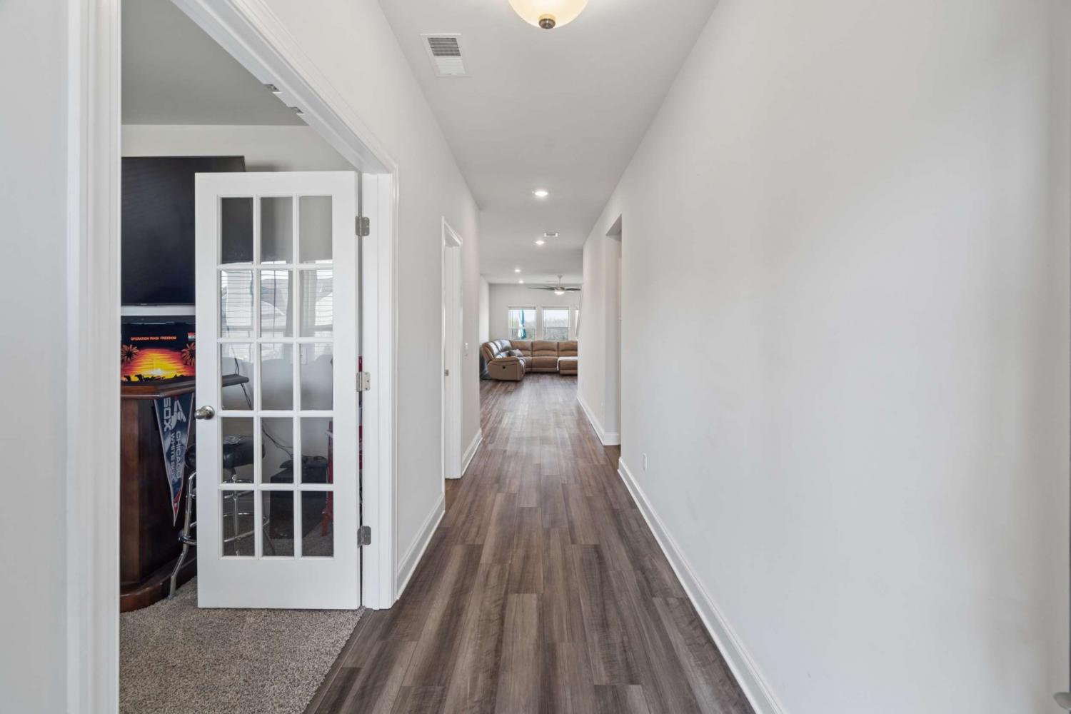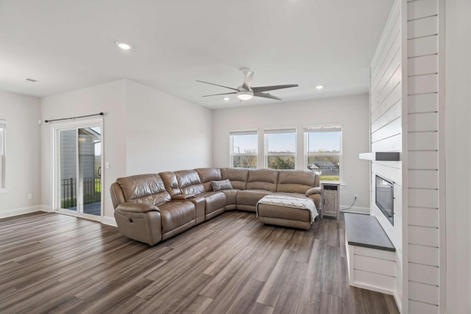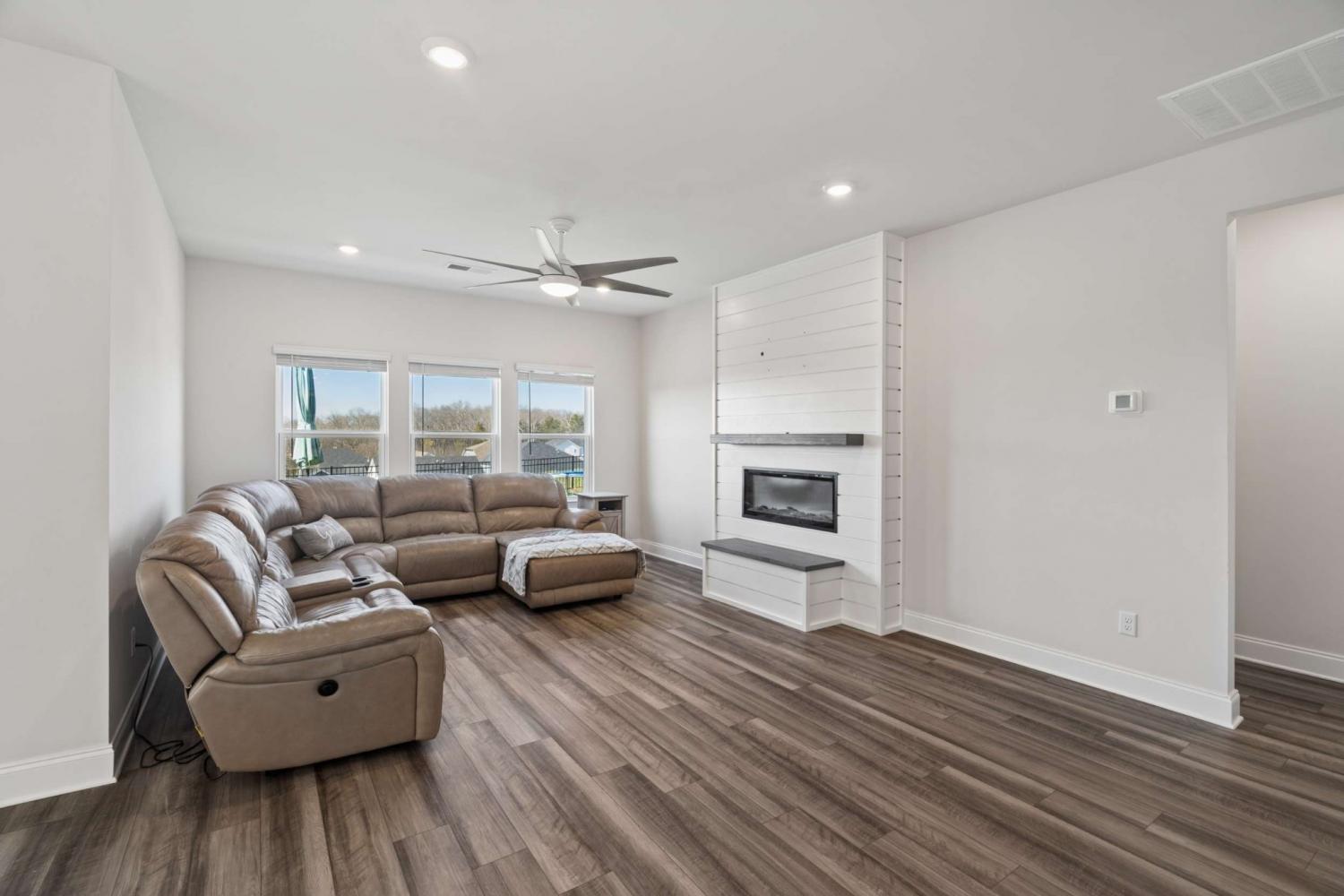 Welcome to one of the most sought-after homes in Holland Ridge, minutes from I-40, I-840, Providence Marketplace, and downtown Nashville - a prime location buyers are actively searching for in the greater Nashville real estate market. This stunning 4-year-old home immediately captivates with a beautiful covered front porch, leading into a bright open-concept layout featuring luxury vinyl flooring, elegant finishes, and a cozy fireplace that creates the perfect atmosphere for both everyday living and entertaining. The chef-inspired kitchen is a true centerpiece, complete with a large shiplap island with sink, crisp white cabinetry, quartz countertops, stainless steel appliances, recessed lighting, and a walk-in pantry designed for maximum storage and style. The main-level powder room adds everyday convenience, while the primary suite delivers a private retreat with tray ceilings, dual vanities, a walk-in shower, and an expansive walk-in closet. Upstairs offers incredible flexibility with three generously sized bedrooms, two full baths, a dedicated office space ideal for remote work, and a versatile rec room perfect for media, fitness, or relaxation. Step outside to a covered back porch overlooking a private backyard - perfect for unwinding or hosting gatherings - and enjoy resort-style amenities including a community pool and cabana. Additional high-demand features include a two-car garage with custom shelving, extended driveway parking, Energy Star windows, low VOC paints, advanced air filtration system, and smart thermostat for energy-efficient living. Combining luxury, functionality, and one of the best locations near Nashville, this move-in-ready home is exactly what today’s buyers are searching for - schedule your private showing and secure this exceptional opportunity before it’s gone.