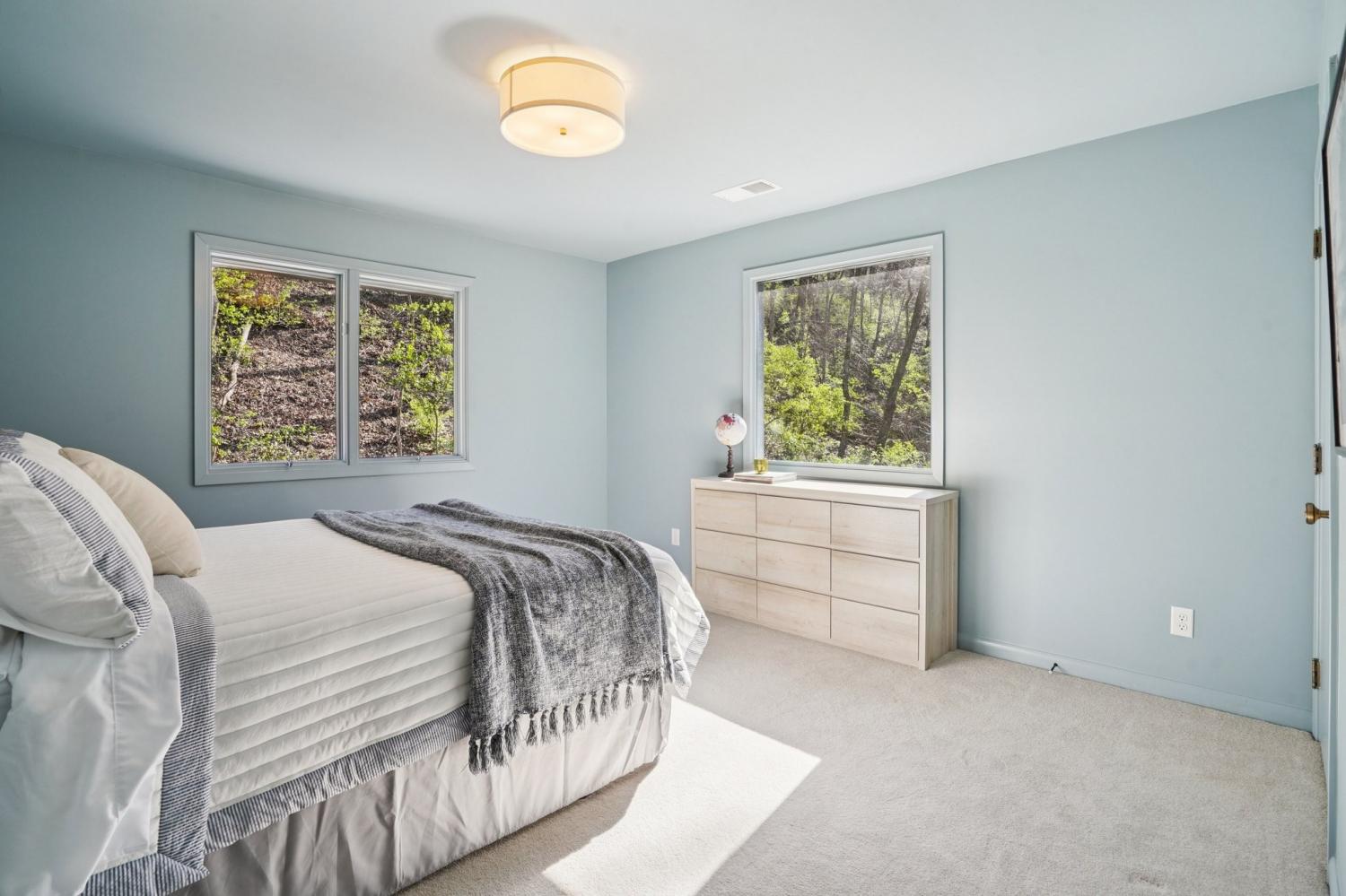 Live like you're on a boutique hotel stay. Fully furnished luxury home minutes from downtown Nashville, available for flexible lease. 5 bedroom 4.5 bathrooms Spacious luxury rental in West Meade, located on a quiet cul-de-sac just minutes from Belle Meade, downtown Nashville and top Nashville dining, shopping, and conveniences. This beautifully furnished, fully remodeled contemporary home, owned by an interior designer, features soaring ceilings, abundant natural light, hardwood floors, and custom built-ins throughout. The open-concept layout offers multiple living spaces, including a formal living room, den, bonus room, perfect for work-from-home or flexible living. The main-level primary suite provides comfort and privacy, featuring a modern jetted bathtub wrapped in luxurious marble, dual shower heads and spacious closets while connecting to both the exterior back deck as well as a private screened in porch. Meanwhile, additional bedrooms and living areas offer plenty of space for families or executive living. The spacious chef’s kitchen features Subzero/Wolf appliances, an oversized workstation sink, and large picture window overlooking the scenic wooded landscape while connecting seamlessly to the main living areas, ideal for both everyday living and entertaining. Enjoy outdoor living with a private deck surrounded by mature trees, creating a peaceful, secluded retreat while still being close to everything Nashville has to offer. Additional highlights include a 3-car garage, basement lounge and home gym space, integrated indoor and outdoor Sonos speaker system, hot water circulation pump for immediate hot water throughout the entire house, generous storage, and multiple HVAC systems for year-round comfort. Located in one of Nashville’s most desirable neighborhoods, this West Meade rental offers the perfect balance of space, privacy, and convenience. Tenant/Agent to verify all information is accurate