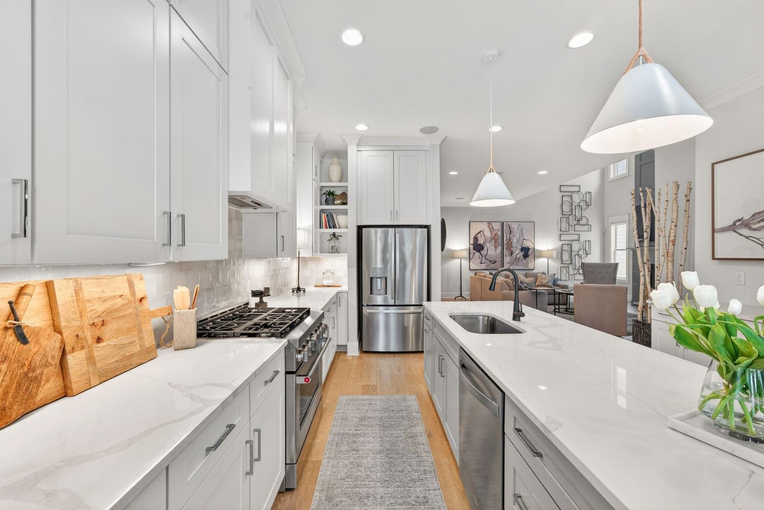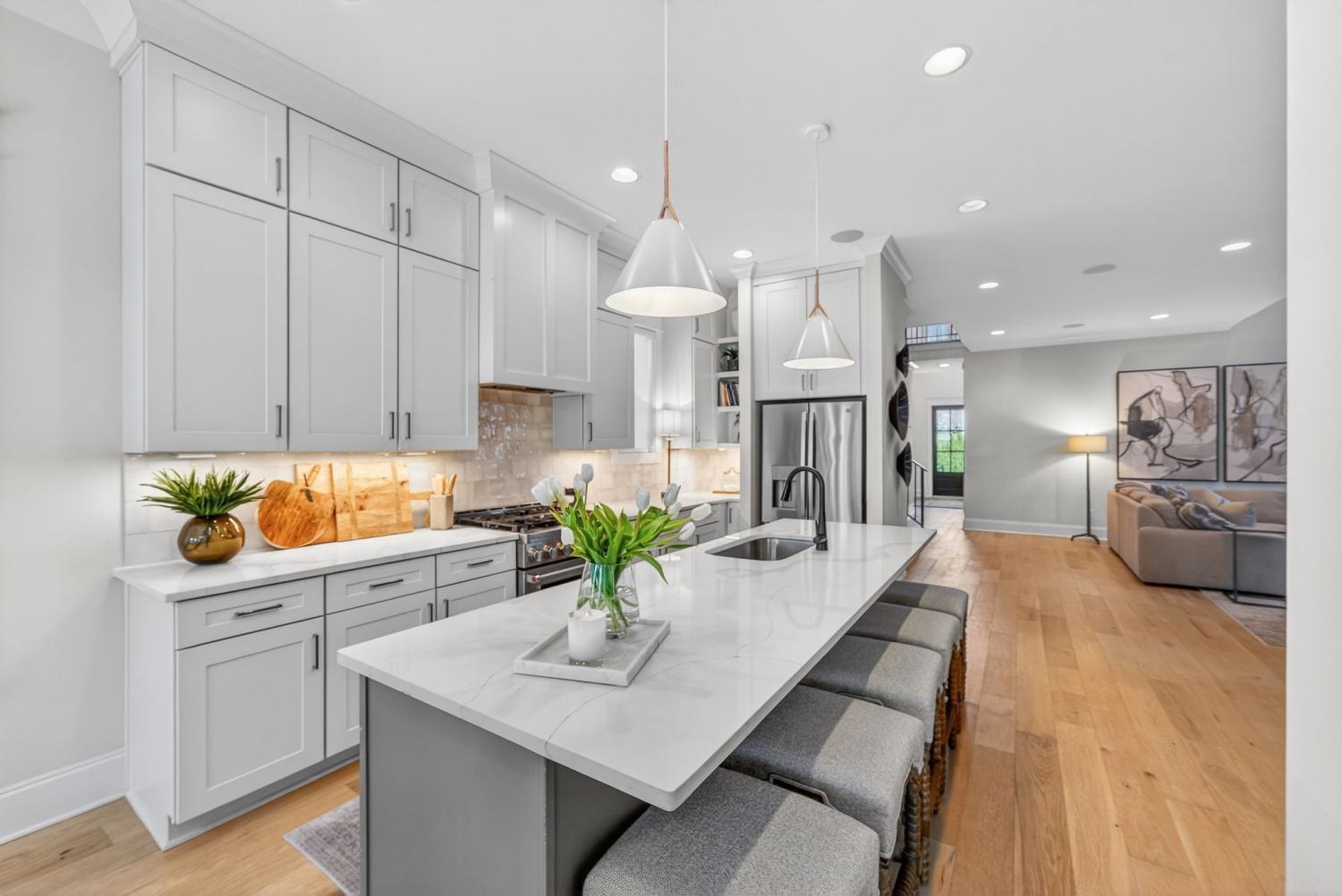Welcome to 921A Woodmont Boulevard, a beautifully designed luxury home offering elevated living just minutes from Green Hills, 12 South, and Belmont. Sunlight pours through expansive windows, highlighting gleaming hardwood floors, custom trim work, and soaring ceilings throughout the open-concept living space. The main living area is anchored by a dramatic two-story fireplace and flows seamlessly into a dedicated dining area and a stunning chef’s kitchen featuring a large island, custom shelving, and high-end stainless steel appliances. The spacious primary suite is conveniently located on the main floor and features an oversized walk-in shower and thoughtfully designed finishes. Upstairs you’ll find generous secondary spaces including a large bonus room, along with the convenience of laundry rooms both upstairs and downstairs. Step outside to enjoy the spacious covered back porch—perfect for relaxing or entertaining. Complete with a two-car garage and beautiful high-end finishes throughout, this like-new home offers exceptional comfort and style in one of Nashville’s most desirable locations! Open House, Sunday, April 26th from 2-4 pm.This is your opportunity to own a beautifully designed home at an incredible new price. Join us this weekend to experience the space, layout, and finishes in person—this one is not going to last at this new price point.