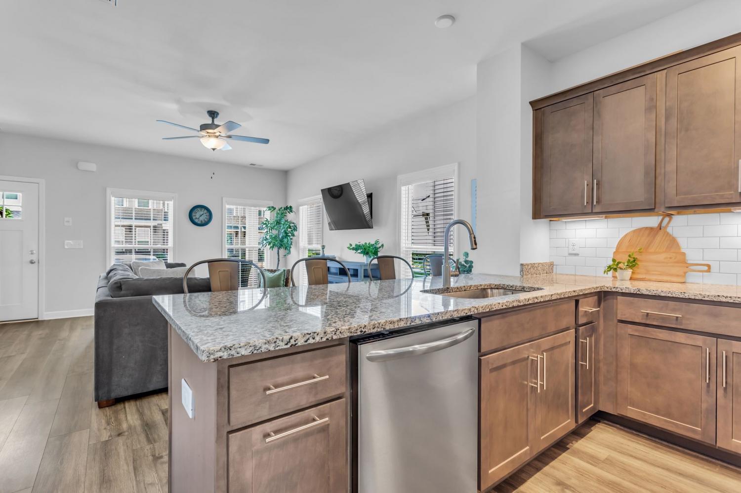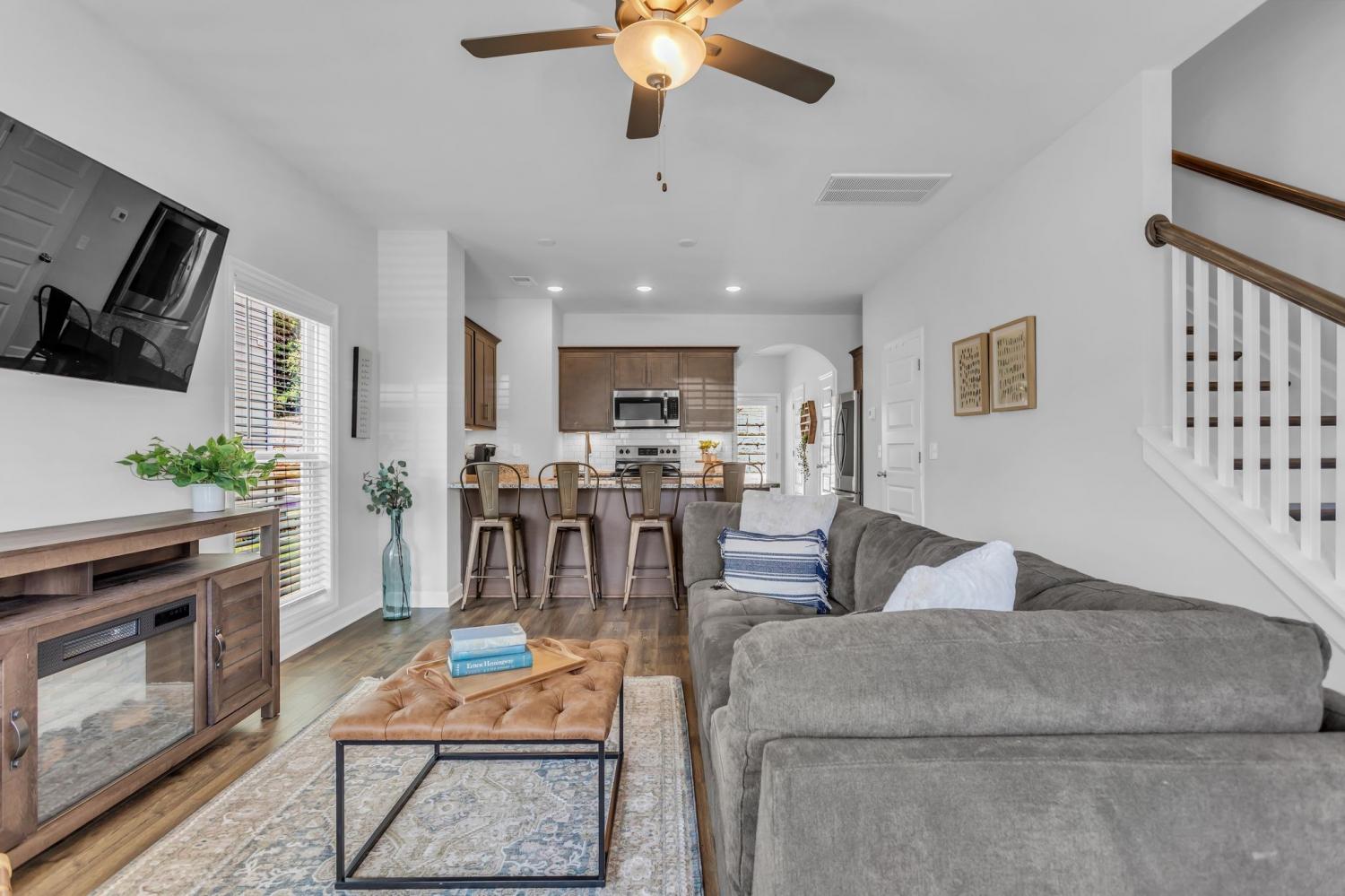 Welcome home to this bright and spacious end-unit townhome featuring a flexible open-concept layout designed for modern living. Nestled against a private, tree-lined green space, this home offers rare backyard privacy and a peaceful view. Inside, you’ll find a light-filled living room and kitchen with large windows and eat-in peninsula—perfect for casual dining or entertaining. The kitchen offers generous cabinetry, a large pantry, and plenty of counter space to meet all your culinary needs. A versatile flex space off the kitchen can be used as a home office, dining room, or playroom. Upstairs, both spacious bedrooms feature en suite bathrooms and large closets, creating two private suites ideal for roommates, guests, or a growing family. Conveniently located with quick access to the Saturn Parkway, this townhome is just minutes from The Crossings of Spring Hill and downtown Columbia, offering a wide array of shopping, dining, and entertainment options. Don't miss your chance to own this well-appointed townhome with the rare combination of privacy, natural light, and prime location! Perfect for investors too!