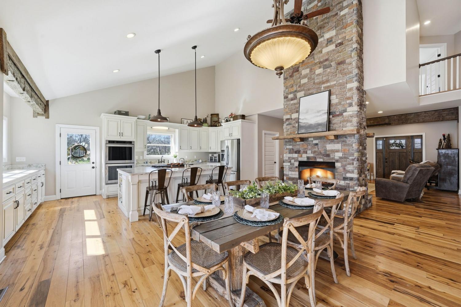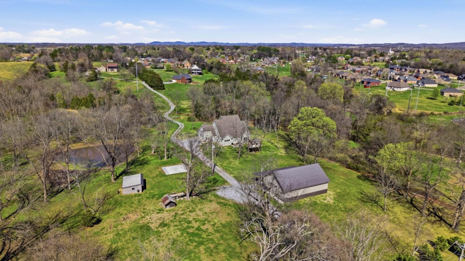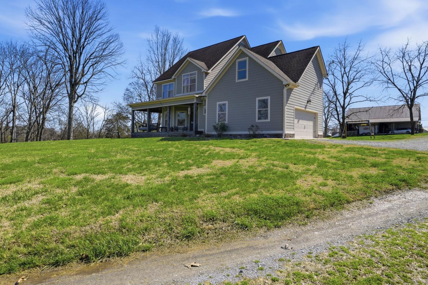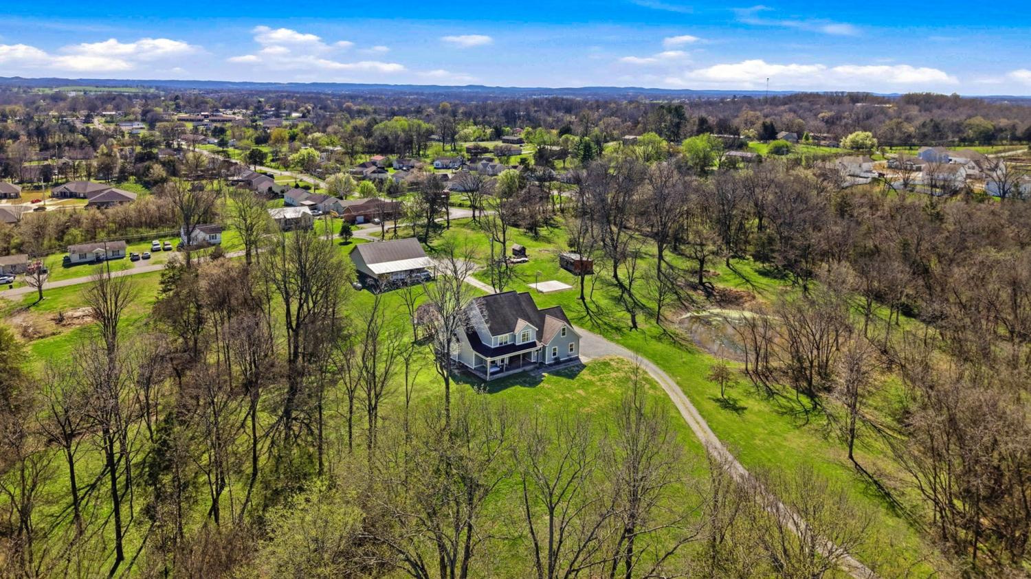 Welcome to your Tennessee homestead dream in the heart of Shelbyville. Nestled on 8.7+-acres, this stunning property offers the perfect place to slow down, spread out, and truly settle in. Built in 2016, this home features over 3,000 square feet with a flexible layout designed to fit your lifestyle. From the moment you step inside, you’re greeted by a breathtaking floor-to-ceiling, stone fireplace that serves as the focal point of the open-concept living space. Wood beam accents add rustic charm. The double-sided fireplace creates warmth and depth throughout, making the space feel both grand and welcoming. The kitchen is thoughtfully designed with custom cabinetry, stainless steel appliances, double ovens, a gas range, and a large center island that overlooks the dining and living area. Perfect for entertaining or everyday living. The main-level primary suite is a true retreat, featuring double door entry, a spa-like en suite bath with a soaking tub, tiled shower, and a spacious walk-in closet. Just off the main living area, you’ll also find a dedicated office on the main floor, located near the half bath. Upstairs, you’ll find the remaining bedrooms, a full bath, a large bonus room, and an additional flexible space that could serve as a second office, hobby room, or an extra bedroom depending on your needs. Plus: a large laundry room located just off the 2 car garage for everyday convenience. Step outside and experience everything this property has to offer. The land is ready for your homesteading vision with a large detached shop, a chicken coop, basketball court, and a pond. Whether you’re looking for space to work, play, or unwind, this property delivers. Located in Shelbyville, home of the Tennessee Walking Horse Celebration, you’ll enjoy a quiet setting while still being just minutes from the historic downtown square, local dining, shopping, and an easy commute to Murfreesboro and Nashville. This is more than a home-it’s a lifestyle.