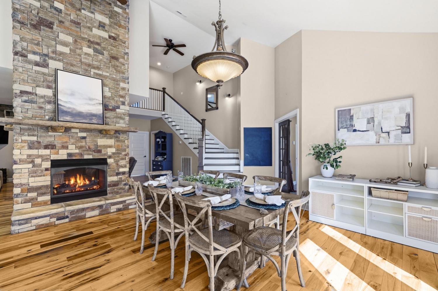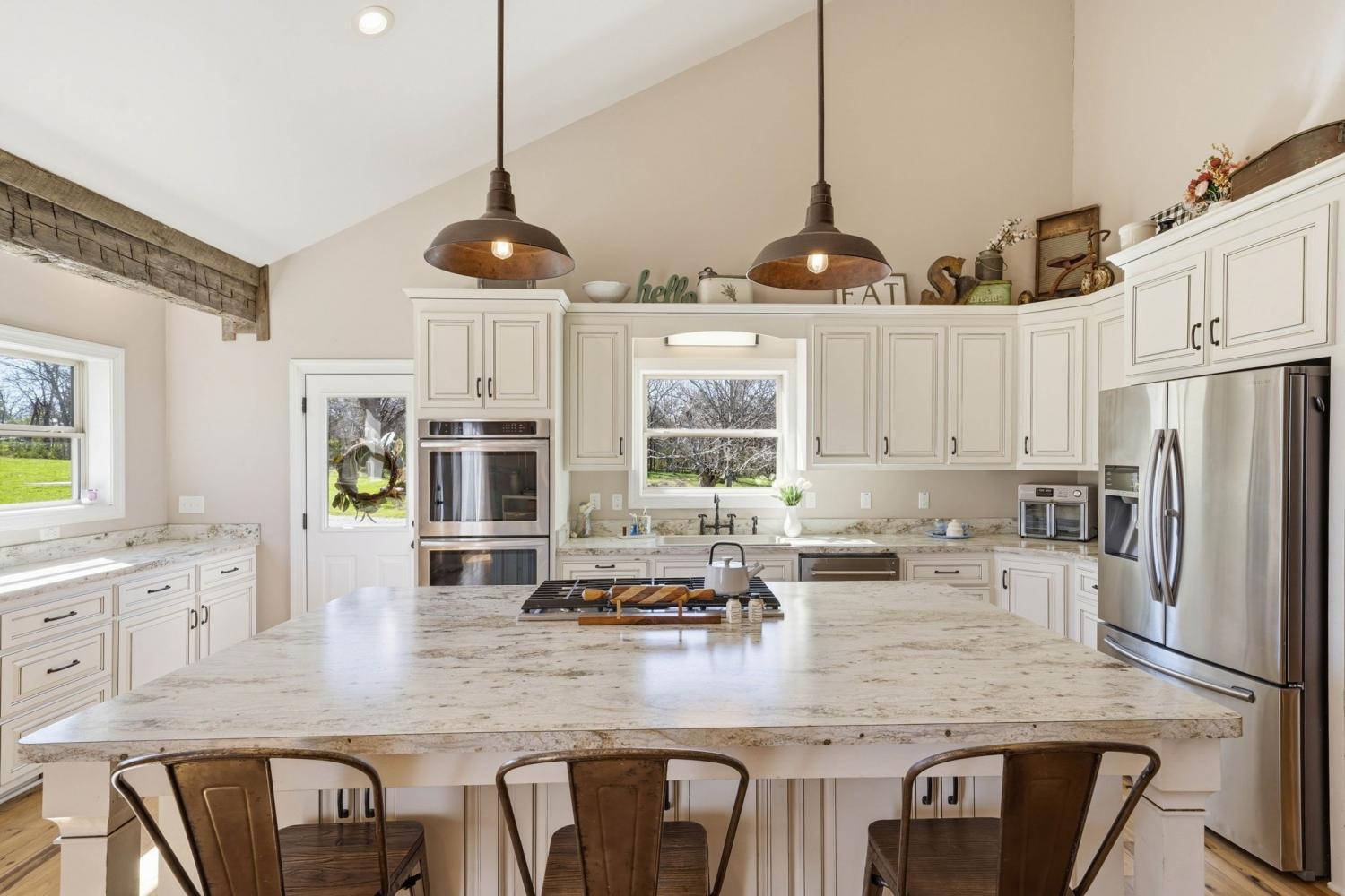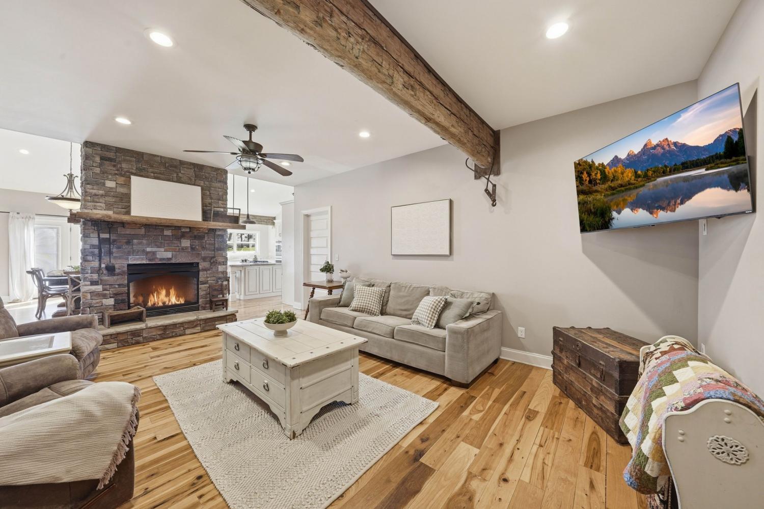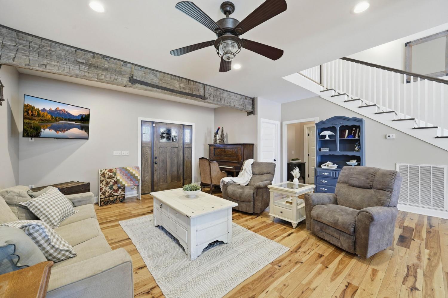 Welcome to your Tennessee homestead dream in the heart of Shelbyville. Nestled on 8.7+-acres, this stunning property offers the perfect place to slow down, spread out, and truly settle in. Built in 2016, this home features over 3,000 square feet with a flexible layout designed to fit your lifestyle. From the moment you step inside, you’re greeted by a breathtaking floor-to-ceiling, stone fireplace that serves as the focal point of the open-concept living space. Wood beam accents add rustic charm. The double-sided fireplace creates warmth and depth throughout, making the space feel both grand and welcoming. The kitchen is thoughtfully designed with custom cabinetry, stainless steel appliances, double ovens, a gas range, and a large center island that overlooks the dining and living area. Perfect for entertaining or everyday living. The main-level primary suite is a true retreat, featuring double door entry, a spa-like en suite bath with a soaking tub, tiled shower, and a spacious walk-in closet. Just off the main living area, you’ll also find a dedicated office on the main floor, located near the half bath. Upstairs, you’ll find the remaining bedrooms, a full bath, a large bonus room, and an additional flexible space that could serve as a second office, hobby room, or an extra bedroom depending on your needs. Plus: a large laundry room located just off the 2 car garage for everyday convenience. Step outside and experience everything this property has to offer. The land is ready for your homesteading vision with a large detached shop, a chicken coop, basketball court, and a pond. Whether you’re looking for space to work, play, or unwind, this property delivers. Located in Shelbyville, home of the Tennessee Walking Horse Celebration, you’ll enjoy a quiet setting while still being just minutes from the historic downtown square, local dining, shopping, and an easy commute to Murfreesboro and Nashville. This is more than a home-it’s a lifestyle.