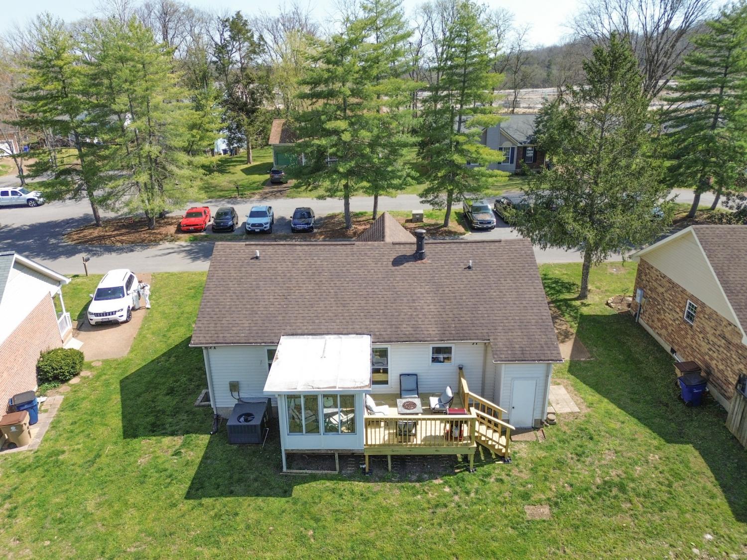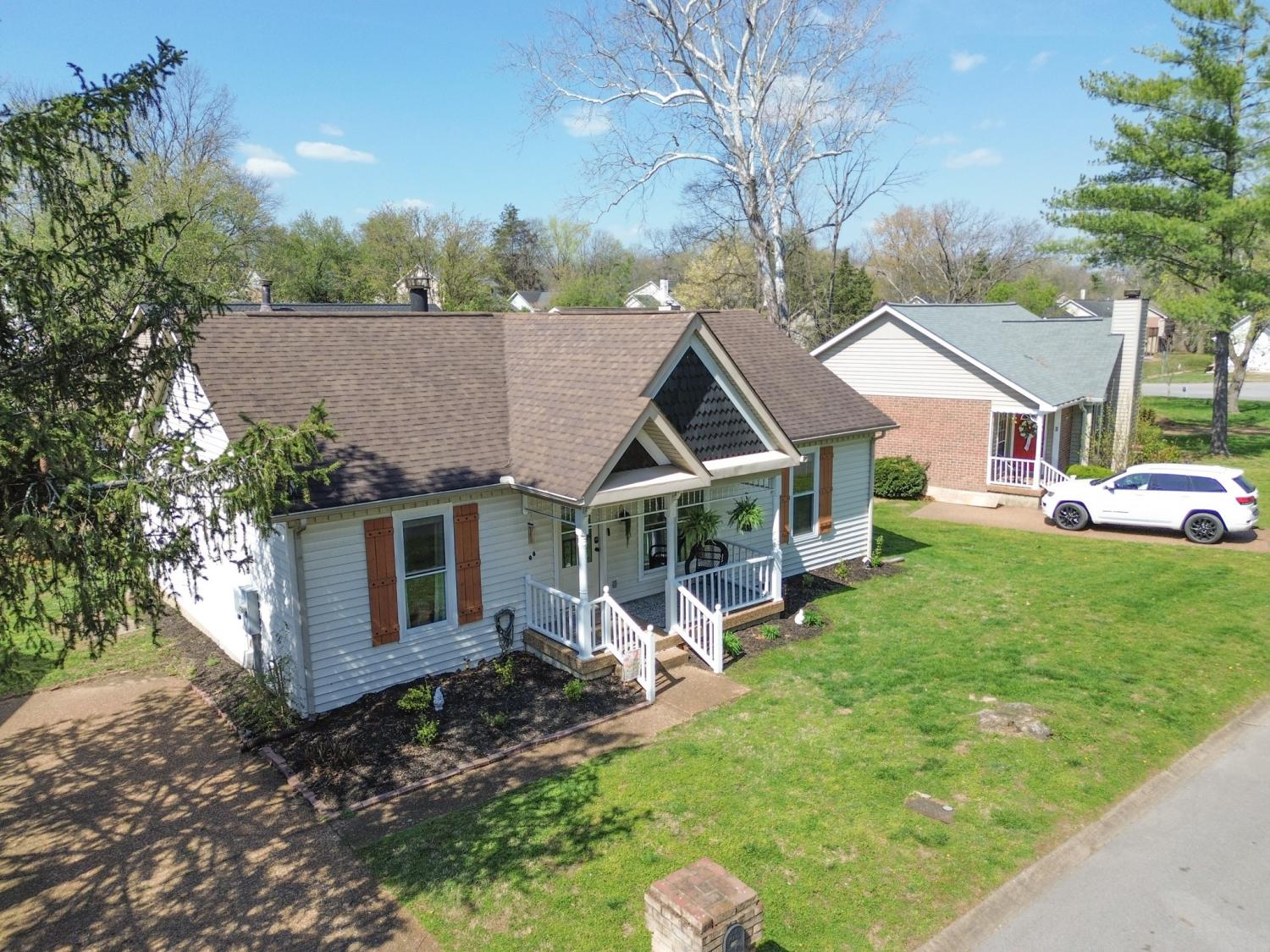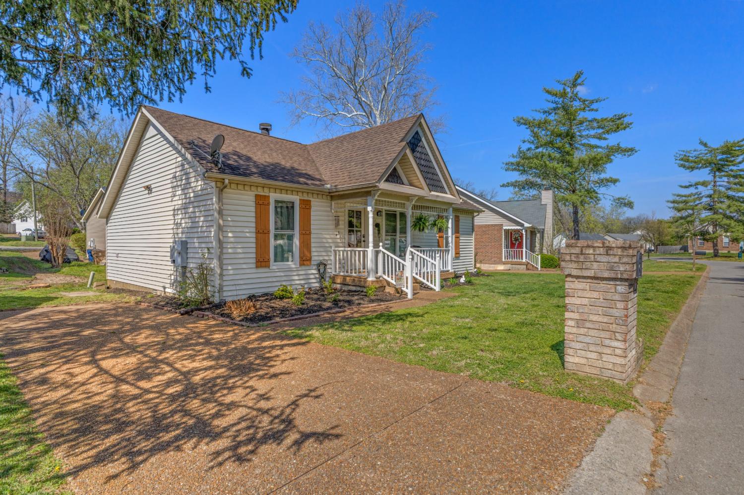 Tucked at the end of a quiet cul-de-sac in Windsor Green, this well maintained 3 bedroom 2 bathroom home has a comfortable feel from the moment you step inside—and under 14 miles to downtown Nashville! The main living area opens up with vaulted ceilings and warm 4-inch oak hardwood floors, giving the space a natural, inviting flow. The cozy fireplace is great for cooler evenings. The neutral paint and hardwood flooring throughout keeps everything feeling clean, bright, and move-in ready. The vaulted ceiling also carries into the primary bedroom, which makes it feel spacious and relaxing. The kitchen is practical and updated with newer appliances (approx 3 years old). Just off the living space, the attached Florida Room is one of the areas you’ll find yourself using often—whether it’s for a quiet morning with coffee, a home office, or just extra room to spread out & entertain. The brand-new deck adds another great space to enjoy. The easy to maintain yard also features a storage shed. The home has been well loved through the years and it shows. With a newer HVAC system (approx 3 years) & a replaced roof (approx 8 years), it’s waiting for its next owner to step right in to enjoy. Unbeatable location within a few minutes to I-65 and 386 for a simple commute. This home is convenient to shopping, parks, restaurants, & schools. You will feel spoiled. Homes like this don't come on the market too often so don't hesitate!