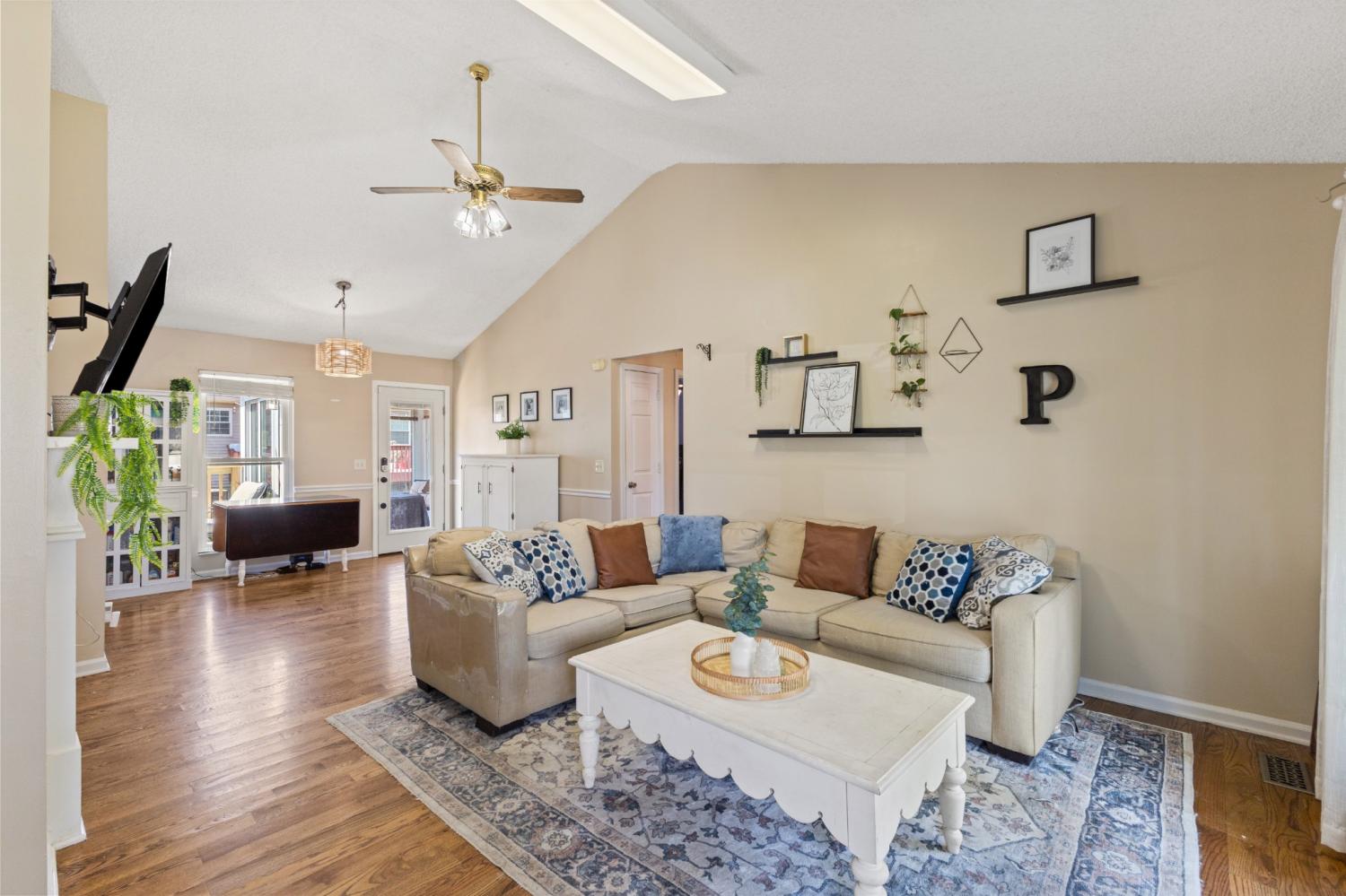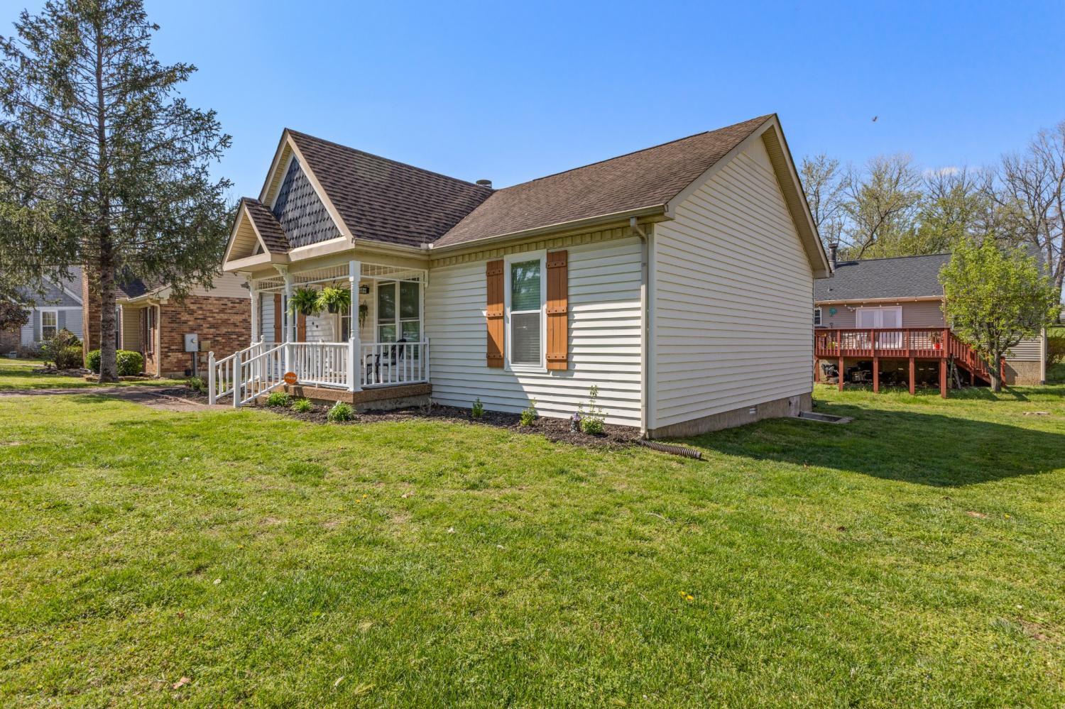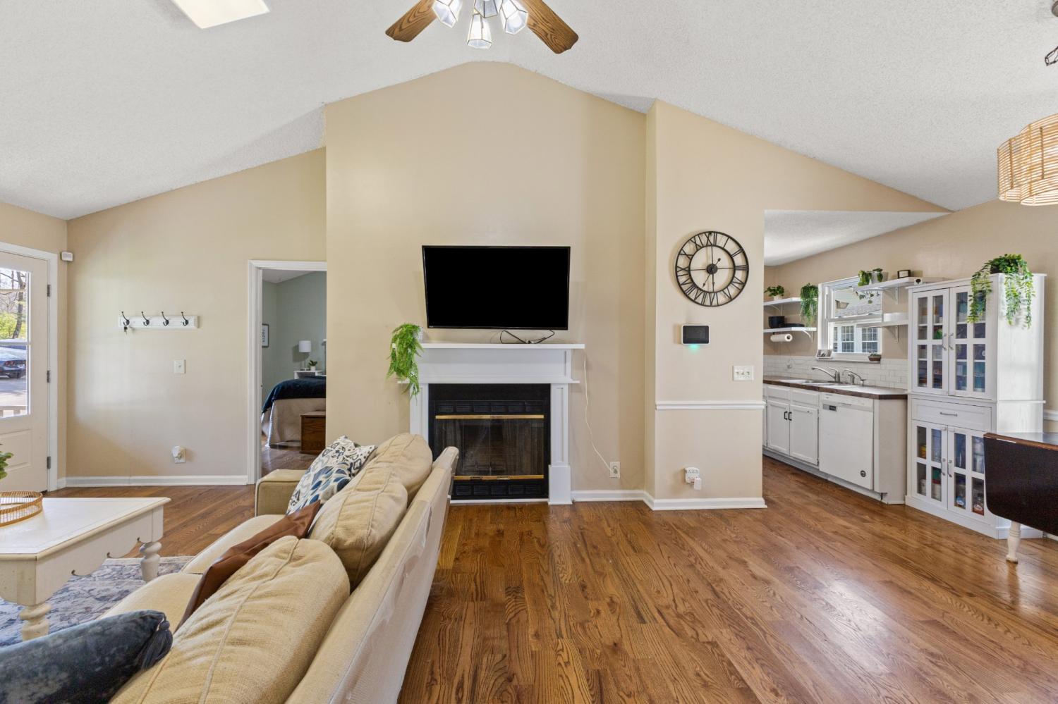 Tucked at the end of a quiet cul-de-sac in Windsor Green, this well maintained 3 bedroom 2 bathroom home has a comfortable feel from the moment you step inside—and under 14 miles to downtown Nashville! The main living area opens up with vaulted ceilings and warm 4-inch oak hardwood floors, giving the space a natural, inviting flow. The cozy fireplace is great for cooler evenings. The neutral paint and hardwood flooring throughout keeps everything feeling clean, bright, and move-in ready. The vaulted ceiling also carries into the primary bedroom, which makes it feel spacious and relaxing. The kitchen is practical and updated with newer appliances (approx 3 years old). Just off the living space, the attached Florida Room is one of the areas you’ll find yourself using often—whether it’s for a quiet morning with coffee, a home office, or just extra room to spread out & entertain. The brand-new deck adds another great space to enjoy. The easy to maintain yard also features a storage shed. The home has been well loved through the years and it shows. With a newer HVAC system (approx 3 years) & a replaced roof (approx 8 years), it’s waiting for its next owner to step right in to enjoy. Unbeatable location within a few minutes to I-65 and 386 for a simple commute. This home is convenient to shopping, parks, restaurants, & schools. You will feel spoiled. Homes like this don't come on the market too often so don't hesitate!