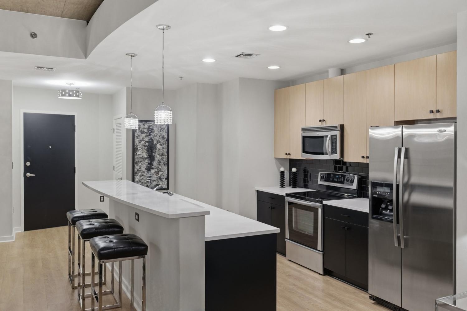 Experience elevated downtown living from the 19th floor of this beautifully renovated true one-bedroom condo, offering some of the best views in Nashville. Positioned near the top of a 20-story building, this residence features floor-to-ceiling windows that flood the space with natural light and showcase the city skyline. A versatile flex space provides endless possibilities. Perfect for a home office, dining area, or guest accommodations with a Murphy bed. Located in the heart of downtown, you’re just moments from Nissan Stadium, Bridgestone Arena, Broadway, Ascend Amphitheater, Riverfront Park, Fifth + Broadway, the Ryman Auditorium, and the Country Music Hall of Fame. Enjoy the convenience of a premium parking space directly across from the elevators, along with a full suite of amenities including 24-hour concierge service, a resort-style pool with iconic “Batman Building” views, fitness center, and complimentary high-speed internet. Surrounded by Nashville’s top dining, nightlife, and entertainment, this condo offers both an exceptional lifestyle and a strong investment opportunity with the exciting East Bank development on the horizon. Ideal for those looking to live, invest, and grow in one of the city’s most dynamic locations.