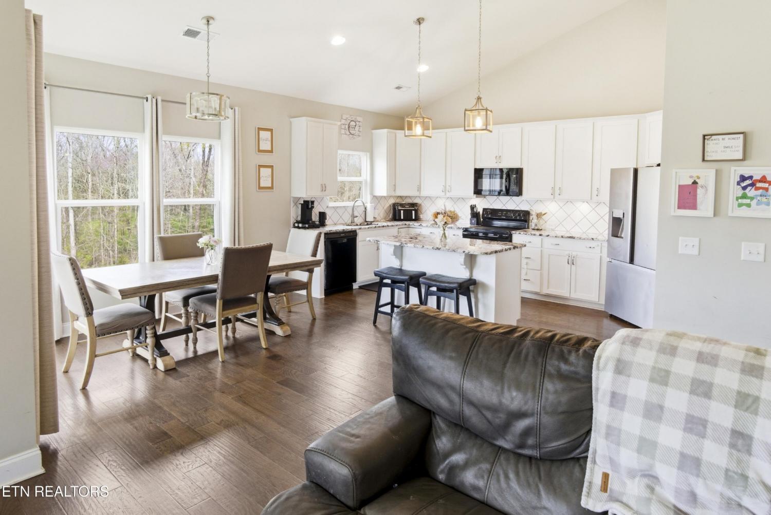 Built in 2022, this one-level home in Maryville's desirable Morgan Park subdivision offers the modern layout, attractive finishes, and convenient location that continue to be in high demand. From the moment you step inside, the vaulted ceiling, cozy fireplace, and open-concept design create a bright and comfortable living space that feels both functional and inviting. The kitchen is thoughtfully designed with white cabinetry, a stylish backsplash, and a large center island that makes everyday living, casual meals, and entertaining easy. The dining and living areas flow seamlessly together, giving the home an easy, connected feel that works well for both quiet evenings at home and gathering with family and friends. Out back, the covered deck provides a great place to relax and unwind while enjoying the peaceful wooded backdrop. Located near the new Amazon plant and Denso, and zoned for sought-after Maryville City Schools, this home offers the rare combination of newer construction, one-level living, and a location that keeps you close to work, shopping, dining, and everything Maryville has to offer. Opportunities to find a newer home with this kind of layout, setting, and convenience do not come along every day.