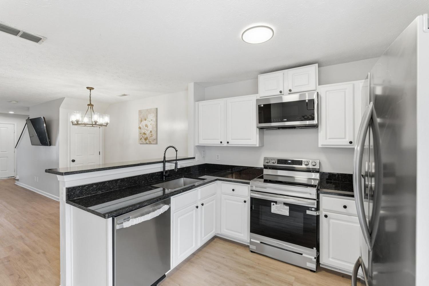 10 out of 10! This adorable turnkey townhome in popular Riverbridge community has been fully renovated and is truly move-in ready. Thoughtfully updated throughout, it features luxury LVP flooring, brand-new stainless steel appliances—including cooktop range with oven, dishwasher, microwave and large side-by-side refrigerator—along with sleek black granite countertops and an undermount sink. All bathrooms have been refreshed with new vanities and toilets, complemented by updated lighting and fresh paint throughout the home. Ideal for a lock-and-leave lifestyle, the home offers convenient front-door parking plus ample guest parking and large green space off back patio. Located just minutes from hospitals and universities, with shopping and dining right around the corner, this home blends comfort, ease and convenience.