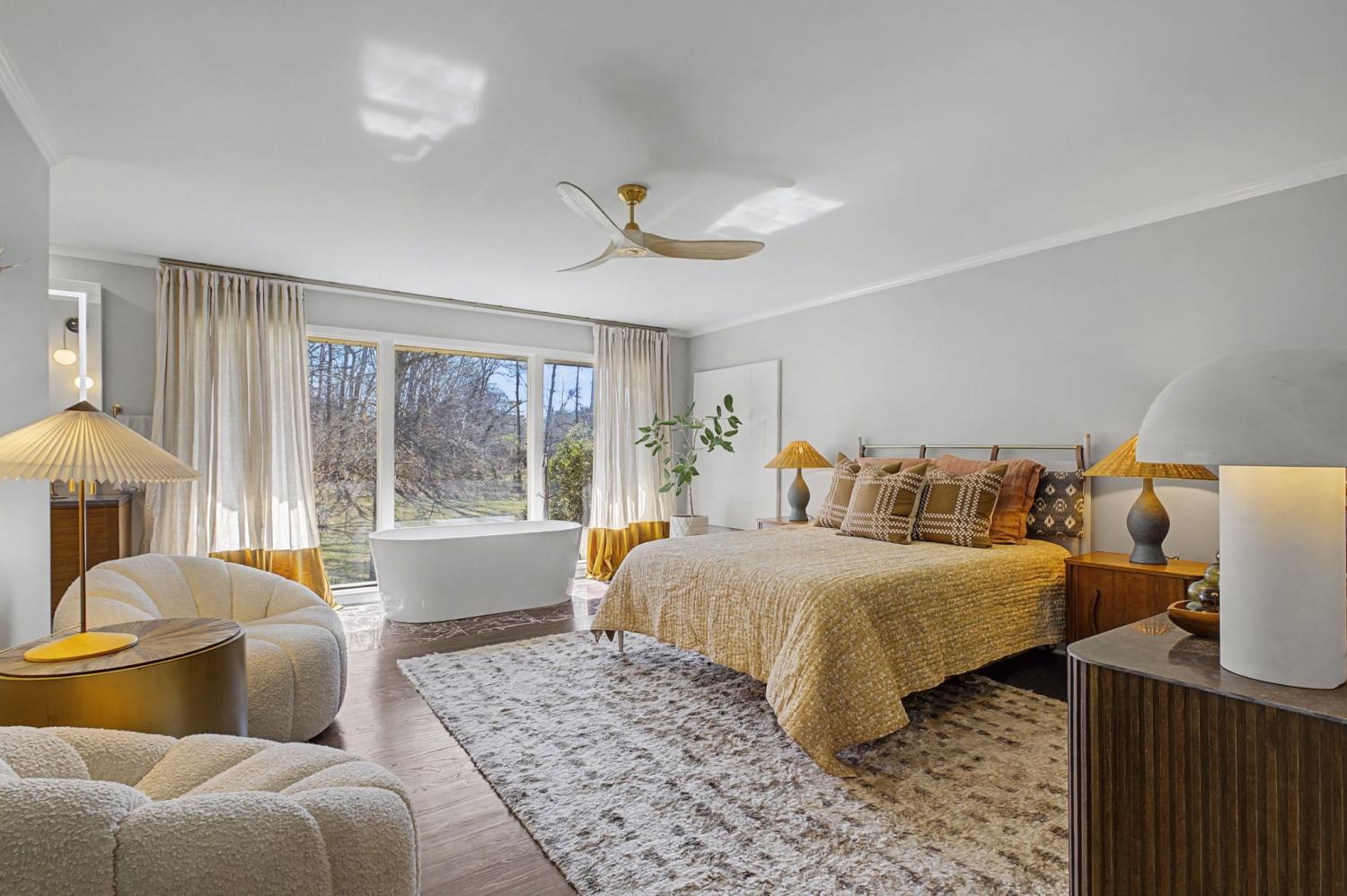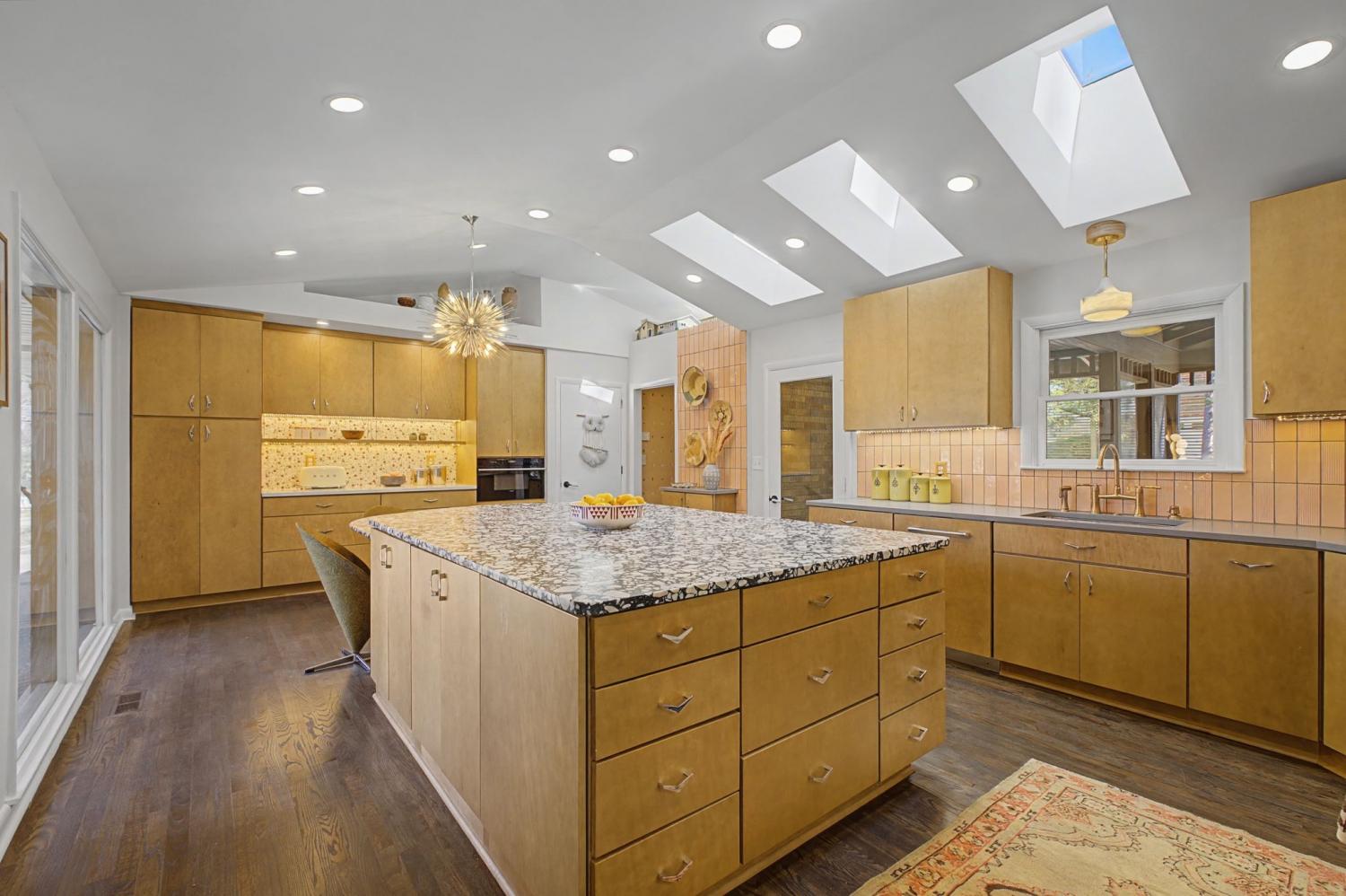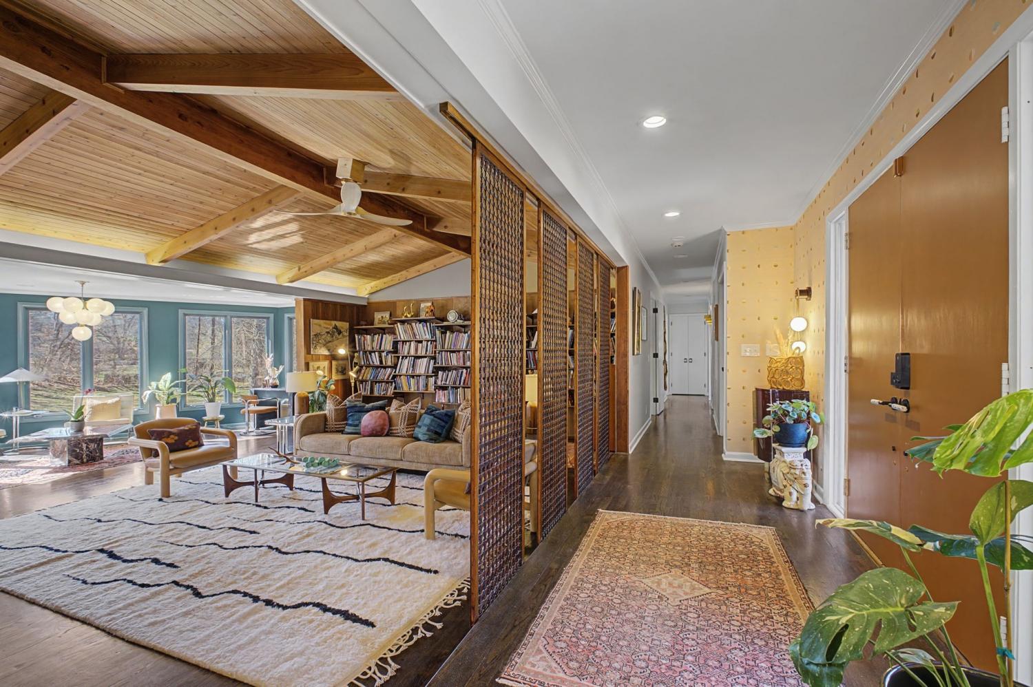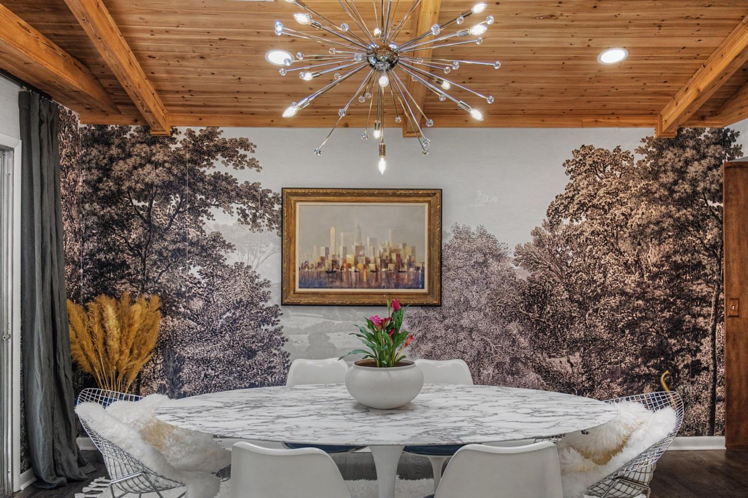Beautifully renovated and thoughtfully restored Mid-Century Modern home in the highly sought-after Grassland Estates neighborhood of Franklin. This architectural gem blends timeless MCM design with elevated modern updates, featuring clean lines, expansive windows, and a seamless connection to the surrounding natural landscape. The thoughtfully curated kitchen is both functional and stunning, showcasing a La Cornue range, Wolf microwave, Ann Sacks terrazzo countertops, a handcrafted artisan sink by Thompson, and a striking vintage tile backsplash. Throughout the home, carefully selected designer details—including Schumacher grasscloth wallpaper and Visual Comfort fixtures—add warmth, texture, and sophistication. Situated on a large, peaceful lot just minutes from historic downtown Franklin, this rare offering captures the best of classic architecture and contemporary lifestyle. The home originally perked for four bedrooms but currently offers five rooms that could function as bedrooms, providing flexible living options. The lower level is designed for entertaining and everyday living alike, featuring a theater room, home gym with the option to add a sauna, and a full kitchenette—ideal for guests or multi-generational living. Additional conveniences include double washer and dryer sets, making day-to-day living effortless. A truly special property where mid-century character meets thoughtfully curated luxury.