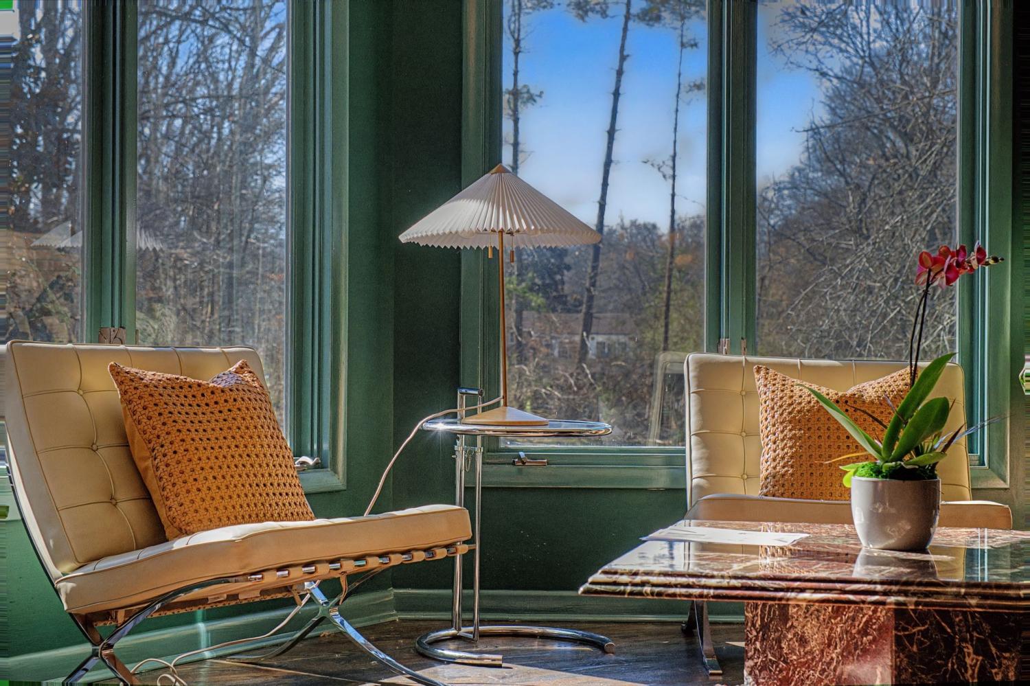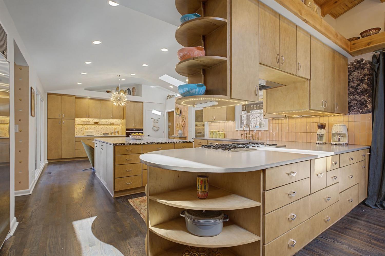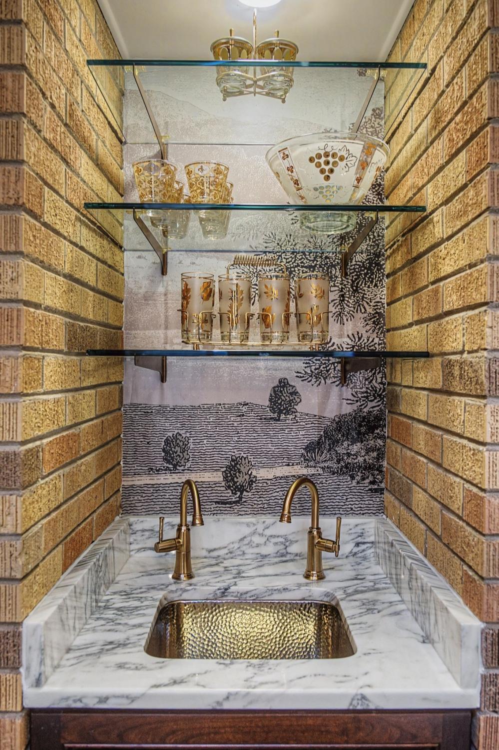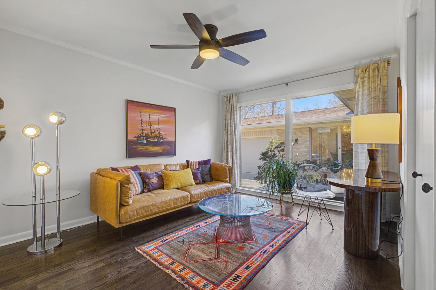 Beautifully renovated and thoughtfully restored Mid-Century Modern home in the highly sought-after Grassland Estates neighborhood of Franklin. This architectural gem blends timeless MCM design with elevated modern updates, featuring clean lines, expansive windows, and a seamless connection to the surrounding natural landscape. The thoughtfully curated kitchen is both functional and stunning, showcasing a La Cornue range, Wolf microwave, Ann Sacks terrazzo countertops, a handcrafted artisan sink by Thompson, and a striking vintage tile backsplash. Throughout the home, carefully selected designer details—including Schumacher grasscloth wallpaper and Visual Comfort fixtures—add warmth, texture, and sophistication. Situated on a large, peaceful lot just minutes from historic downtown Franklin, this rare offering captures the best of classic architecture and contemporary lifestyle. The home originally perked for four bedrooms but currently offers five rooms that could function as bedrooms, providing flexible living options. The lower level is designed for entertaining and everyday living alike, featuring a theater room, home gym with the option to add a sauna, and a full kitchenette—ideal for guests or multi-generational living. Additional conveniences include double washer and dryer sets, making day-to-day living effortless. A truly special property where mid-century character meets thoughtfully curated luxury.