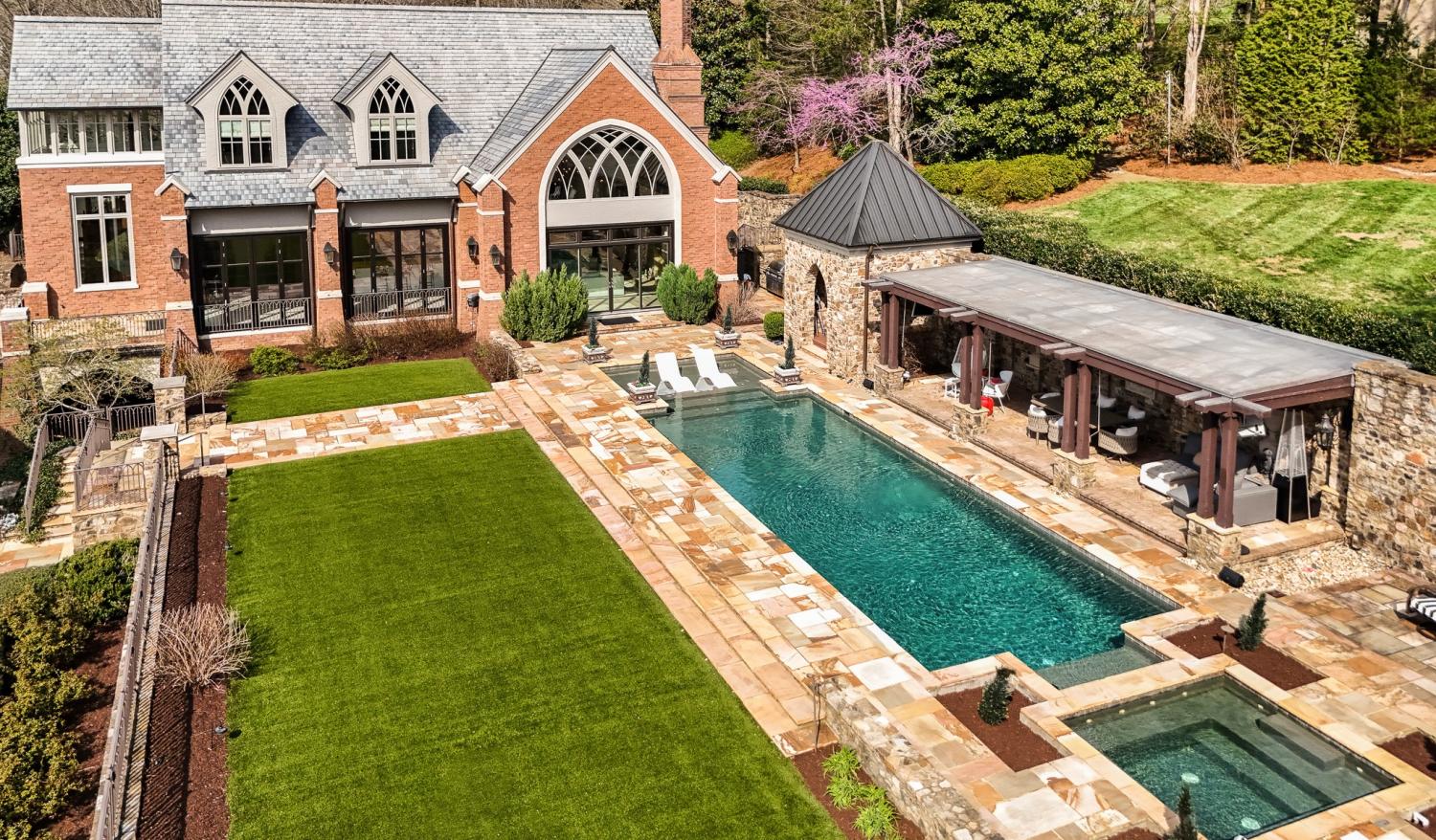 Nestled on a 1.9-acre wooded private lot along the main boulevard of the prestigious 24/7 gated community of Laurelbrooke, this extraordinary luxury estate offers a rare blend of timeless elegance, modern amenities, and resort-style living. The property includes a 12,774 sq ft traditional main residence and an impressive 4,657 sq ft modern pool house and spa, thoughtfully designed for both everyday comfort and exceptional entertaining. This remarkable home was featured on HGTV’s Million Dollar Rooms for its one-of-a-kind, custom-designed wine cellar located within the pool house. The stunning cellar holds up to 2,000 bottles and is uniquely positioned beneath a dramatic glass-bottom sitting room, creating an unforgettable architectural focal point. The pool house spa is designed to rival a private resort and features a commercial kitchen, massage room, steam room, his and her changing rooms, and a private one-bedroom apartment, ideal for guests, extended stays, or live-in accommodations. Inside the main residence, luxury amenities continue with an additional wine cellar, private movie theater, exercise room, sauna, and his and her offices, offering both comfort and functionality for today’s lifestyle. The beautifully landscaped grounds create a private retreat with park-like surroundings, a fenced and turfed backyard, resort-style swimming pool, cabana, two hot tubs, and a charming children’s playhouse, providing the perfect setting for relaxation and entertaining. Residents also enjoy access to scenic walking trails, a community clubhouse, and pool, along with convenient proximity to the best of Middle Tennessee. The estate is located minutes from Cool Springs, downtown Franklin, and approximately 25 minutes to downtown Nashville. The home is zoned in Williamson County School District, with several top private schools located within 10 minutes. An exceptional opportunity to own a resort-style luxury estate in one of Tennessee’s most sought-after communities.