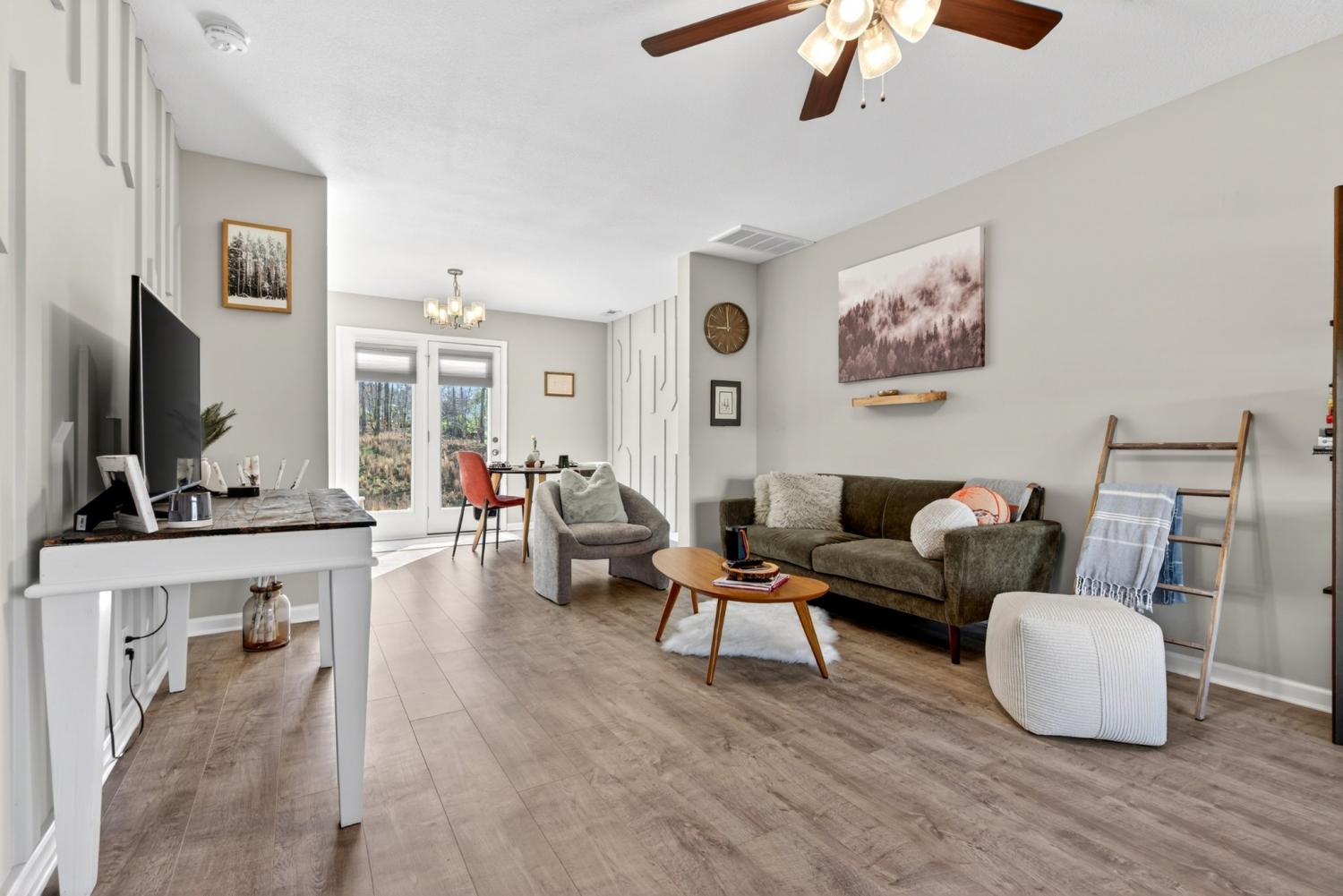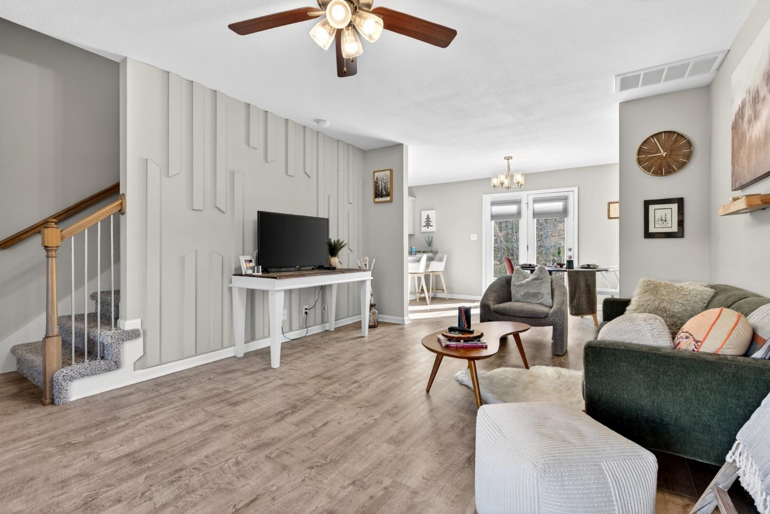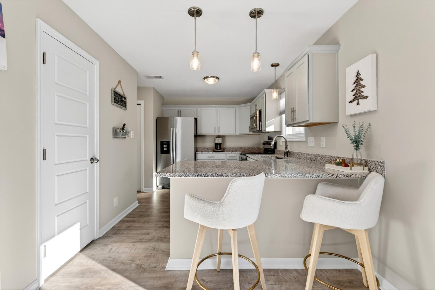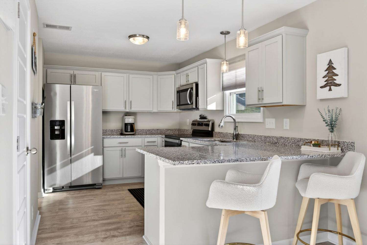Welcome to this charming 3-bedroom, 2.5-bath home that perfectly blends comfort and style! The heart of the home is a beautiful kitchen featuring stainless steel appliances, quartz countertops, a breakfast bar, and a cozy eat-in area highlighted by a stunning feature wall. The main level boasts durable LVP flooring, offering both elegance and easy maintenance, while all three bedrooms upstairs provide comfort with plush carpeting. Step outside to your private patio overlooking a peaceful wooded area—the perfect spot to sip your morning coffee or unwind at the end of the day. Conveniently located near Downtown Clarksville, you’ll enjoy easy access to shopping, dining, and vibrant nightlife. This home truly has it all!