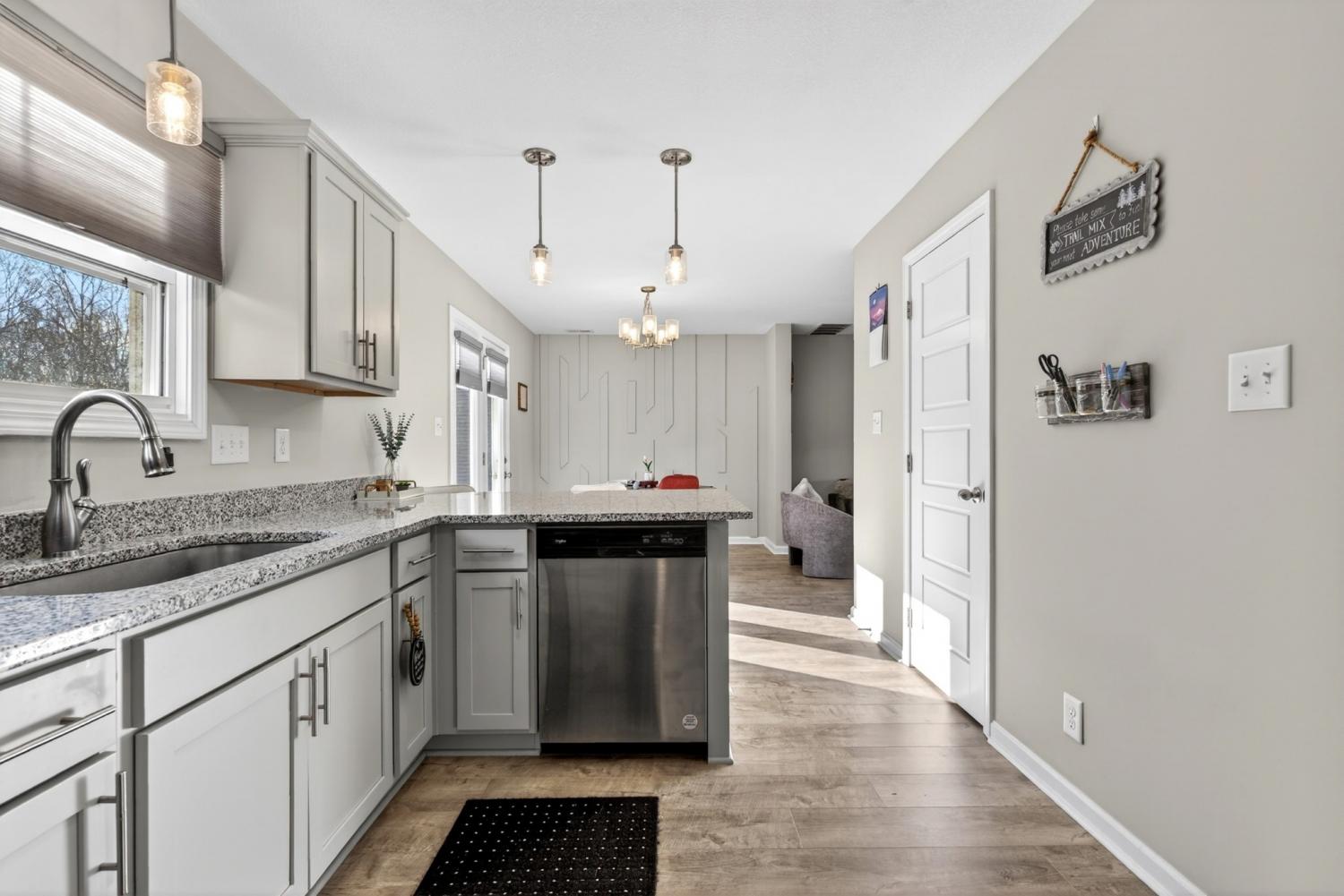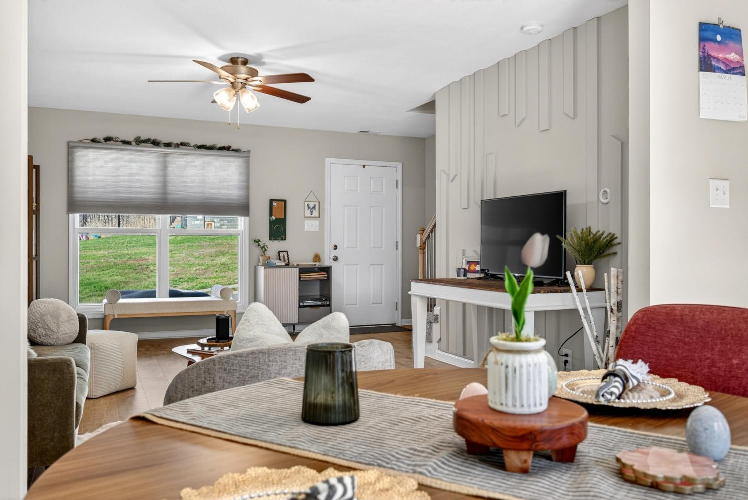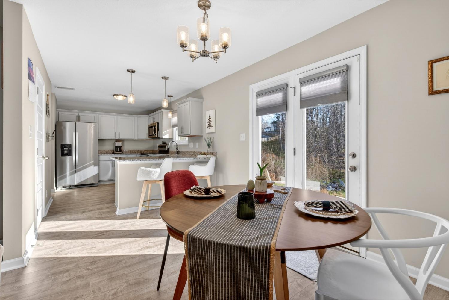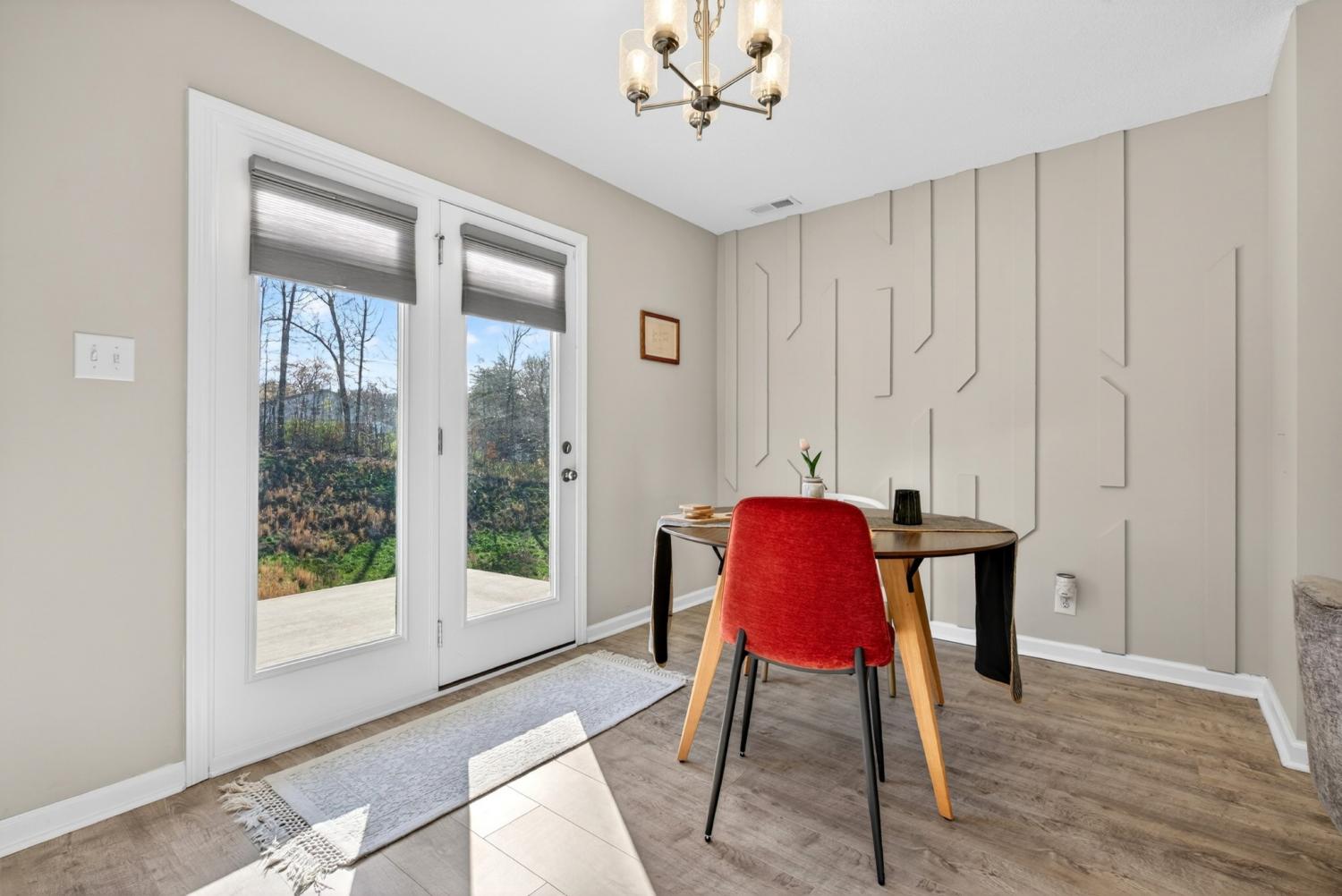 Welcome to this charming 3-bedroom, 2.5-bath home that perfectly blends comfort and style! The heart of the home is a beautiful kitchen featuring stainless steel appliances, quartz countertops, a breakfast bar, and a cozy eat-in area highlighted by a stunning feature wall. The main level boasts durable LVP flooring, offering both elegance and easy maintenance, while all three bedrooms upstairs provide comfort with plush carpeting. Step outside to your private patio overlooking a peaceful wooded area—the perfect spot to sip your morning coffee or unwind at the end of the day. Conveniently located near Downtown Clarksville, you’ll enjoy easy access to shopping, dining, and vibrant nightlife. This home truly has it all!