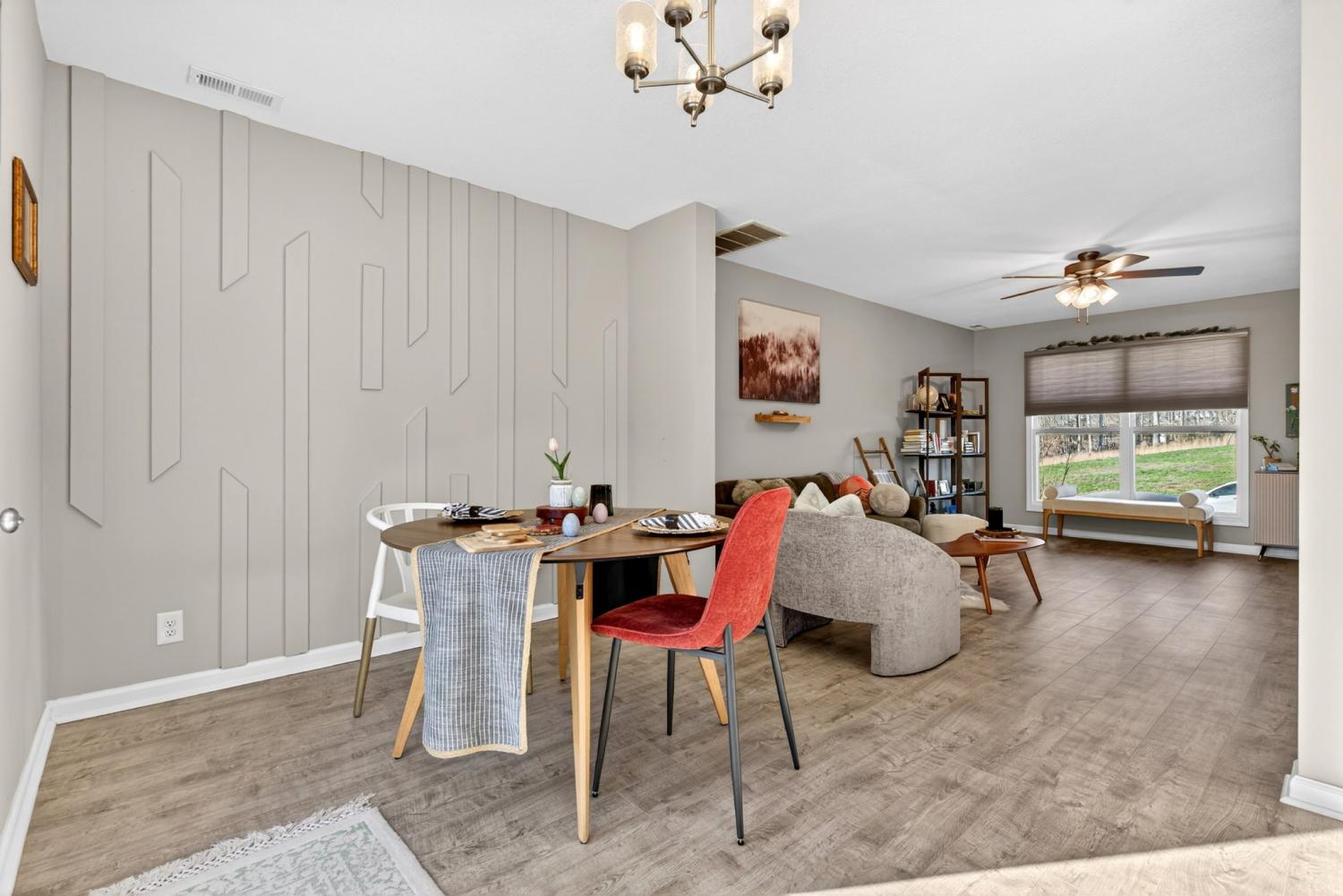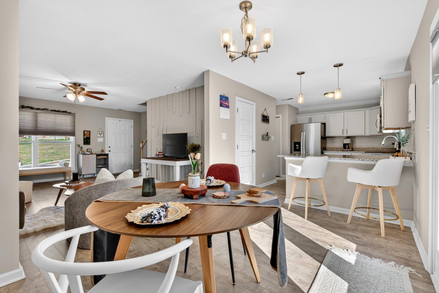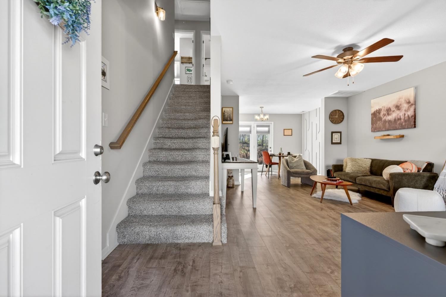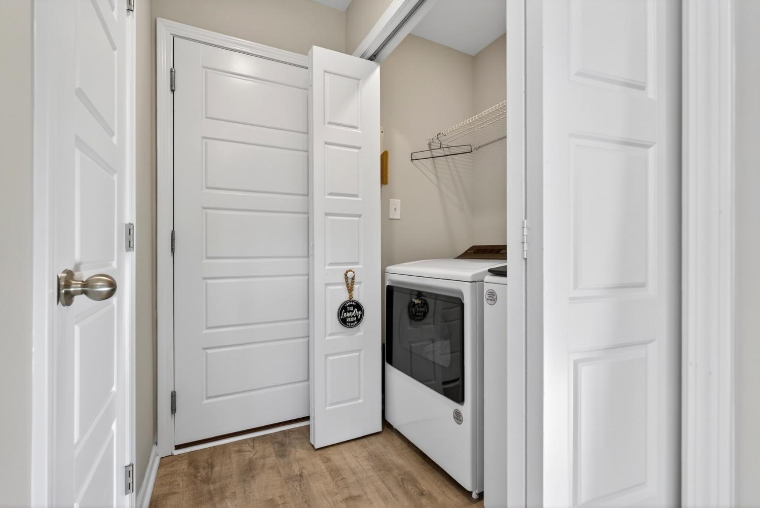 Welcome to this charming 3-bedroom, 2.5-bath home that perfectly blends comfort and style! The heart of the home is a beautiful kitchen featuring stainless steel appliances, quartz countertops, a breakfast bar, and a cozy eat-in area highlighted by a stunning feature wall. The main level boasts durable LVP flooring, offering both elegance and easy maintenance, while all three bedrooms upstairs provide comfort with plush carpeting. Step outside to your private patio overlooking a peaceful wooded area—the perfect spot to sip your morning coffee or unwind at the end of the day. Conveniently located near Downtown Clarksville, you’ll enjoy easy access to shopping, dining, and vibrant nightlife. This home truly has it all!