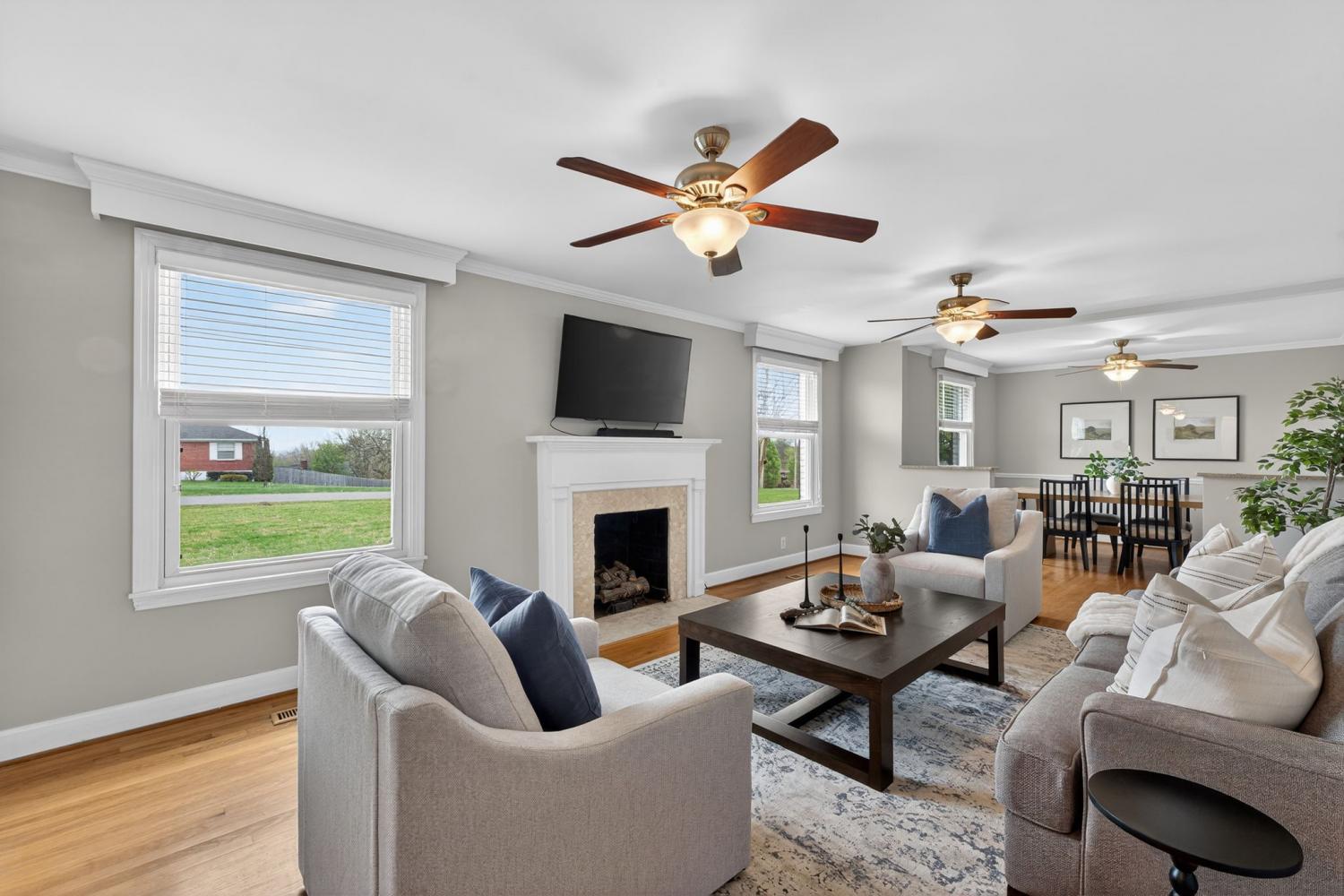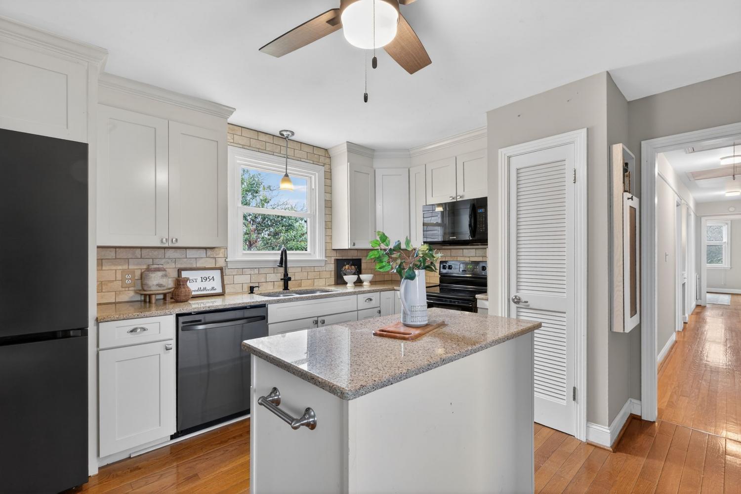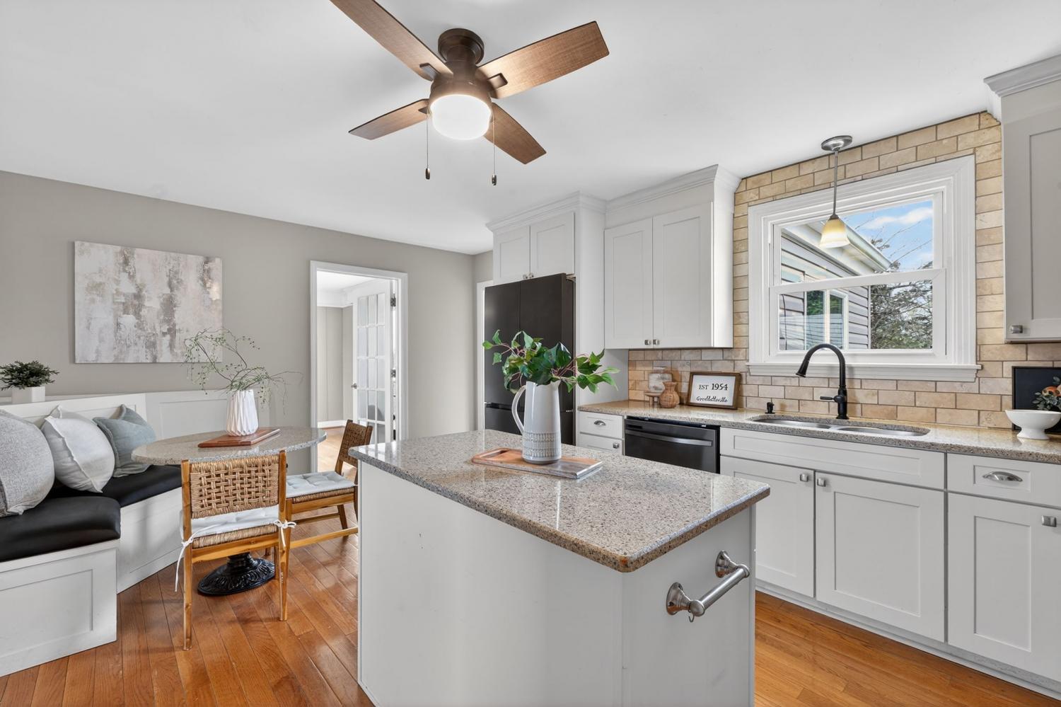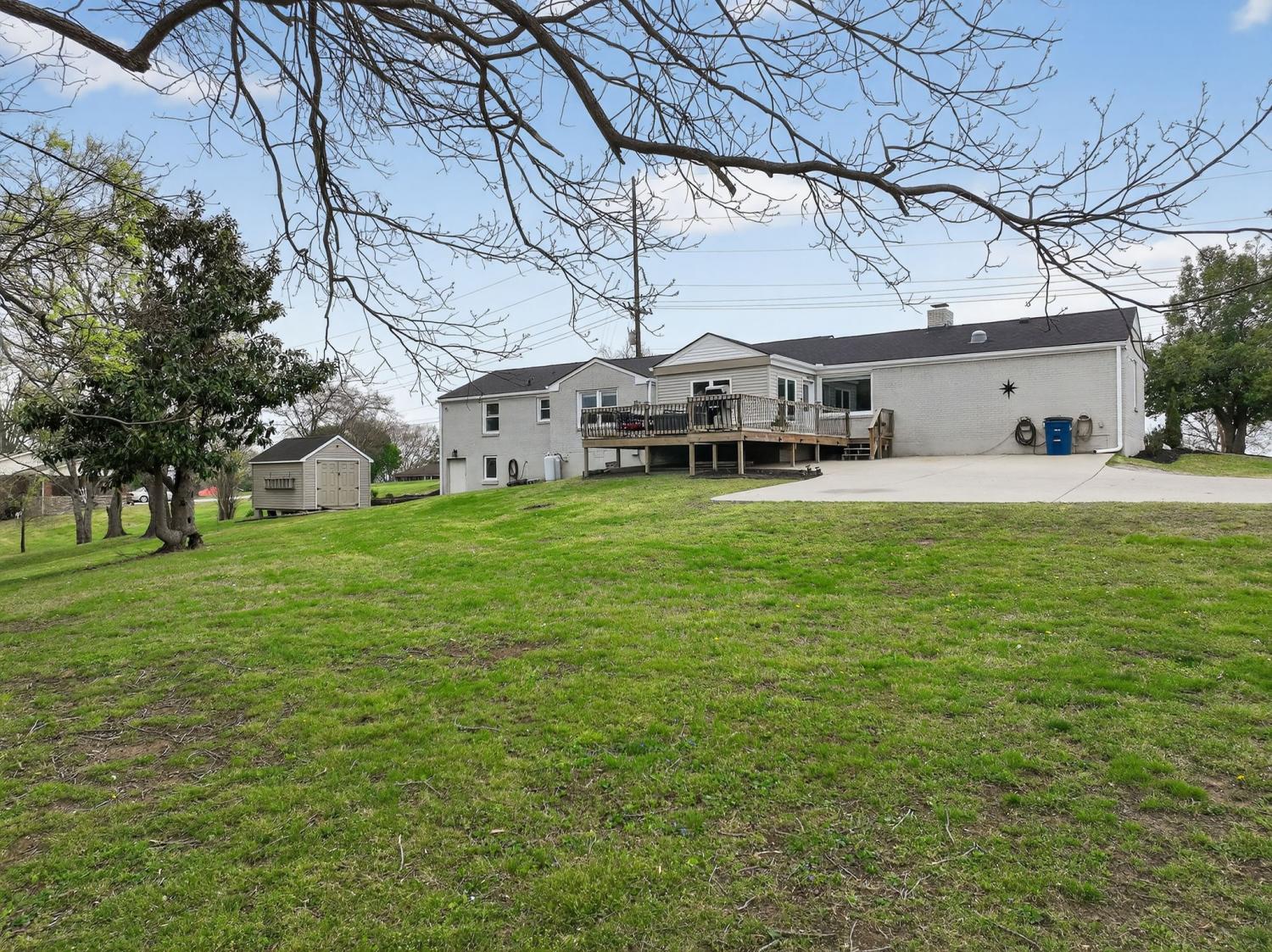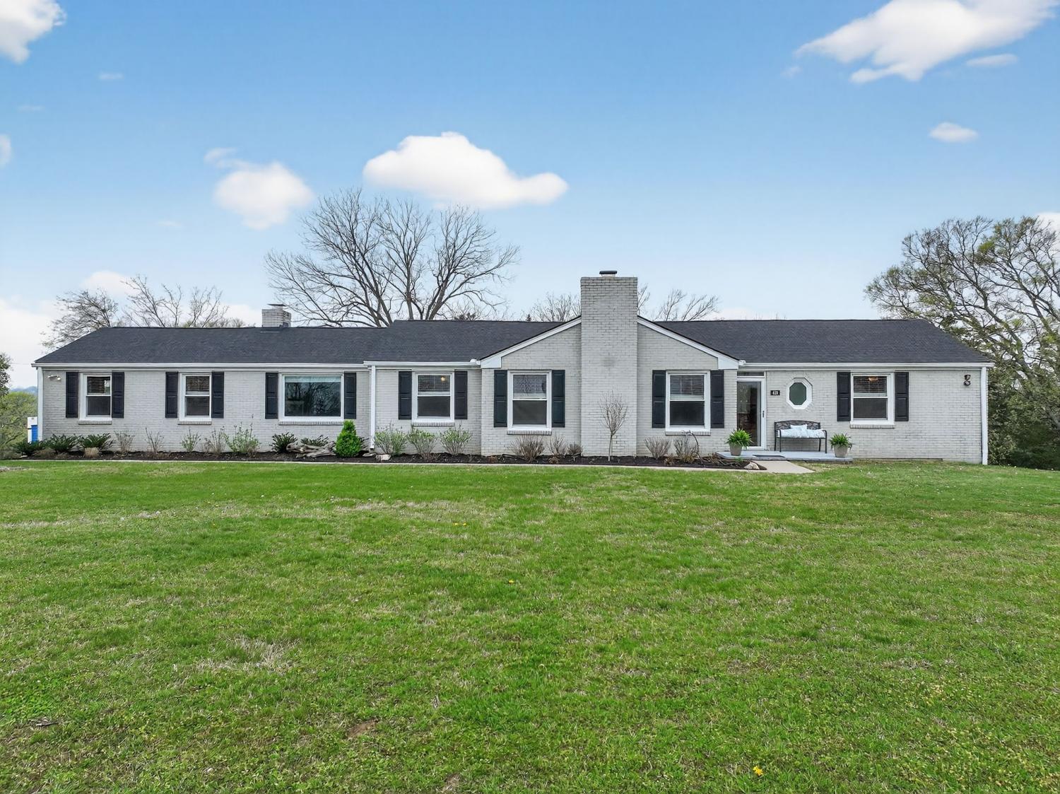 A rare opportunity in Goodlettsville—this one-level Mid-Century ranch blends timeless character with modern updates on over 1.4 acres with no HOA. Located in an established neighborhood with mature trees and wide streets, this home offers the space, privacy, and lifestyle buyers are searching for—just minutes from the I-65 interstate and a quick drive to downtown Nashville. Inside, gorgeous hardwood floors, thoughtful updates, cedar-lined closets, and a sunny four-seasons room highlight the home’s Mid-Century charm while offering today’s conveniences. In the kitchen, you'll find a custom design complete with soft-close drawers and special cabinet for your stand mixer. A whole -home fan offers a nostalgic touch while providing efficient, practical air flow for those hot summer days. With four bedrooms and three full bathrooms (and no steps) the layout provides flexibility for everyday living, while the massive primary suite with walk-through closet creates a true private retreat. The spacious deck is ideal for outdoor living—perfect for entertaining, morning coffee or enjoying peaceful Tennessee sunsets overlooking your private acreage. Walkable to Pleasant Green Park with trails and the highly-rated Goodlettsville community pool, this location keeps you close to shopping, grocery, antique shops, dining, and even a new music venue. If you’ve been searching for a one-level ranch-style home with land, no HOA, and easy access to Nashville—this one checks every box.