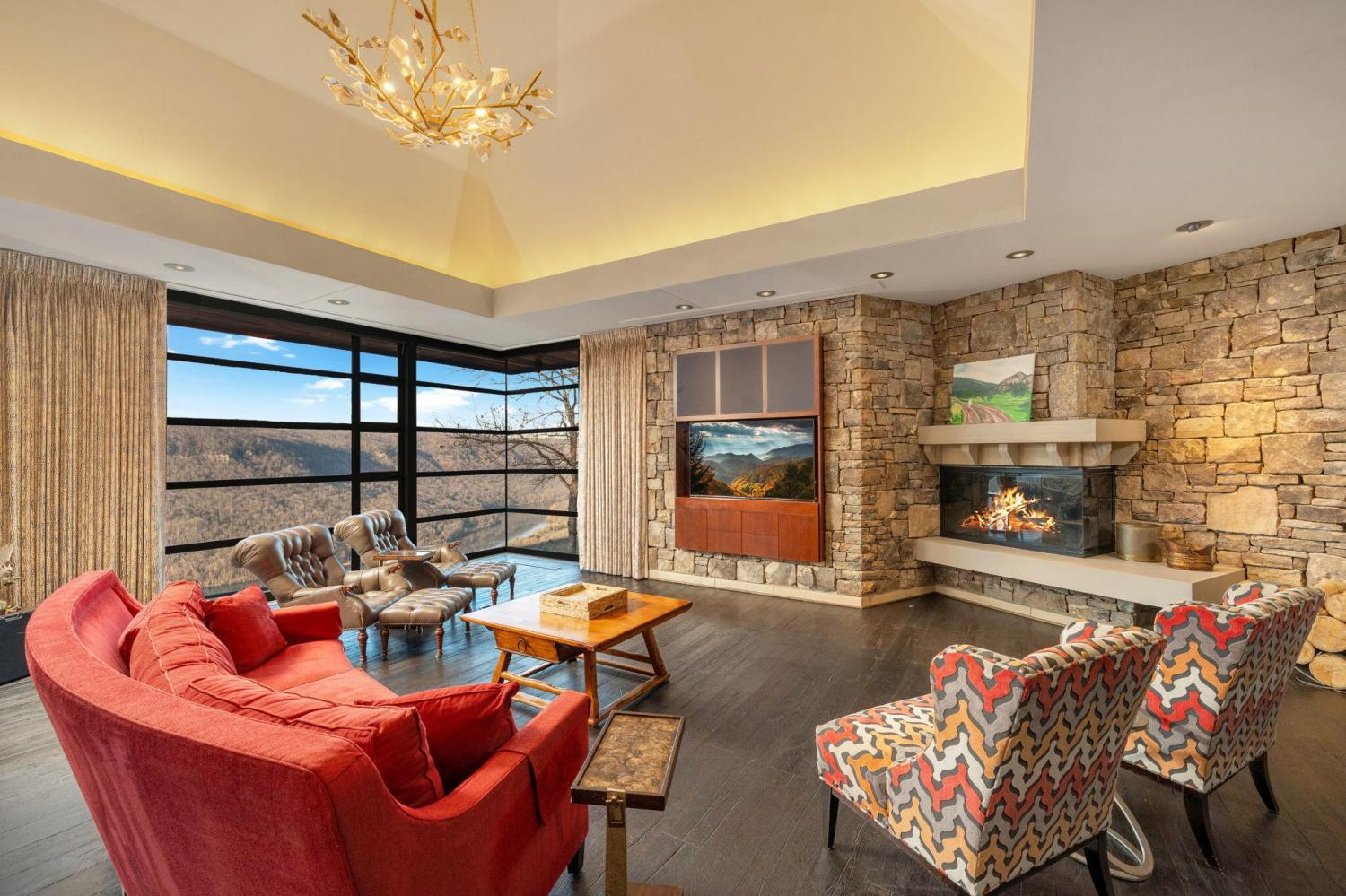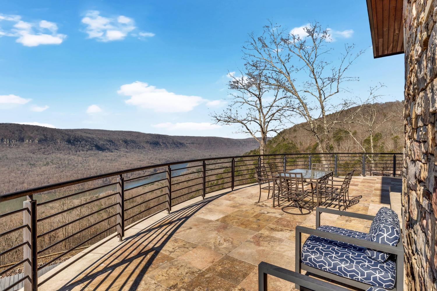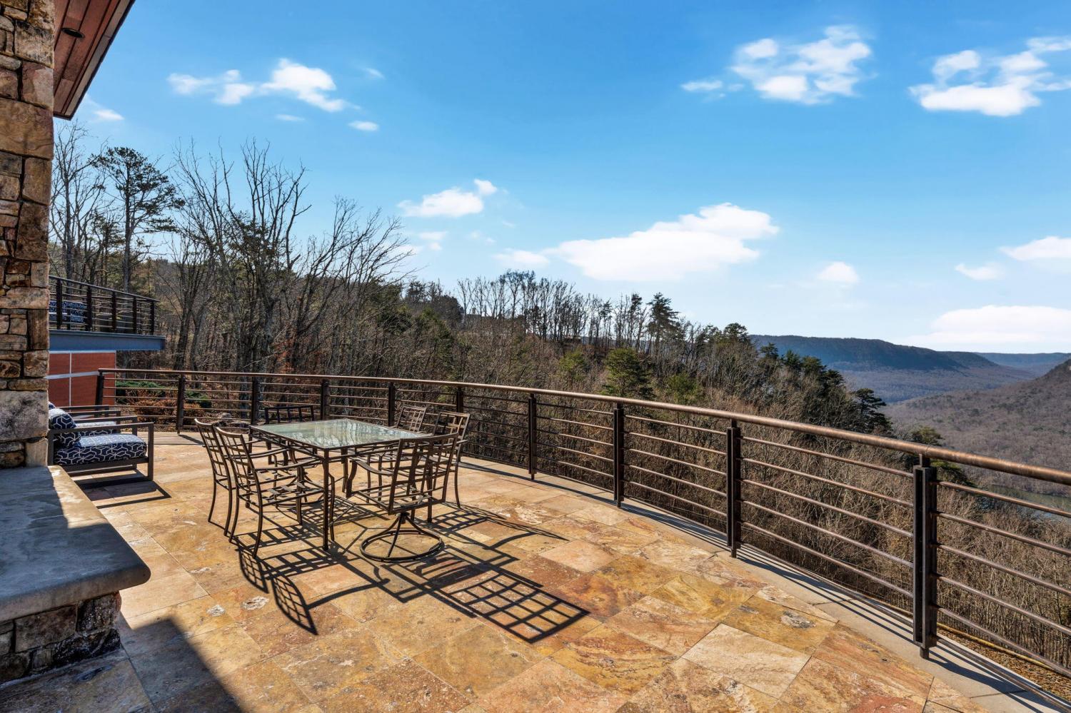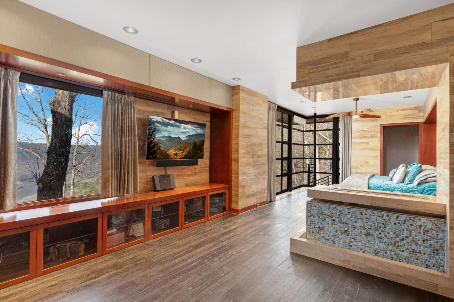 A Frank Lloyd Wright-inspired compound perched above the Tennessee River Gorge on 10.89 private acres... available for the first time in over a decade. 15,000 square feet of architectural precision: floor-to-ceiling glass curtain walls, native stone masonry, cedar and steel construction designed to dissolve the boundary between interior and landscape. Six bedrooms. Eight full baths. Four half baths. Every room oriented toward 270-degree mountain and river views. The main level delivers a banquet hall anchored by a custom 14-seat glass table imported from Canada, an oval library with hand-painted ceiling, a home office, and a primary suite at the rear of the home with unobstructed gorge views. The circular bedroom tower at the front entry is a signature architectural feature. The lower level operates as a self-contained second residence -- 2 bedrooms, 2.5 baths -- ideal for extended family, staff, or guests. For the car enthusiast: a 3,500 sqft main garage with four hydraulic lifts accommodating up to 14 vehicles, plus a separate 4-car garage. Outdoors: resort-style pool with motorized covers rated to 250 lbs, 12-person hot tub, screened porch with sink/refrigerator/dishwasher, courtyard with outdoor televisions, stone firepit, smoker, and accordion doors opening to the main garage. Outdoor wood-burning fireplace. 20 irrigation zones. Hundreds of landscape lights. Surround sound. RV hookup. Fully fenced with multiple gated entries. Tennessee -- no state income tax. Chattanooga -- Top Private Aviation FBO in the Country. 90 minutes to Nashville and Atlanta International Airports . A private estate of this caliber, in this tax environment, at this price point, does not exist anywhere else in the Southeast. Schedule your private showing.