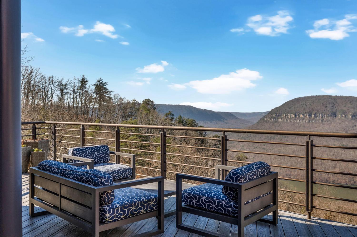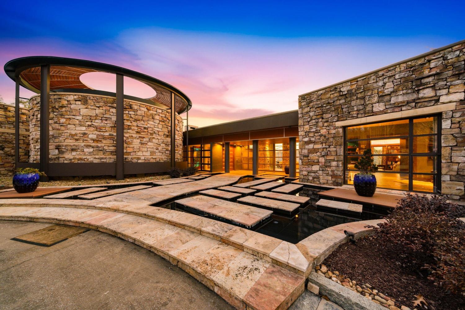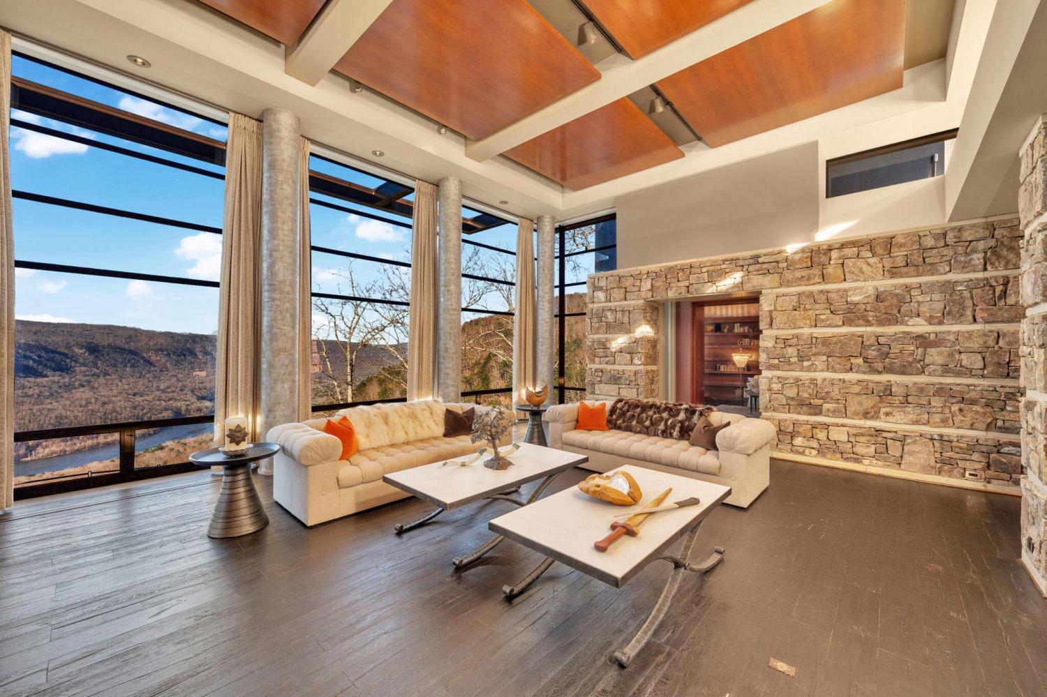 A Frank Lloyd Wright-inspired compound perched above the Tennessee River Gorge on 10.89 private acres... available for the first time in over a decade. 15,000 square feet of architectural precision: floor-to-ceiling glass curtain walls, native stone masonry, cedar and steel construction designed to dissolve the boundary between interior and landscape. Six bedrooms. Eight full baths. Four half baths. Every room oriented toward 270-degree mountain and river views. The main level delivers a banquet hall anchored by a custom 14-seat glass table imported from Canada, an oval library with hand-painted ceiling, a home office, and a primary suite at the rear of the home with unobstructed gorge views. The circular bedroom tower at the front entry is a signature architectural feature. The lower level operates as a self-contained second residence -- 2 bedrooms, 2.5 baths -- ideal for extended family, staff, or guests. For the car enthusiast: a 3,500 sqft main garage with four hydraulic lifts accommodating up to 14 vehicles, plus a separate 4-car garage. Outdoors: resort-style pool with motorized covers rated to 250 lbs, 12-person hot tub, screened porch with sink/refrigerator/dishwasher, courtyard with outdoor televisions, stone firepit, smoker, and accordion doors opening to the main garage. Outdoor wood-burning fireplace. 20 irrigation zones. Hundreds of landscape lights. Surround sound. RV hookup. Fully fenced with multiple gated entries. Tennessee -- no state income tax. Chattanooga -- Top Private Aviation FBO in the Country. 90 minutes to Nashville and Atlanta International Airports . A private estate of this caliber, in this tax environment, at this price point, does not exist anywhere else in the Southeast. Schedule your private showing.