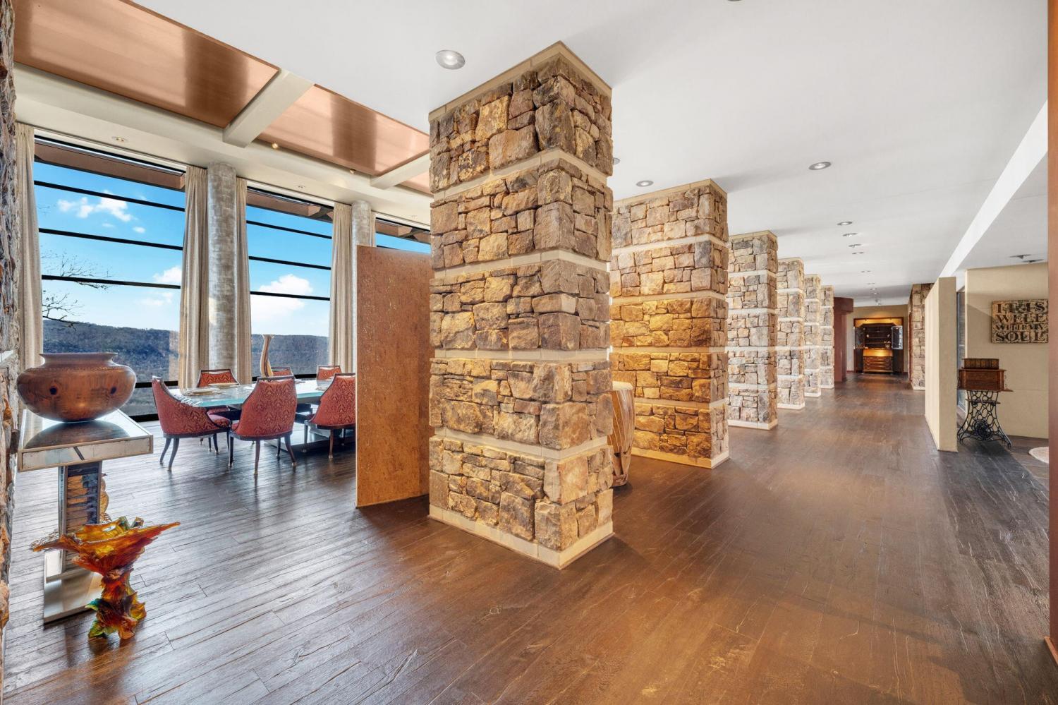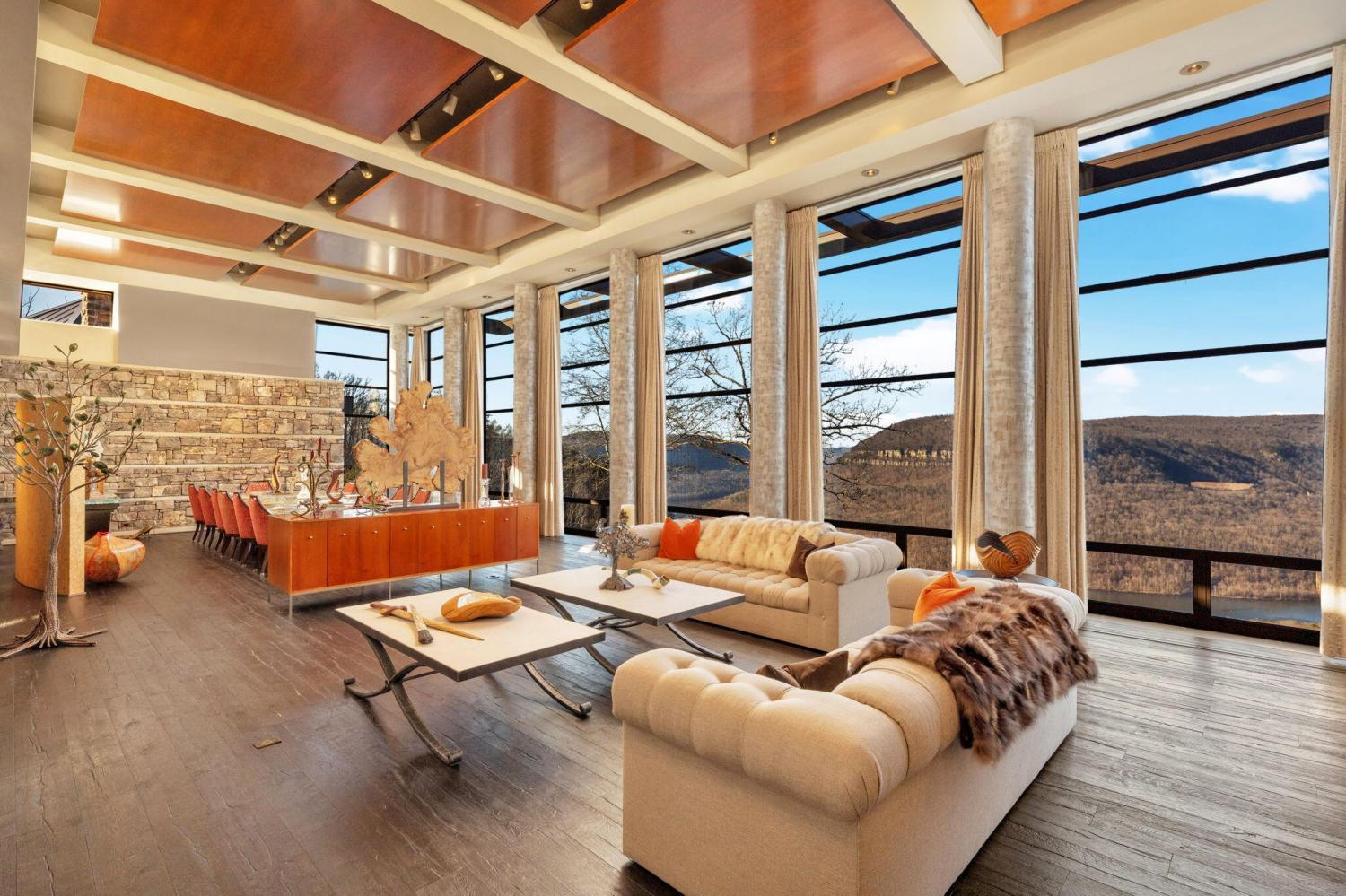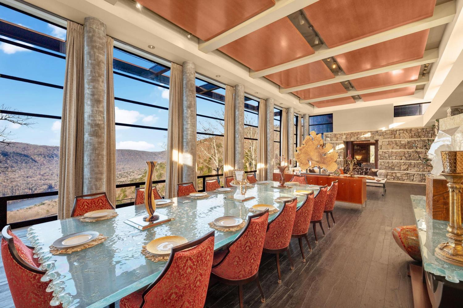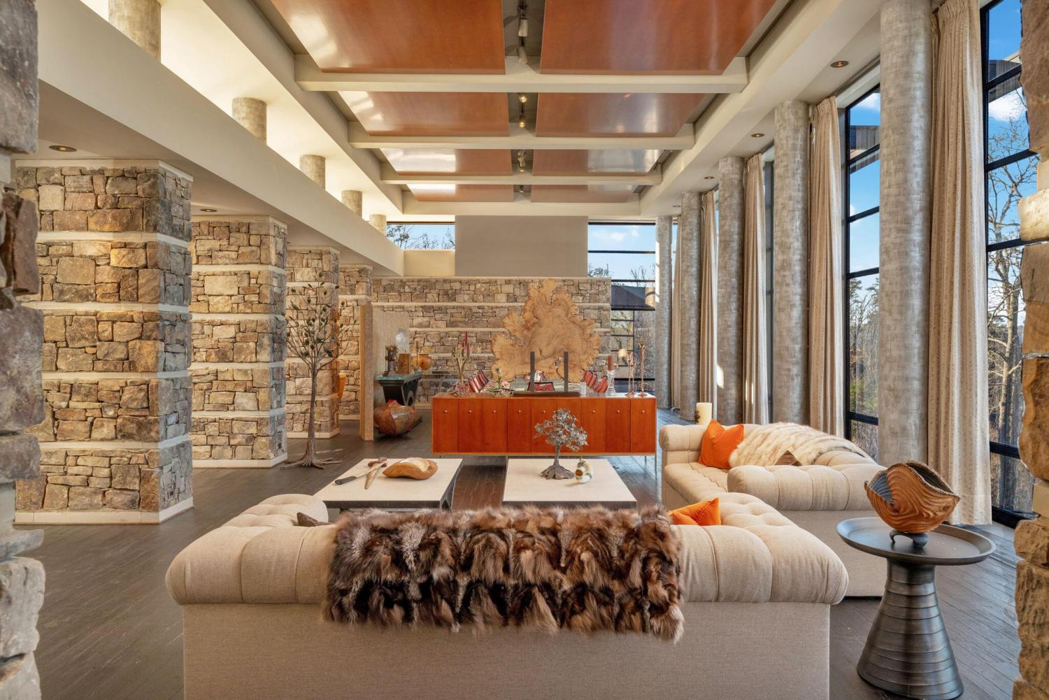 A Frank Lloyd Wright-inspired compound perched above the Tennessee River Gorge on 10.89 private acres... available for the first time in over a decade. 15,000 square feet of architectural precision: floor-to-ceiling glass curtain walls, native stone masonry, cedar and steel construction designed to dissolve the boundary between interior and landscape. Six bedrooms. Eight full baths. Four half baths. Every room oriented toward 270-degree mountain and river views. The main level delivers a banquet hall anchored by a custom 14-seat glass table imported from Canada, an oval library with hand-painted ceiling, a home office, and a primary suite at the rear of the home with unobstructed gorge views. The circular bedroom tower at the front entry is a signature architectural feature. The lower level operates as a self-contained second residence -- 2 bedrooms, 2.5 baths -- ideal for extended family, staff, or guests. For the car enthusiast: a 3,500 sqft main garage with four hydraulic lifts accommodating up to 14 vehicles, plus a separate 4-car garage. Outdoors: resort-style pool with motorized covers rated to 250 lbs, 12-person hot tub, screened porch with sink/refrigerator/dishwasher, courtyard with outdoor televisions, stone firepit, smoker, and accordion doors opening to the main garage. Outdoor wood-burning fireplace. 20 irrigation zones. Hundreds of landscape lights. Surround sound. RV hookup. Fully fenced with multiple gated entries. Tennessee -- no state income tax. Chattanooga -- Top Private Aviation FBO in the Country. 90 minutes to Nashville and Atlanta International Airports . A private estate of this caliber, in this tax environment, at this price point, does not exist anywhere else in the Southeast. Schedule your private showing.