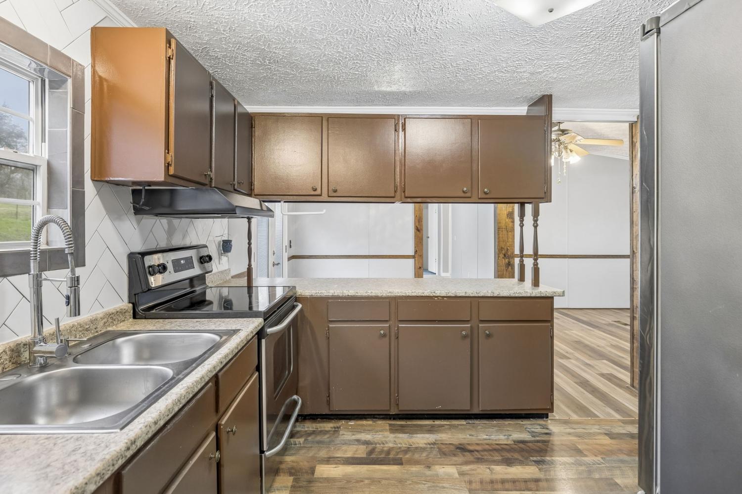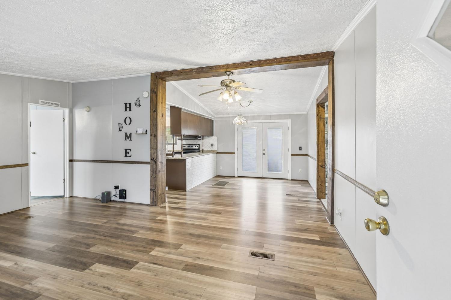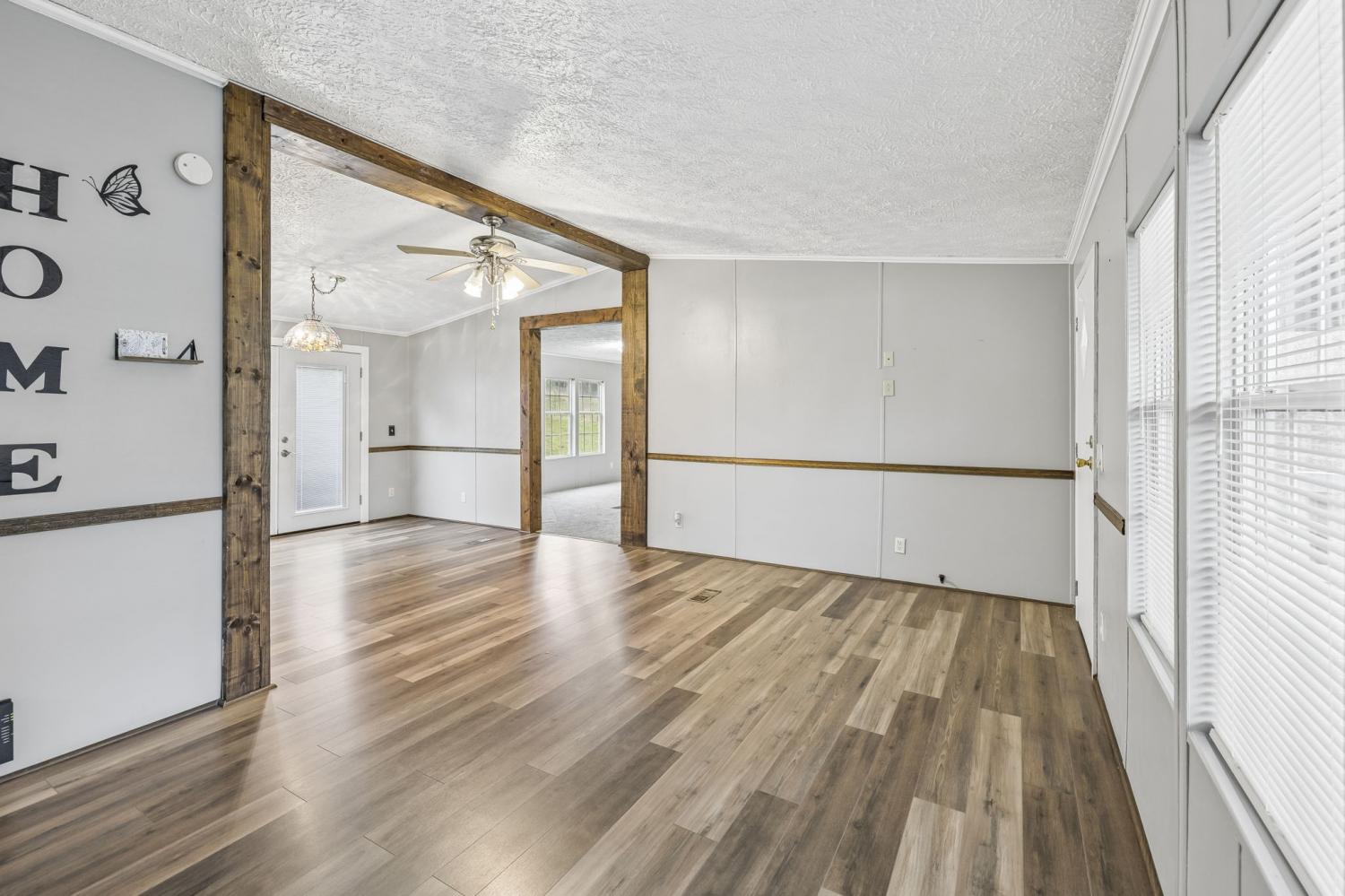 13.37 ares with a 1440 sq ft, 4BD/2BA Double Wide home with a permanent foundation. It's approx. 500’ feet away from the main road for privacy. Exterior- has Wonderfully place stone work. Open concept kitchen with nook & formal dining rooms, living room, family room with a New Stone fireplace, all appliances remain, vaulted ceilings, front covered deck & open back decking. Newly painted walls. Home was used as a mini farm with Cows, Chickens, Goats, Lambs. There is room for expansion with no restrictions. Approx 63 miles from Nashville, TN. Home is selling AS-IS. Home will go Conventional Financing.