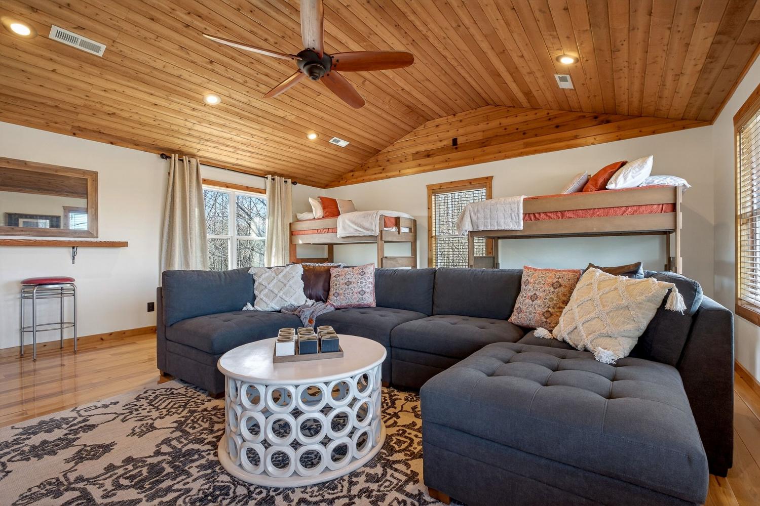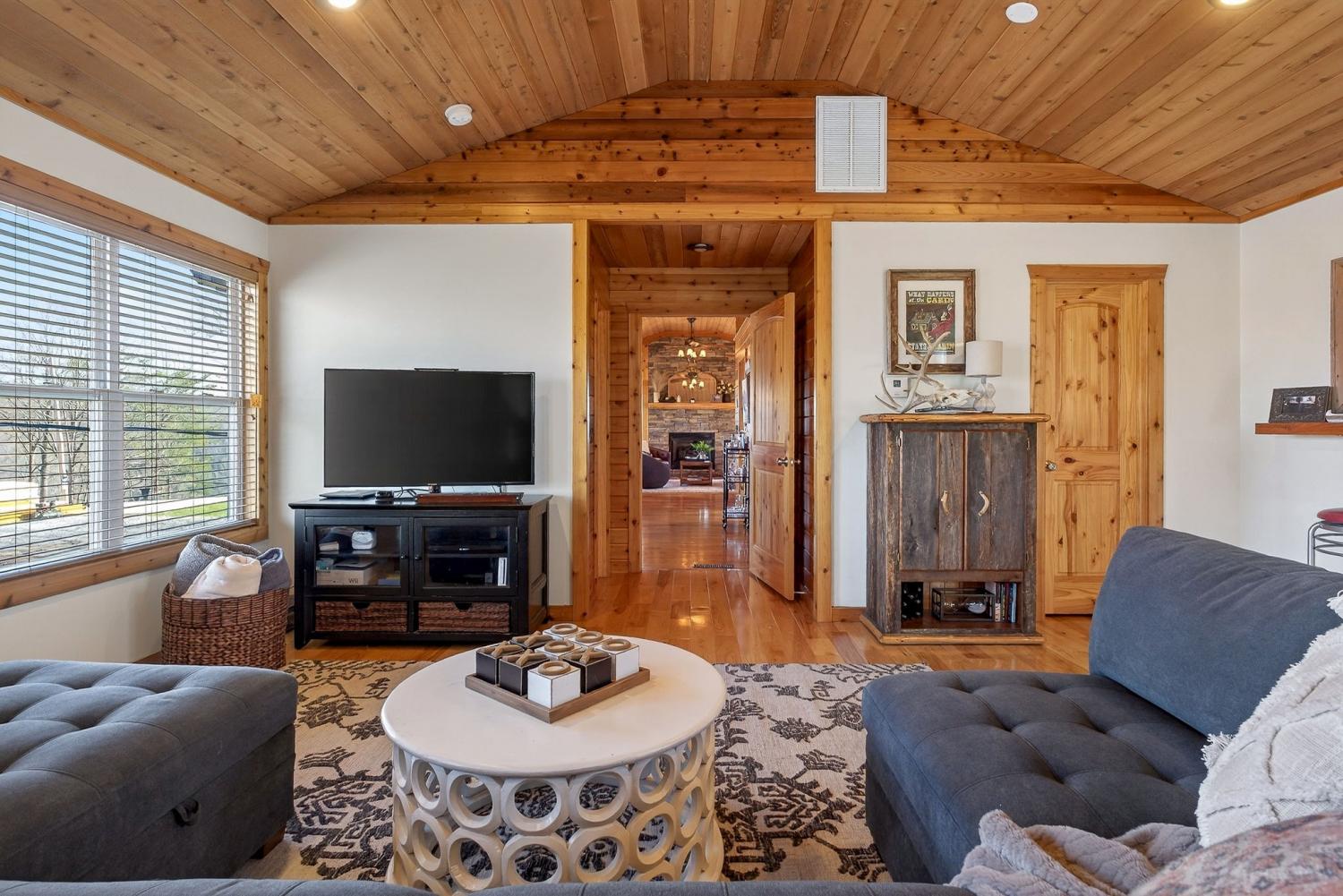 Fully furnished cabin with year-round views of Center Hill Lake that comfortably sleeps 10! This spacious retreat features two living areas and expansive covered porches, perfect for relaxing or entertaining. Enjoy the outdoor hot tub while taking in the peaceful lake setting or sitting by the fireplace enjoying the nature. The exterior has been recently stained and new gutters installed, making this home move-in ready. Ideal as a personal lake getaway or everyday living near beautiful Center Hill Lake. Only 15 min to Sligo Marina or Four Seasons Marina. Pictures don't do it justice this is a must see property!!! Includes additional lot Tax ID Tax ID: 071L B 023.00
