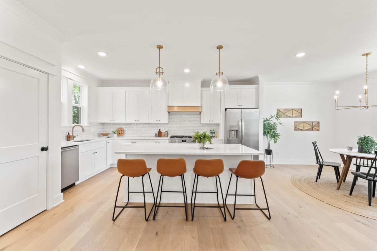 Welcome to a rare offering in the heart of East Nashville—an exquisitely designed FIVE BEDROOM, 3.5-bath residence just steps from Shelby Bottoms Greenway—one of the city’s most beloved outdoor destinations. Perfect for nature enthusiasts, offering miles of scenic walking and biking trails, open green space, a nature center, wildlife viewing, tree canopies, dog park and play area alongside the Cumberland River. And let's not forget East Nashville’s most celebrated destinations and an ever-evolving collection of upscale dining, craft cocktail lounges, artisanal cafés, and boutique shopping just mere minutes away. Inside, the home showcases impeccable craftsmanship and thoughtful design, highlighted by soaring 10-foot ceilings, wide-plank flooring, and a gorgeous sun lit interior, thanks to oversized windows! And no tight spaces here, as generously proportioned rooms cater to both guests AND your everyday comfort. At the heart of the home, the kitchen serves as both a functional workspace and a striking focal point—featuring premium stainless steel appliances, custom-crafted cabinetry, and elegant quartz surfaces. Whether hosting intimate dinners or grand gatherings, this space rises to every occasion. Every element of the home reflects a commitment to quality, from its elevated finishes to the functional enhancements such as an encapsulated crawlspace with integrated dehumidification for optimal year-round performance. This is more than a home—it's a statement of lifestyle, offering the perfect fusion of luxury, location, and design in one of Nashville’s most desirable settings!