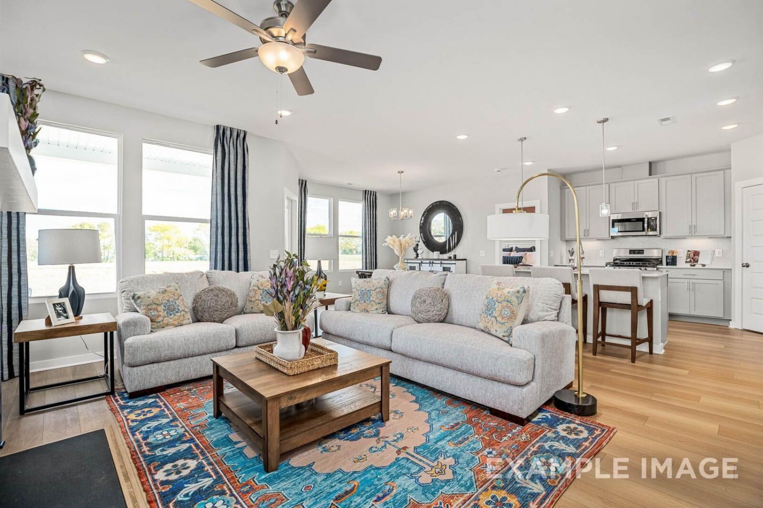 ONE LEVEL MODEL HOME for QUICK MOVE IN! This home is absolutely loaded with upgrades and features 3 bedrooms/2baths. The Franklin floorplan is one of our most popular floorplans that brings one level living to its best with covered porch. This incredible open floorplan comes with spacious kitchen, beautiful 42 inch soft close light gray cabinets, stainless appliances with gas stove, Fridge, quartz countertops in kitchen and bathrooms, upgraded tile backsplash, open to a wonderful great room with shiplap fireplace and that has hard surface throughout. The isolated Owners Suite features a beautiful bathroom layout – complete with a large walk-in closet, dual vanities and tile flooring. Home will also come with washer and dryer included. This model home will not last long!