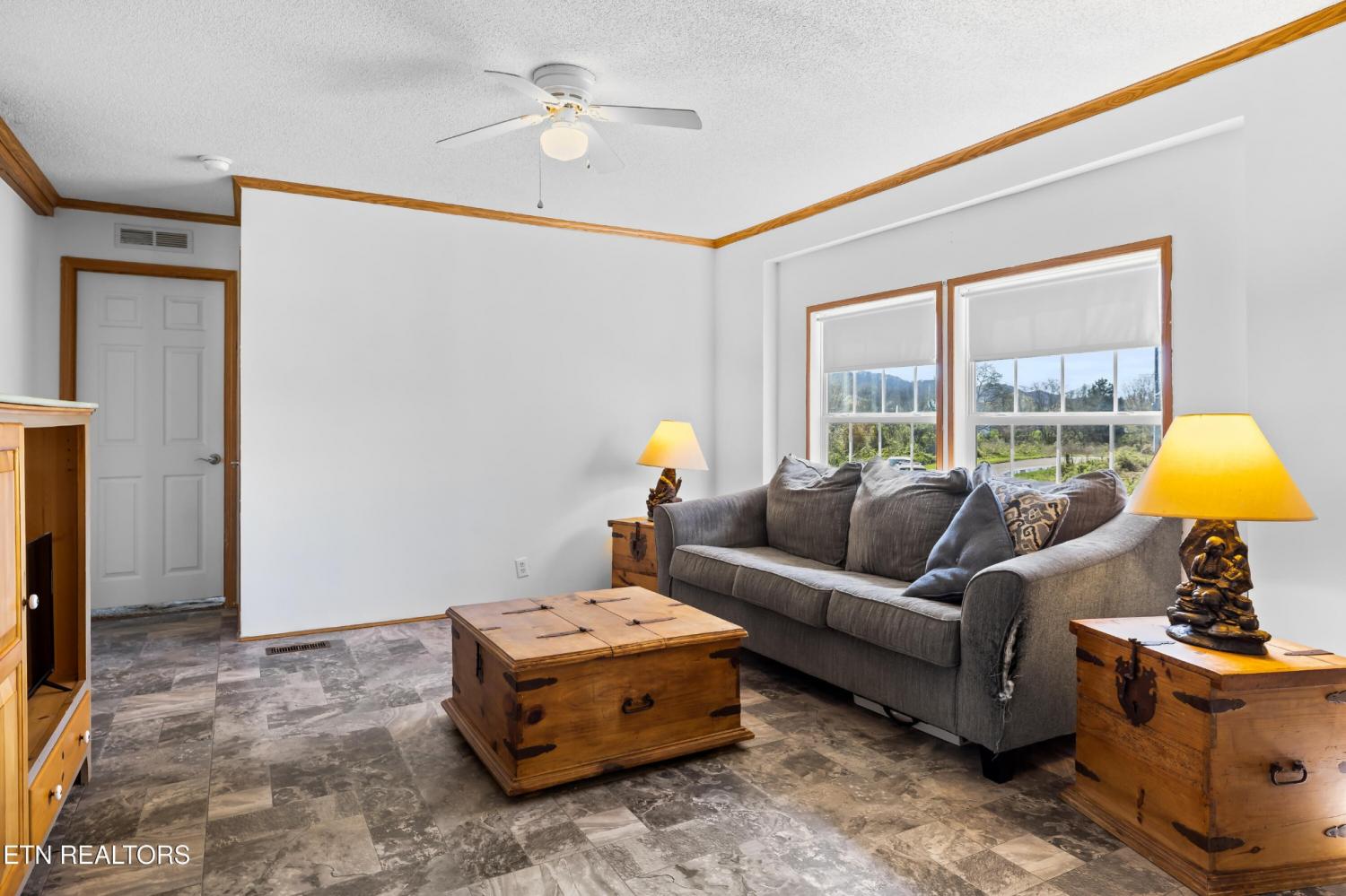 I 40 East to Asheville Hwy exit. L on Asheville Hwy/US 25W for 14 mi. to L on Russell Gap Rd. 2 mi. to R on Doane Rd. 3/4 mi. to R on Farm Loop Rd. 1/4 mi. Property on R. Sign on property.