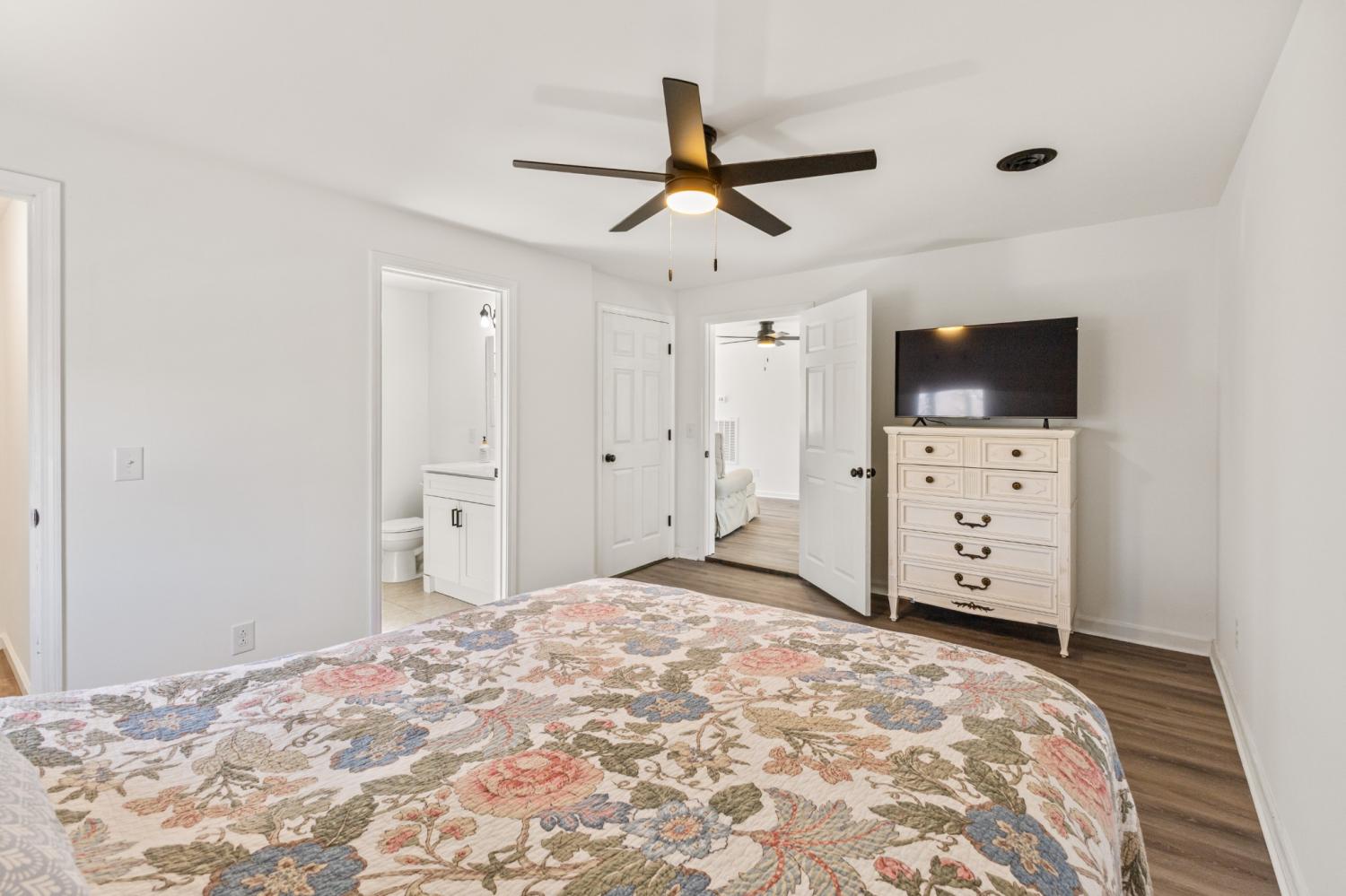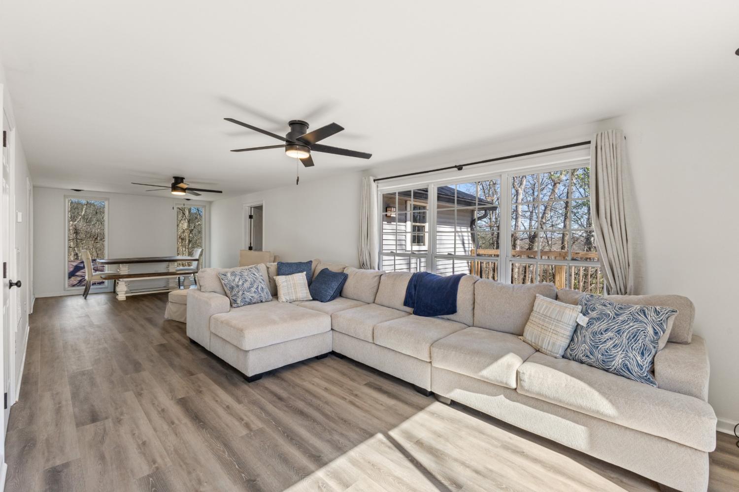 Charming newly renovated 2BR/2BA lakehouse located near the Tennessee River and just minutes from Mason’s Boat Dock. This move-in-ready property features an abundance of windows that fill the home with natural light, creating a bright and airy feel throughout the open living spaces. Recent updates include all new flooring, a new HVAC unit, brand-new kitchen appliances, granite countertops, new cabinetry, fresh paint, and updated trim throughout. Both bathrooms have been upgraded with new vanities. Exterior improvements include a new concrete sidewalk, a spacious 20x16 deck perfect for relaxing or entertaining, a newer metal roof, and updated gutters. The property also includes a 12x12 outbuilding for additional storage. Enjoy peaceful living with convenient access to the water!