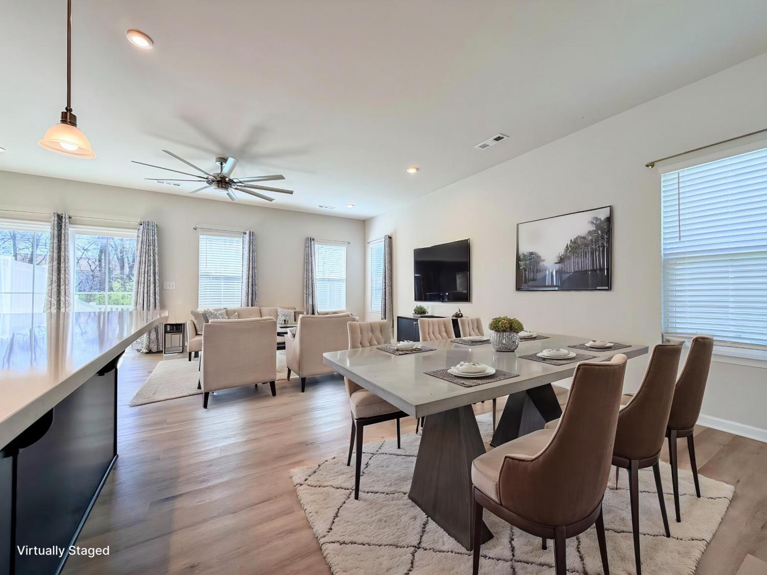 Welcome to this beautifully designed end-unit townhome that perfectly blends comfort, style, and convenience. With 3 bedrooms and 2.5 baths, this home offers a spacious open floor plan that feels bright, airy, and ideal for easy living. The main level features upscale finishes and durable solid surface flooring throughout the living areas. The kitchen is truly the heart of the home, complete with a large eat-at island, double ovens, stainless steel appliances, and a generous walk-in pantry—perfect for everyday living or hosting guests. A convenient half bath is also located downstairs. Upstairs, you’ll find a thoughtfully designed layout including a dedicated laundry room and all three bedrooms. The primary suite is a true retreat, featuring both a large walk-in closet and an additional secondary closet, along with a double sink vanity and private water closet. Two additional bedrooms and a full bath complete the second level. Step outside to enjoy your private patio and fully fenced backyard with privacy panels—backing up to a protected wooded area for a peaceful, natural setting, perfect for relaxing at the end of the day. Location is a standout here, with easy access to everyday conveniences like Publix, dining favorites such as Jonathan's Grille, and just minutes from the charm and local events of Historic Downtown Gallatin Square. Plus, commuting is a breeze with quick access to Highway 109.