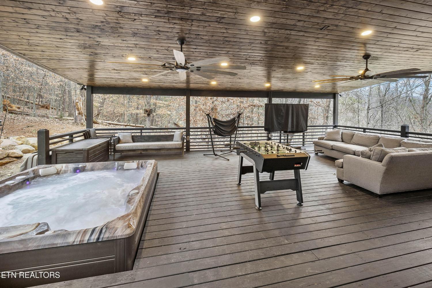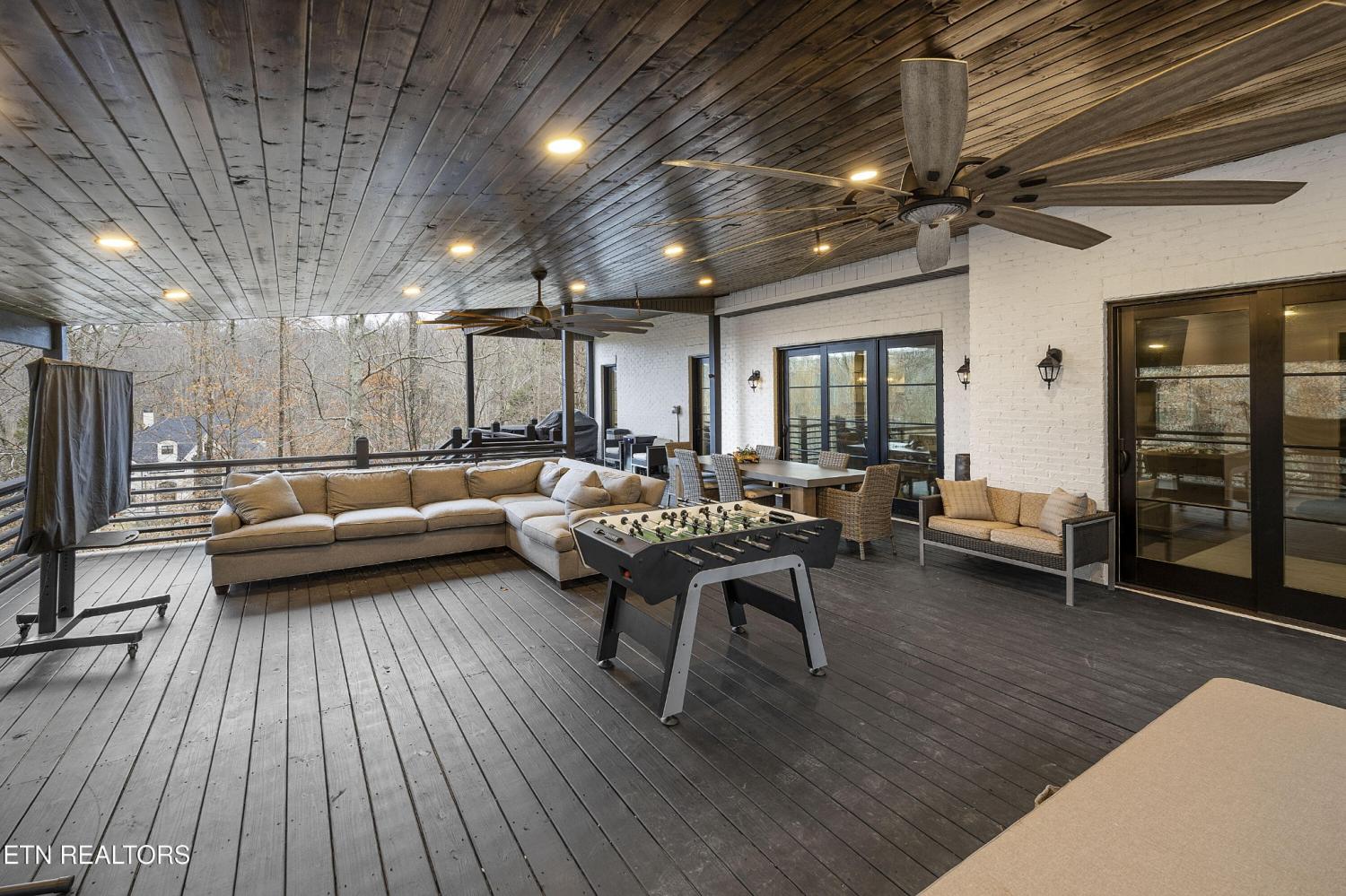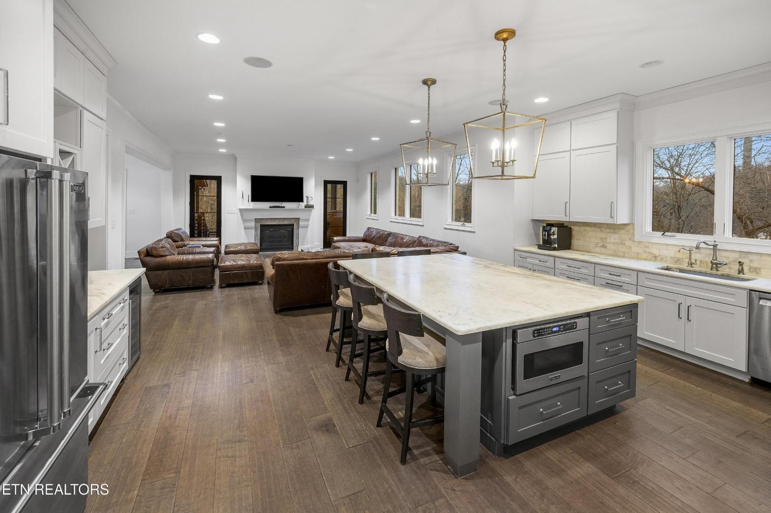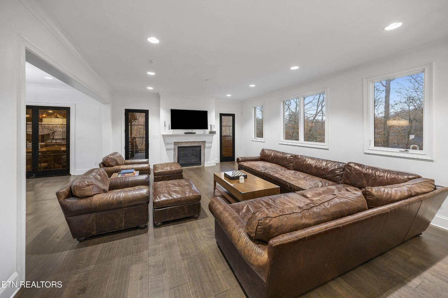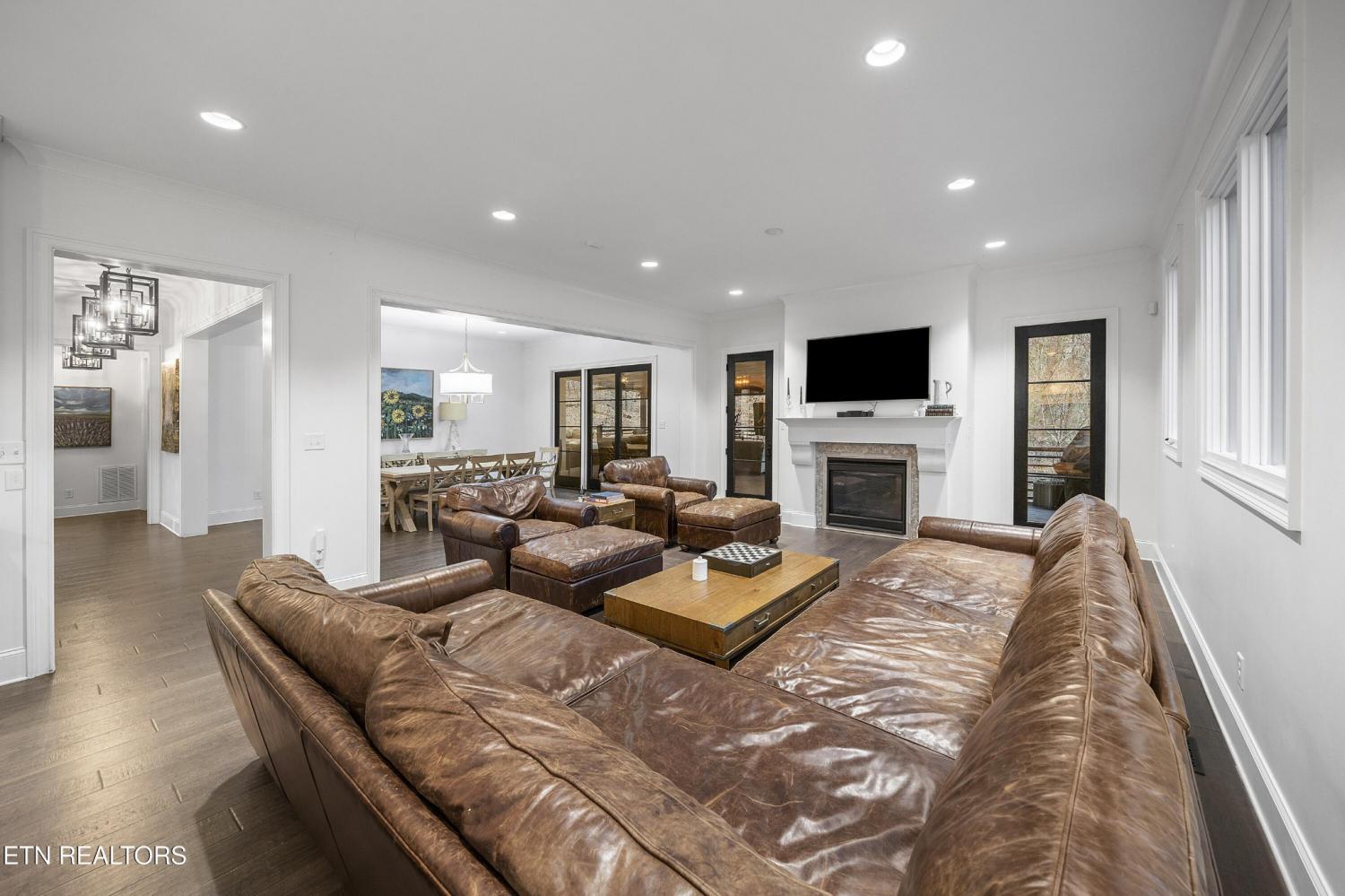 Elegant all-brick residence located in Mill Ridge off Lyons Bend Road, thoughtfully enhanced by extensive upgrades that elevate both luxury and everyday livability. Abundant windows and glass doors flood the home with natural light, highlighting refined finishes and a seamless open-concept layout where the formal dining room, main living area, and kitchen flow effortlessly together—ideal for a growing family and gracious entertaining. The chef's kitchen serves as the heart of the home, featuring an oversized island, stainless steel appliances, wine refrigerator, gas cooktop with pot filler, and beautifully appointed countertops, offering both style and functionality for daily living and hosting. The adjoining living room is anchored by a striking fireplace with an elegant mantle, creating a warm yet sophisticated focal point. The primary suite is a private retreat, complete with direct access to the rear deck and a spa-inspired bath featuring a soaking tub, glass-enclosed shower, dual vanities, and a generous walk-in closet. The upper level also includes an additional lounge area and well-appointed secondary bedrooms, providing flexible space for family life, guests, or work-from-home needs. The fully finished lower level offers exceptional versatility, featuring two private suite-style rooms, each with its own en-suite bathroom and walk-in closet, along with a dedicated fitness room, expansive storage, and a well-equipped kitchenette that opens to a spacious entertainment area. In-ceiling surround sound and walk-out access make this level ideal for hosting, extended stays, or multi-generational living. Outdoor living has been significantly expanded with a newly constructed approximately 1,000 square foot covered patio and deck, designed for year-round enjoyment. This space includes oversized fans, a Hot Spring Prism luxury hot tub seating seven, and a pre-installed gas line for a future outdoor heater, allowing the next owner to further customize the ex