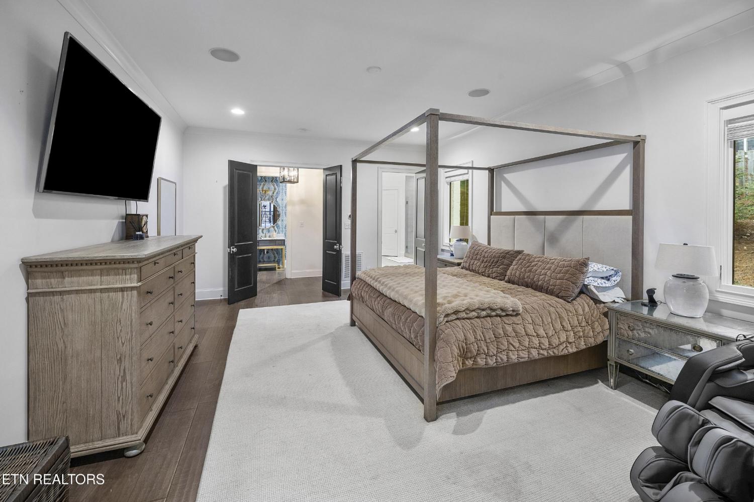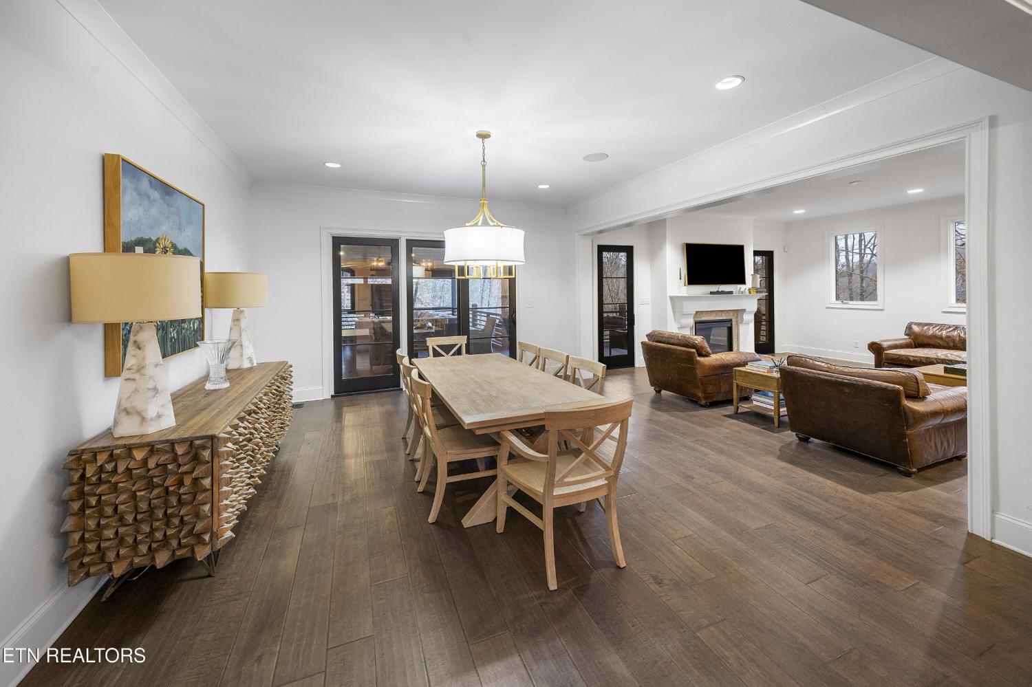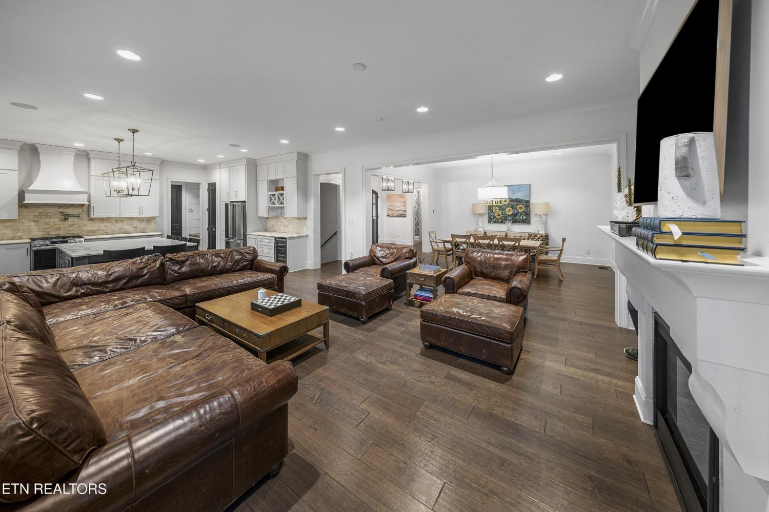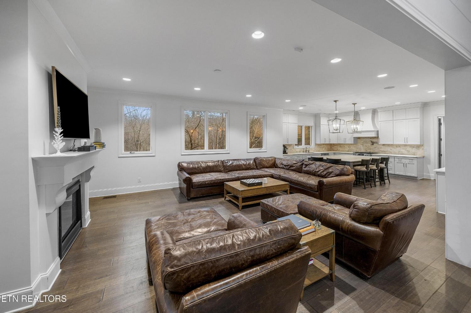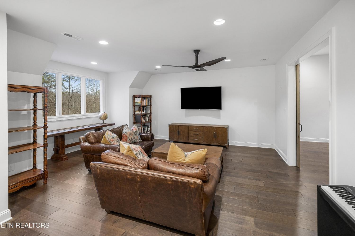 Elegant all-brick residence located in Mill Ridge off Lyons Bend Road, thoughtfully enhanced by extensive upgrades that elevate both luxury and everyday livability. Abundant windows and glass doors flood the home with natural light, highlighting refined finishes and a seamless open-concept layout where the formal dining room, main living area, and kitchen flow effortlessly together—ideal for a growing family and gracious entertaining. The chef's kitchen serves as the heart of the home, featuring an oversized island, stainless steel appliances, wine refrigerator, gas cooktop with pot filler, and beautifully appointed countertops, offering both style and functionality for daily living and hosting. The adjoining living room is anchored by a striking fireplace with an elegant mantle, creating a warm yet sophisticated focal point. The primary suite is a private retreat, complete with direct access to the rear deck and a spa-inspired bath featuring a soaking tub, glass-enclosed shower, dual vanities, and a generous walk-in closet. The upper level also includes an additional lounge area and well-appointed secondary bedrooms, providing flexible space for family life, guests, or work-from-home needs. The fully finished lower level offers exceptional versatility, featuring two private suite-style rooms, each with its own en-suite bathroom and walk-in closet, along with a dedicated fitness room, expansive storage, and a well-equipped kitchenette that opens to a spacious entertainment area. In-ceiling surround sound and walk-out access make this level ideal for hosting, extended stays, or multi-generational living. Outdoor living has been significantly expanded with a newly constructed approximately 1,000 square foot covered patio and deck, designed for year-round enjoyment. This space includes oversized fans, a Hot Spring Prism luxury hot tub seating seven, and a pre-installed gas line for a future outdoor heater, allowing the next owner to further customize the ex
