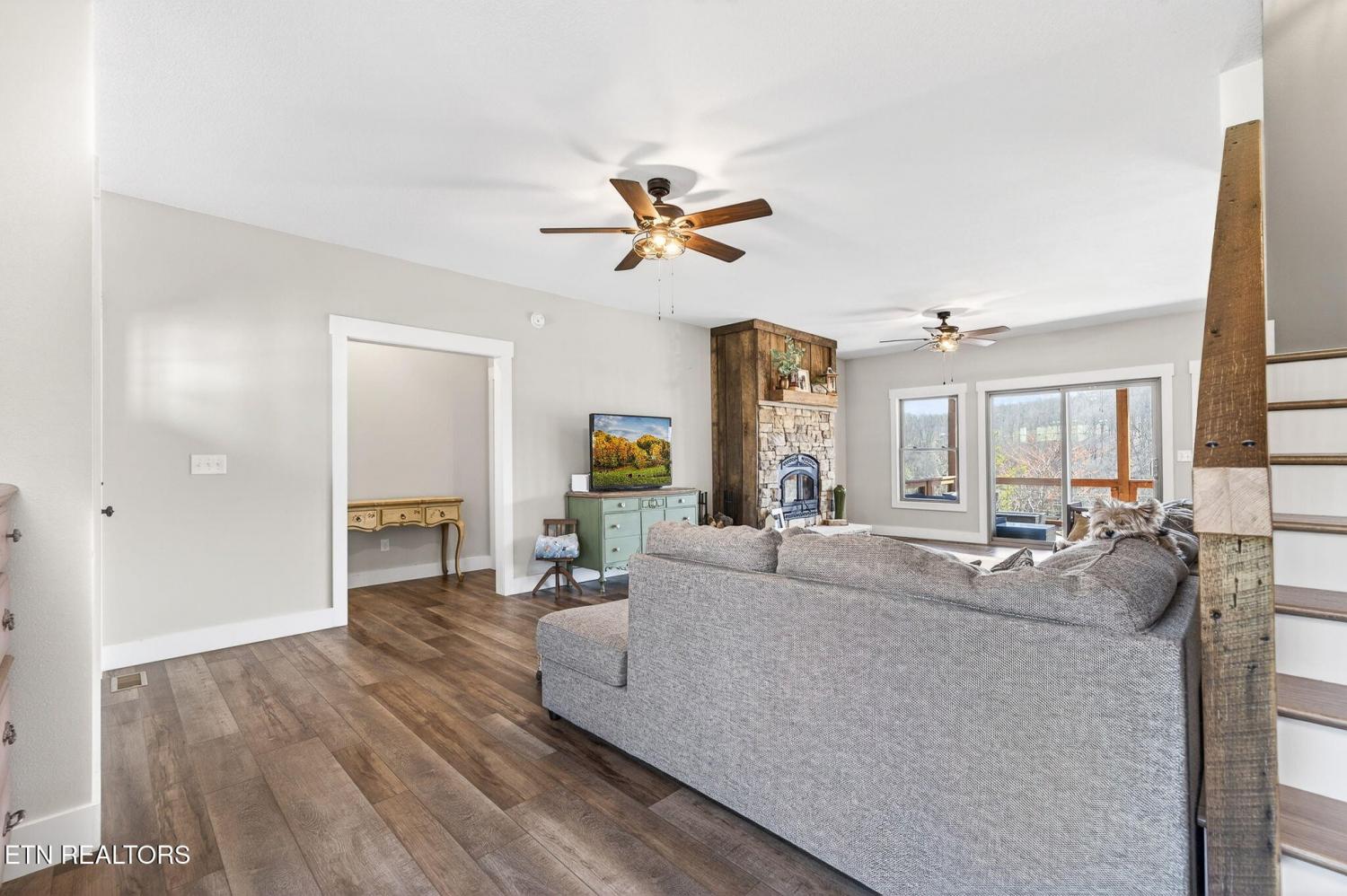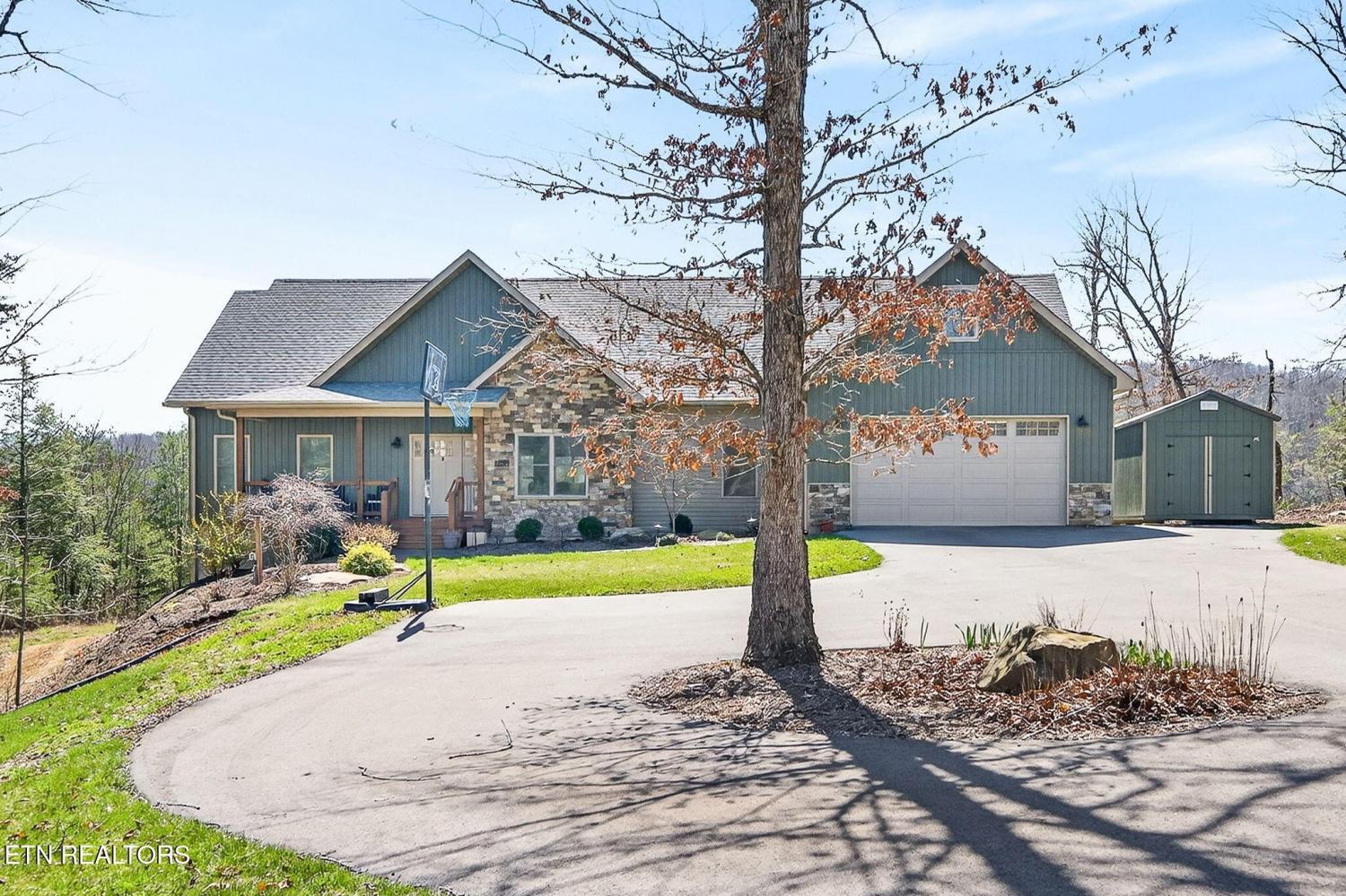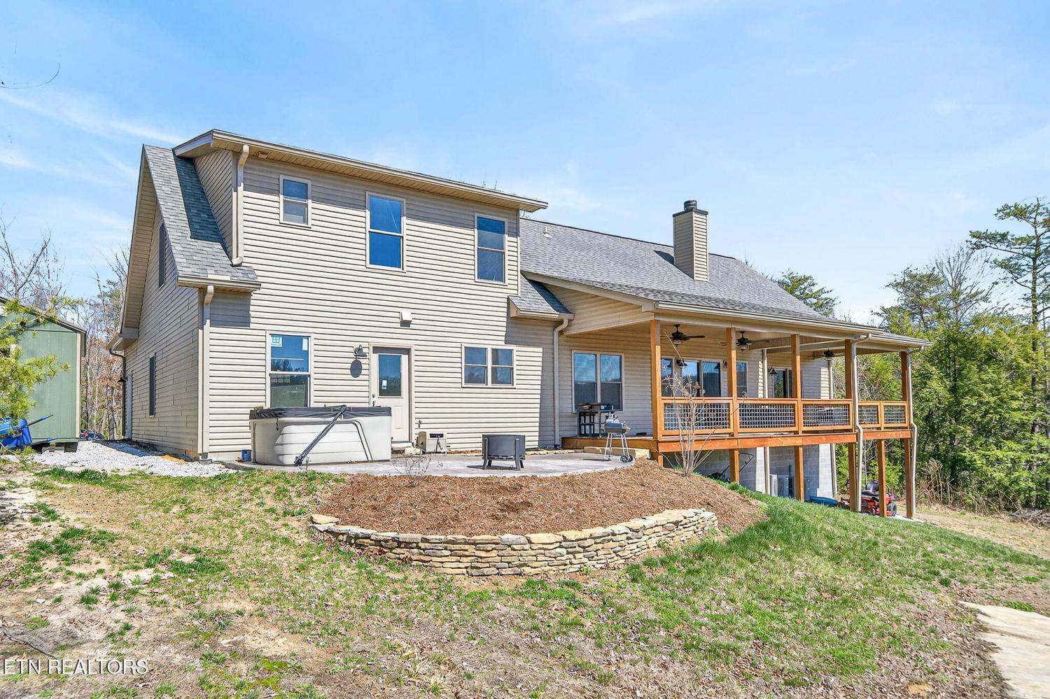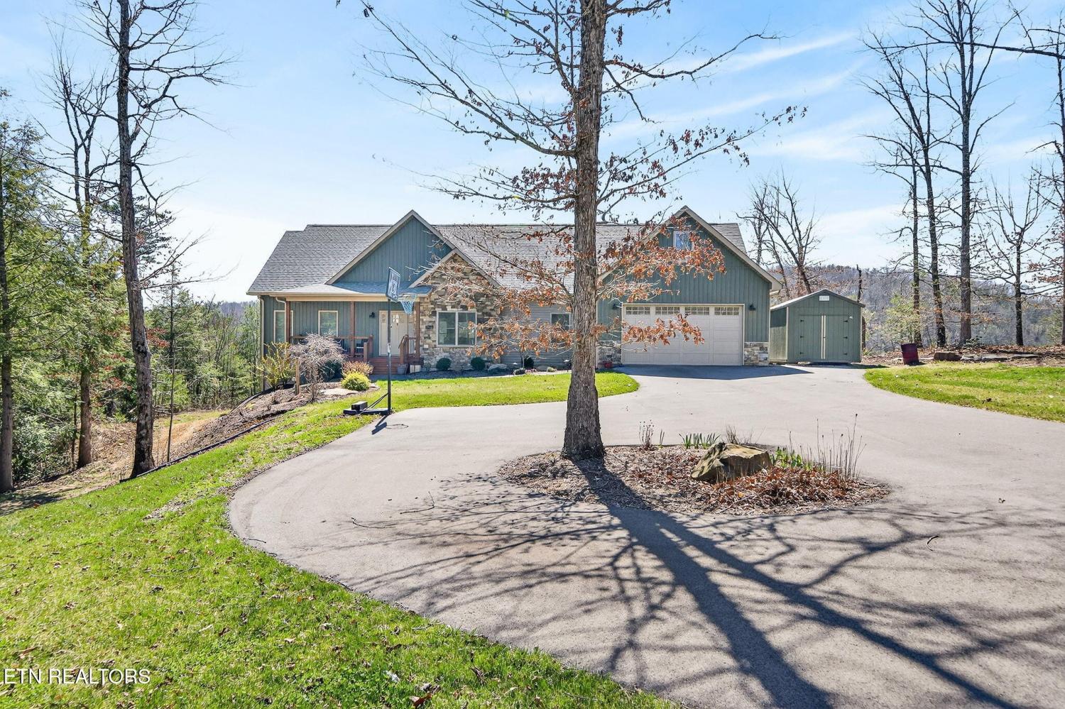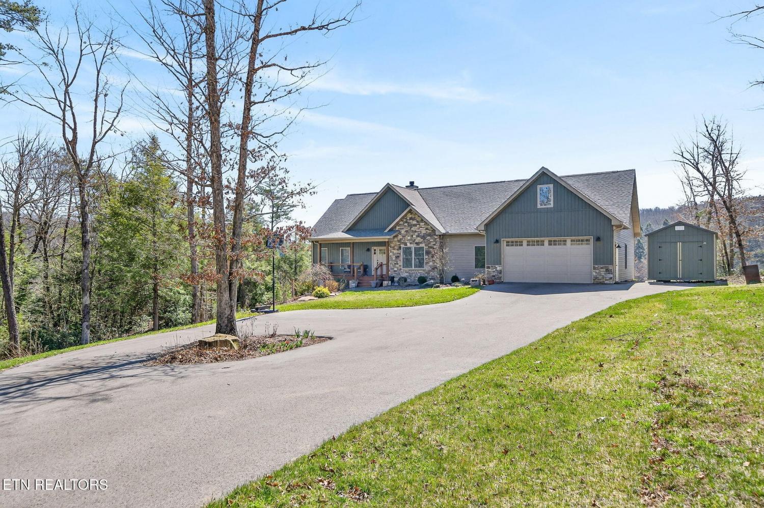 Custom-built in 2024, this private Sunset Ridge retreat offers mountain views, over 4 acres, and 200'+ of Obed River frontage with no HOA. • Custom-built in 2024 and thoughtfully designed with modern finishes • Located in Sunset Ridge with no HOA • Just over 4 acres with 200'+ of frontage on the Obed River • Mountain views and a private setting tucked back off the main road • Less than 10 minutes to I-40, shopping, and dining • Over 2,900sf of living space • 3 bedrooms, 3.5 baths • Upstairs- 2 bedrooms, a family room & a bonus room, and 2 full bathrooms • LVP flooring throughout • Spacious main-level living room with a stone fireplace and wood-burning insert • Beautiful kitchen with white cabinets, floating wall shelves, butcher block countertops, and stainless appliances • Kitchen includes a smooth-top slide-in range, hood vent, pot filler, dishwasher, and large single-bowl sink • Walk-in pantry for extra storage • Laundry room with built-in cubbies for convenient walk-in storage • Main-level primary suite with a private balcony, large walk-in closet, soaker tub, double sink oversized vanity, linen closet, and walk-in shower with glass doors • Half bath on the main level for guests • Upstairs features an ensuite bedroom with tub/shower combo, oversized vanity, and walk-in closet • Large bonus rooms upstairs • Full bath upstairs with walk-in shower • Upstairs family room for additional living space • Walk-in attic storage upstairs • Oversized 3+ car garage with 784sf, insulated glass-panel door, and 41' depth • Exterior features board and batten siding with stone accents on the front • Covered front porch, stamped concrete sidewalks and patio, and a large covered deck with fans • All-electric home with double-hung vinyl windows and an encapsulated crawlspace • Long asphalt driveway that circles in front of the home • Storage shed and hot tub are negotiable A rare opportunity to enjoy privacy, scenic views, and river frontage in a beautifu