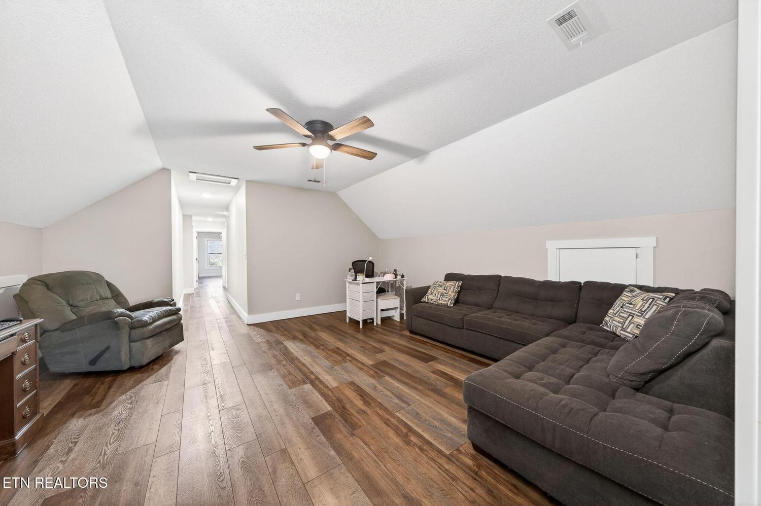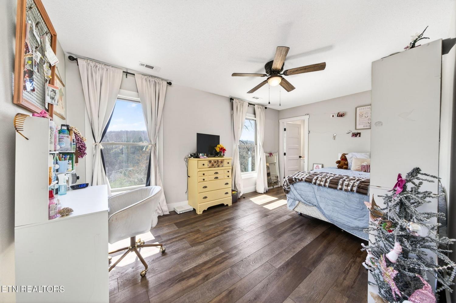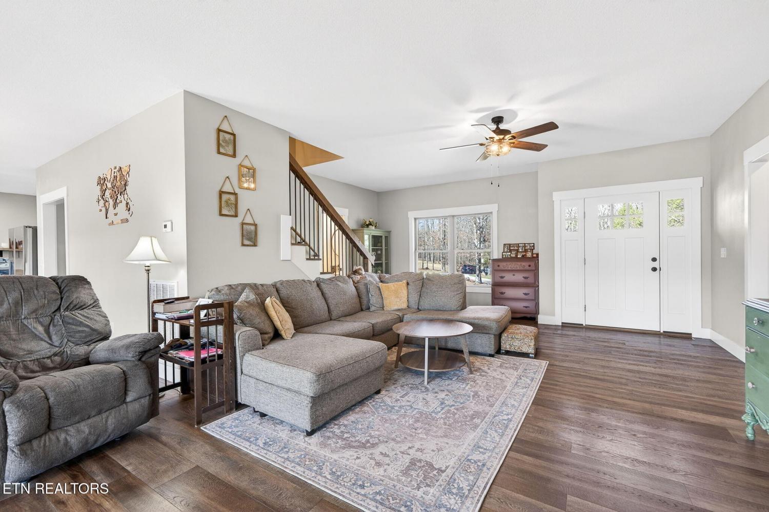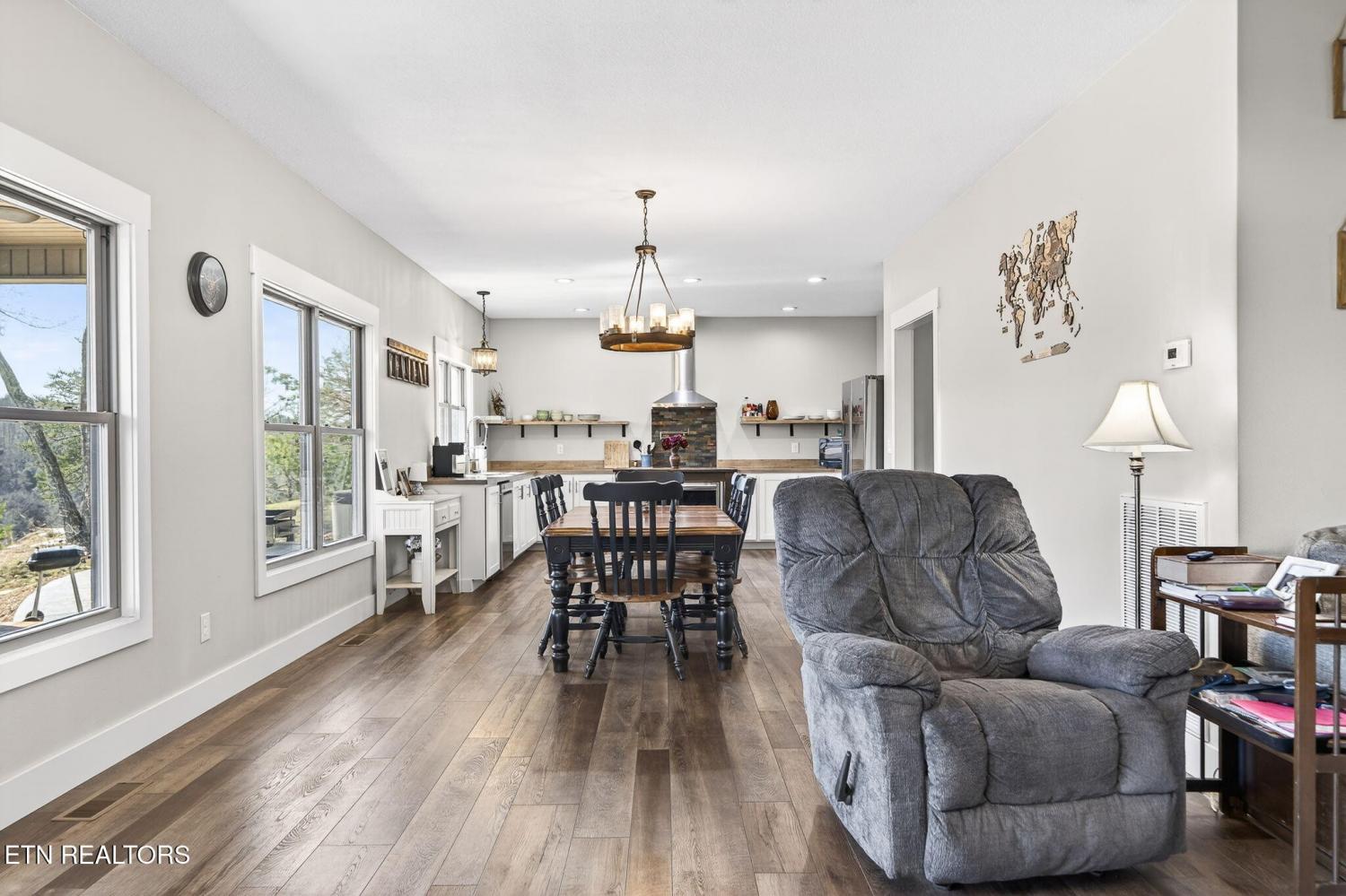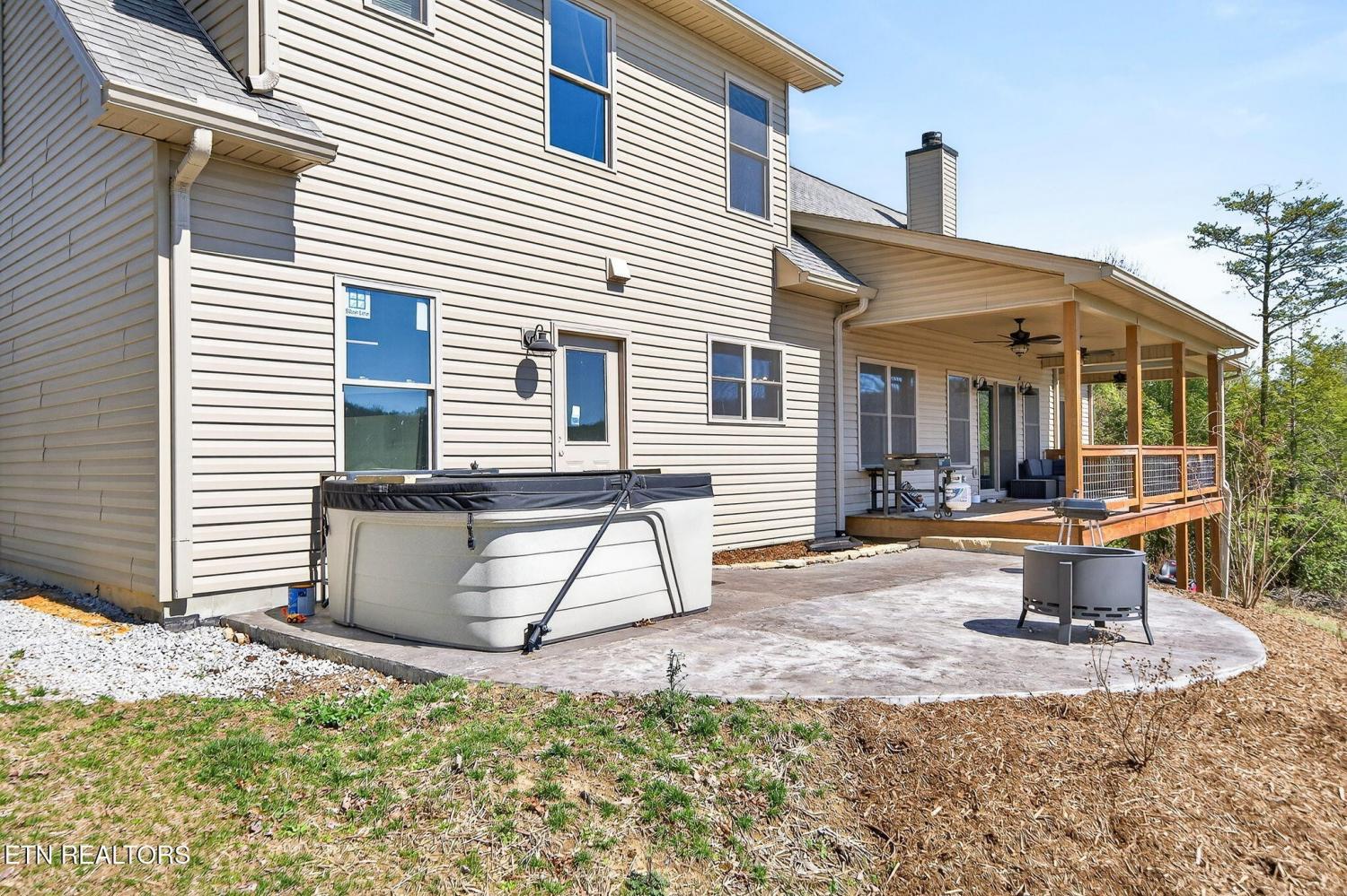 Custom-built in 2024, this private Sunset Ridge retreat offers mountain views, over 4 acres, and 200'+ of Obed River frontage with no HOA. • Custom-built in 2024 and thoughtfully designed with modern finishes • Located in Sunset Ridge with no HOA • Just over 4 acres with 200'+ of frontage on the Obed River • Mountain views and a private setting tucked back off the main road • Less than 10 minutes to I-40, shopping, and dining • Over 2,900sf of living space • 3 bedrooms, 3.5 baths • Upstairs- 2 bedrooms, a family room & a bonus room, and 2 full bathrooms • LVP flooring throughout • Spacious main-level living room with a stone fireplace and wood-burning insert • Beautiful kitchen with white cabinets, floating wall shelves, butcher block countertops, and stainless appliances • Kitchen includes a smooth-top slide-in range, hood vent, pot filler, dishwasher, and large single-bowl sink • Walk-in pantry for extra storage • Laundry room with built-in cubbies for convenient walk-in storage • Main-level primary suite with a private balcony, large walk-in closet, soaker tub, double sink oversized vanity, linen closet, and walk-in shower with glass doors • Half bath on the main level for guests • Upstairs features an ensuite bedroom with tub/shower combo, oversized vanity, and walk-in closet • Large bonus rooms upstairs • Full bath upstairs with walk-in shower • Upstairs family room for additional living space • Walk-in attic storage upstairs • Oversized 3+ car garage with 784sf, insulated glass-panel door, and 41' depth • Exterior features board and batten siding with stone accents on the front • Covered front porch, stamped concrete sidewalks and patio, and a large covered deck with fans • All-electric home with double-hung vinyl windows and an encapsulated crawlspace • Long asphalt driveway that circles in front of the home • Storage shed and hot tub are negotiable A rare opportunity to enjoy privacy, scenic views, and river frontage in a beautifu