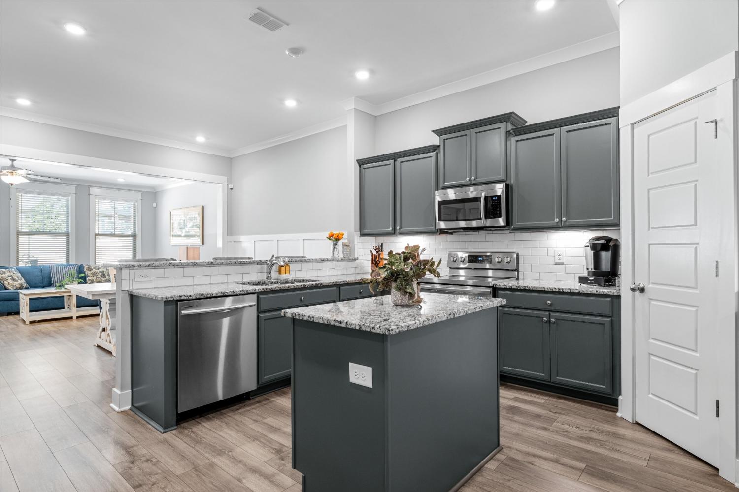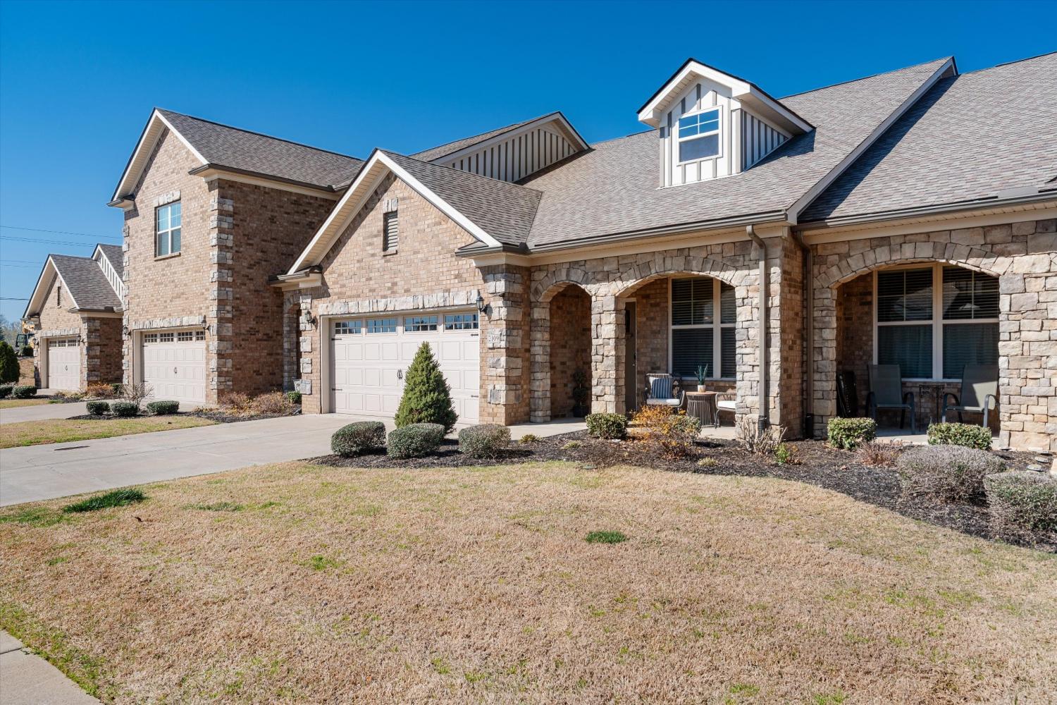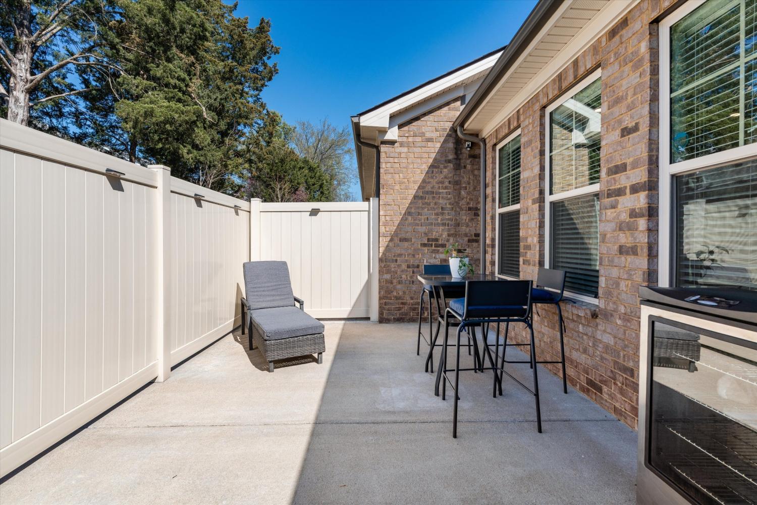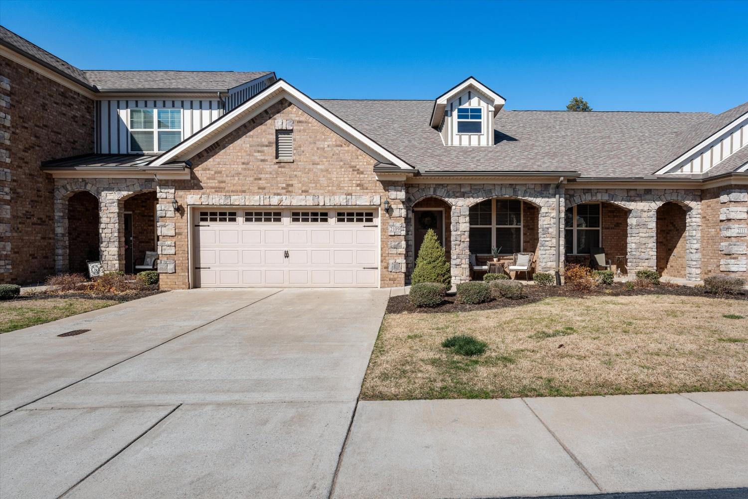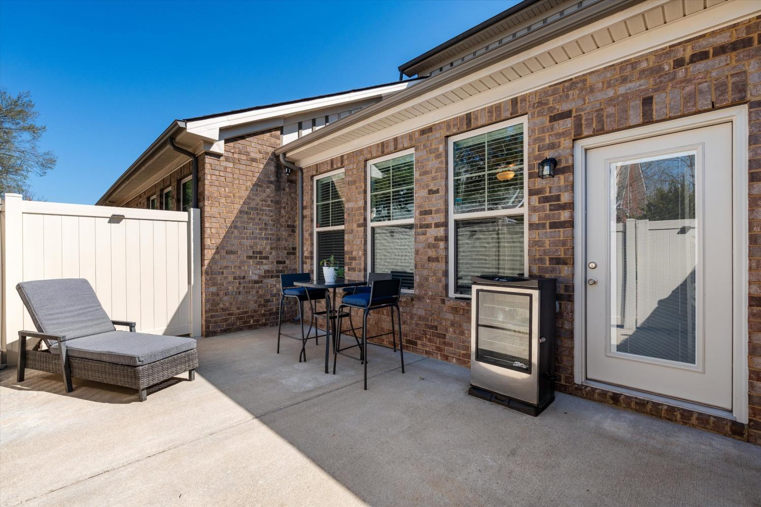 LOCATION, LOCATION—right in the center of Murfreesboro with everything just minutes away. Situated in the highly desirable Brookwood Point community, this move-in ready townhome offers quick access to MTSU, downtown Murfreesboro, premier shopping and dining, and top-rated public and private schools. Built in 2021, this all-brick home stands out with an expanded layout that includes an extended family/sunroom—adding valuable square footage, natural light, and flexible living space for entertaining, relaxing, or working from home. The open-concept main level is designed for both function and flow. The kitchen features upgraded cabinetry with abundant storage, granite countertops, stainless steel appliances, a bar-height peninsula open to the living and dining areas, plus a freestanding island—offering additional prep space, seating, and versatility. The main-level primary suite provides comfort and privacy, complete with double vanities, upgraded cabinetry, and a walk-in shower. Upstairs includes two spacious bedrooms with walk-in closets, a full bath, and excellent attic storage. Step outside to a fully fenced patio backing to a beautiful tree line, with additional green space and walking area behind the home—creating a more open, peaceful setting. Smart home features include smart thermostats, a Ring doorbell camera, and a Ring security system with an additional rear camera for added convenience and peace of mind. Additional highlights include a 2-car garage and exceptional storage throughout. HOA covers landscaping, exterior maintenance, and insurance for easy, low-maintenance living. Washer and dryer do not convey.