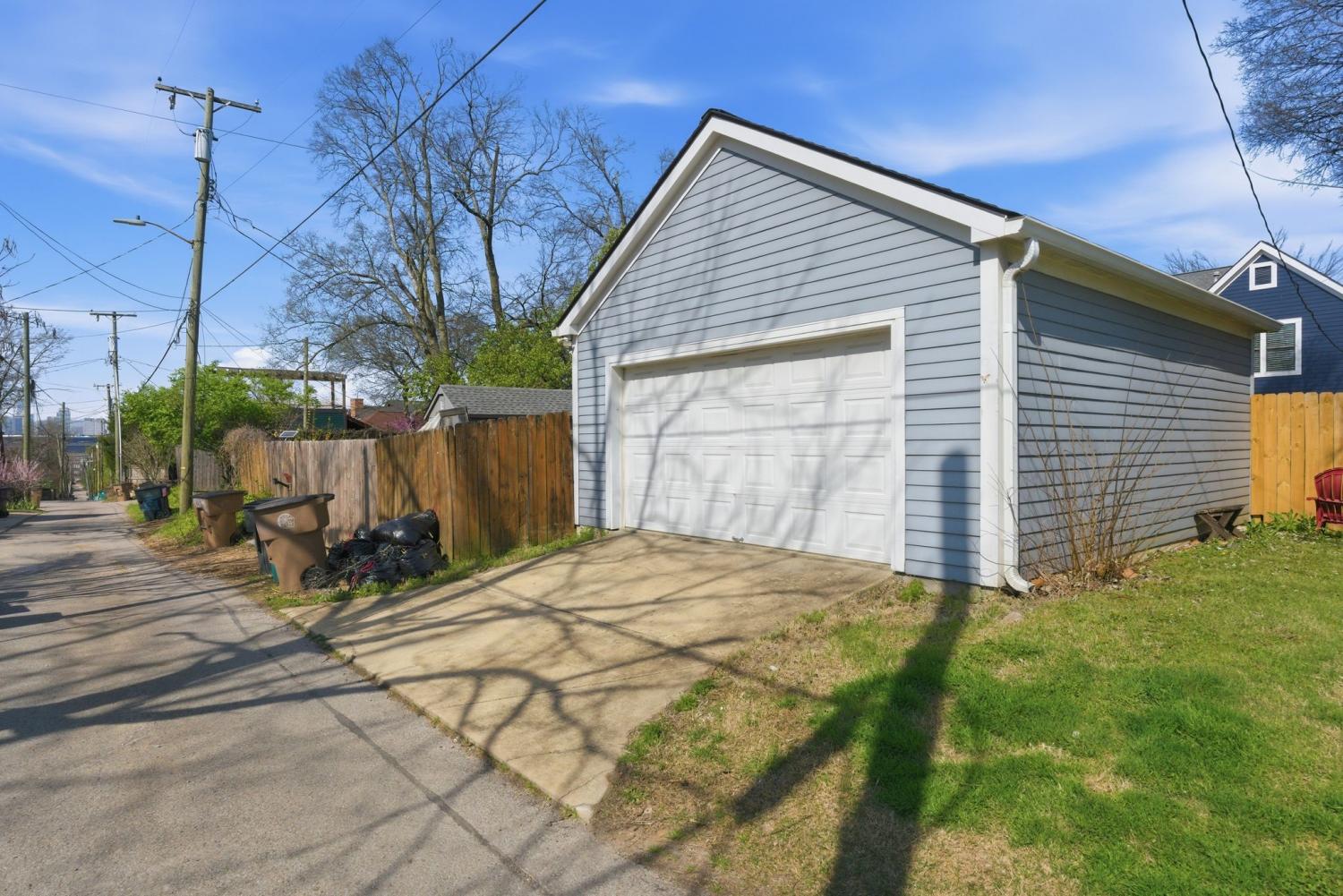 Historic Edgefield charm with walkability, downtown views, and a hard to find yard and garage. This light filled East Nashville home sits just minutes from Five Points, coffee shops, restaurants, and downtown. Inside you will find vaulted ceilings, hardwoods, built ins, fireplace, and a flexible lofted den ideal for an office or second living space. The layout offers a main level bedroom and full bath plus an additional bedroom and bath upstairs. Step outside to a large fenced backyard, patio, attached storage room and a detached 2-car garage with alley access. Almost every major system has been updated within the last few years. *Full list attached.* Washer, dryer, fridge to remain.