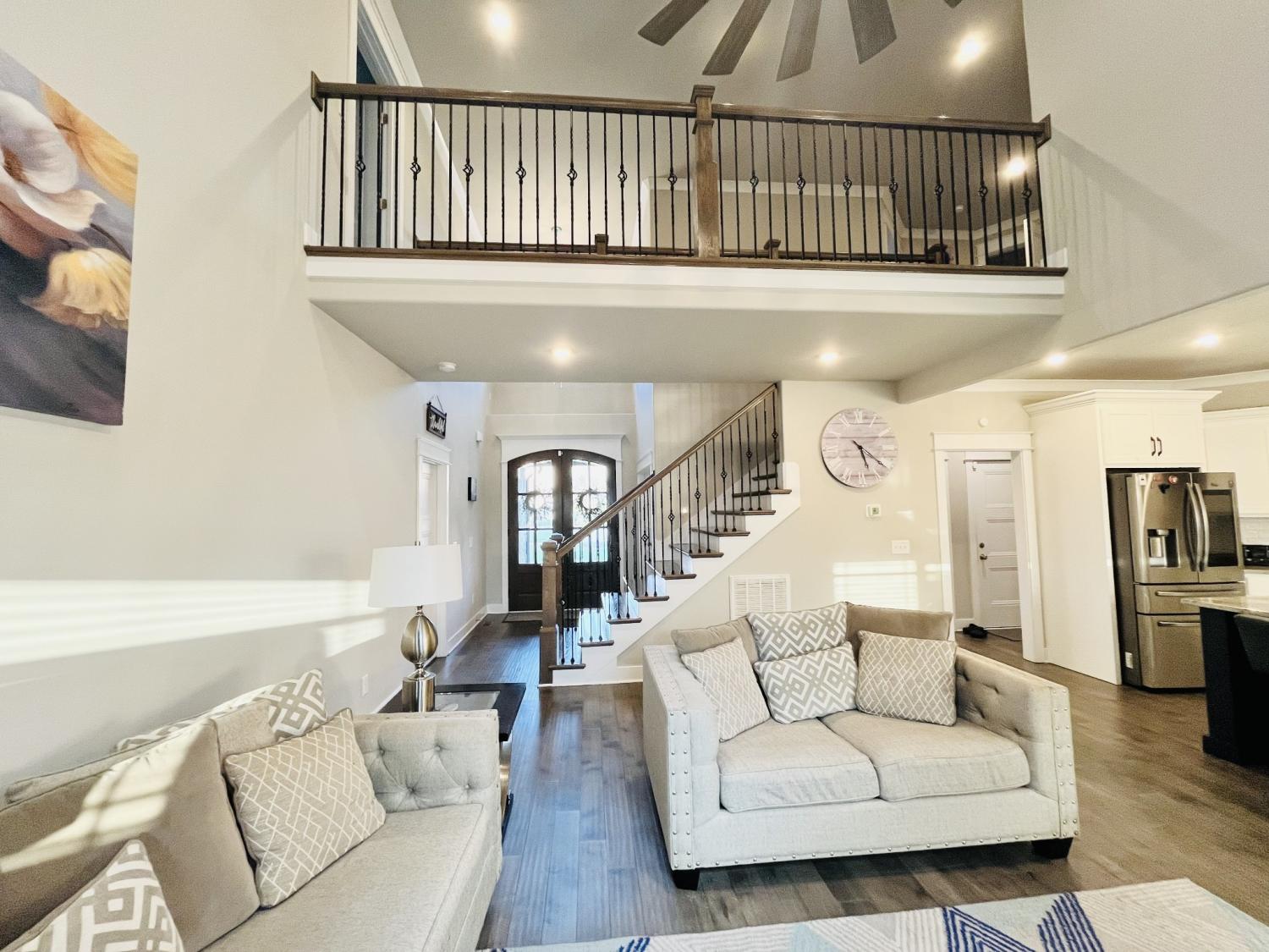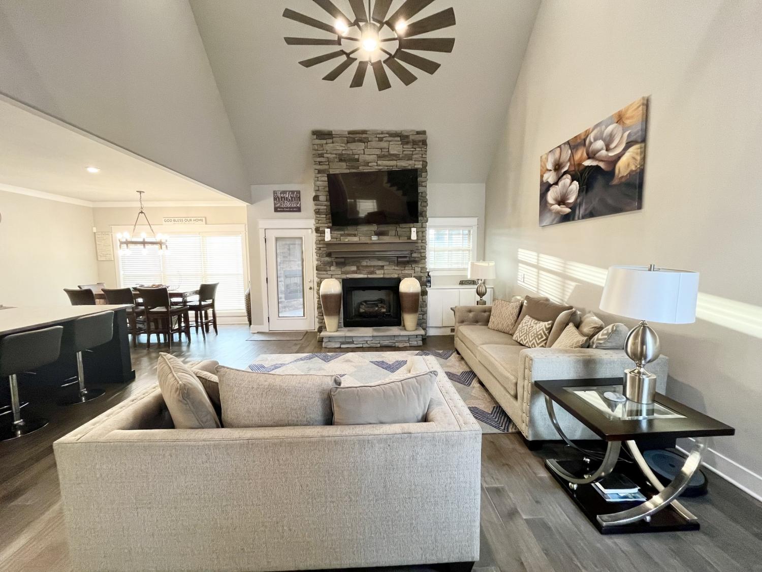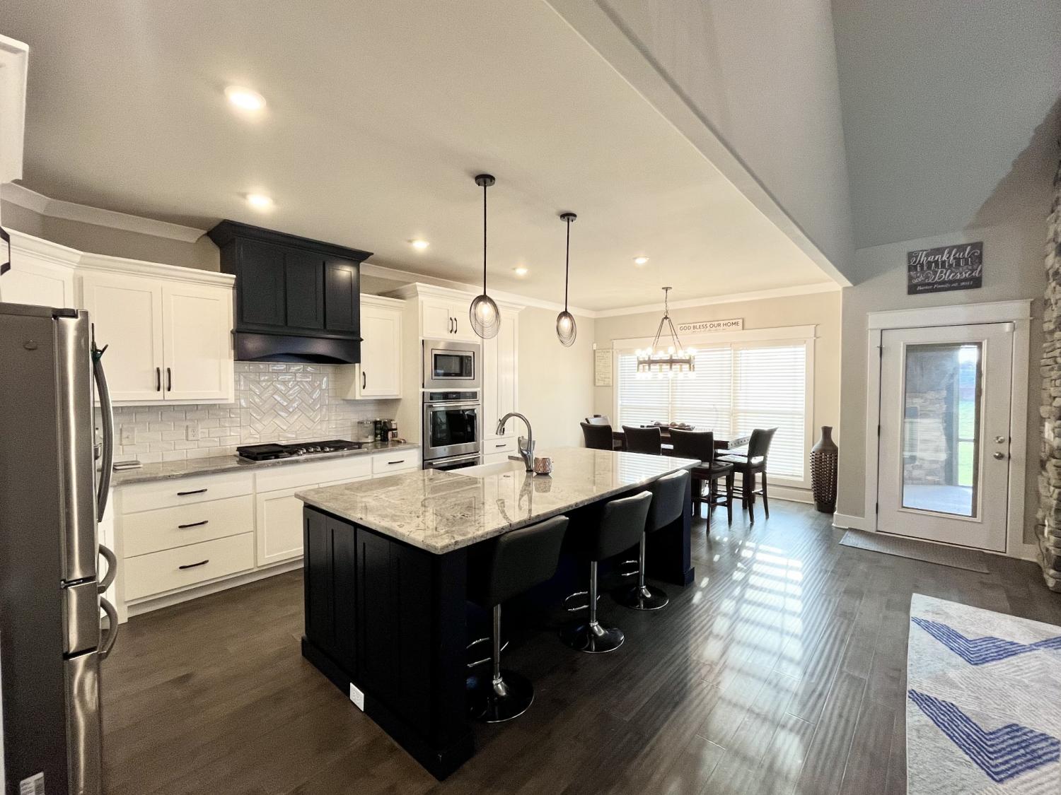 Welcome to refined living in the desirable Walnut Downs subdivision in Christiana, TN. Situated on a rare .91-acre lot backing to open farmland, this all-brick, move-in ready home offers the perfect blend of privacy, space, and upscale comfort. Built in 2021, this thoughtfully designed 5-bedroom, 3-bathroom home spans 3,500 sq ft with an open-concept layout ideal for both everyday living and entertaining. The heart of the home features a stunning kitchen complete with a full slab island, built-in convection double ovens, touch-activated faucet, and seamless flow into the main living area, where vaulted ceilings and a gas fireplace create a warm, elevated atmosphere. The main level offers a versatile formal dining room that can easily function as a home office, along with a spacious primary suite designed for comfort and privacy. Enjoy dual walk-in closets, separate vanities, and an oversized walk-in shower, while the additional main-floor bath features a relaxing jetted tub. Upstairs, a large bonus space with built-in surround sound, is pre-plumbed for a wet bar, offering endless possibilities for entertaining or multi-generational living. Storage is abundant with extensive floored attic space. Step outside to your covered and screened-in back porch with a gas fireplace also with built-in surround sound, the perfect place to unwind while overlooking a peaceful backyard that backs up to a farm—no rear neighbors, just open views. The half basketball court-width driveway and 3-car garage provide both functionality and curb appeal. Additional highlights include a gas cooktop, tankless water heater, TechShield roof decking for energy efficiency, and a low HOA of just $20/month. Conveniently located just minutes from local shopping, dining, and attractions like Uncle Nearest Distillery and the Tennessee Walking Horse National Celebration grounds. This home offers the space, upgrades, and setting today’s buyers are searching for—schedule your private showing today.