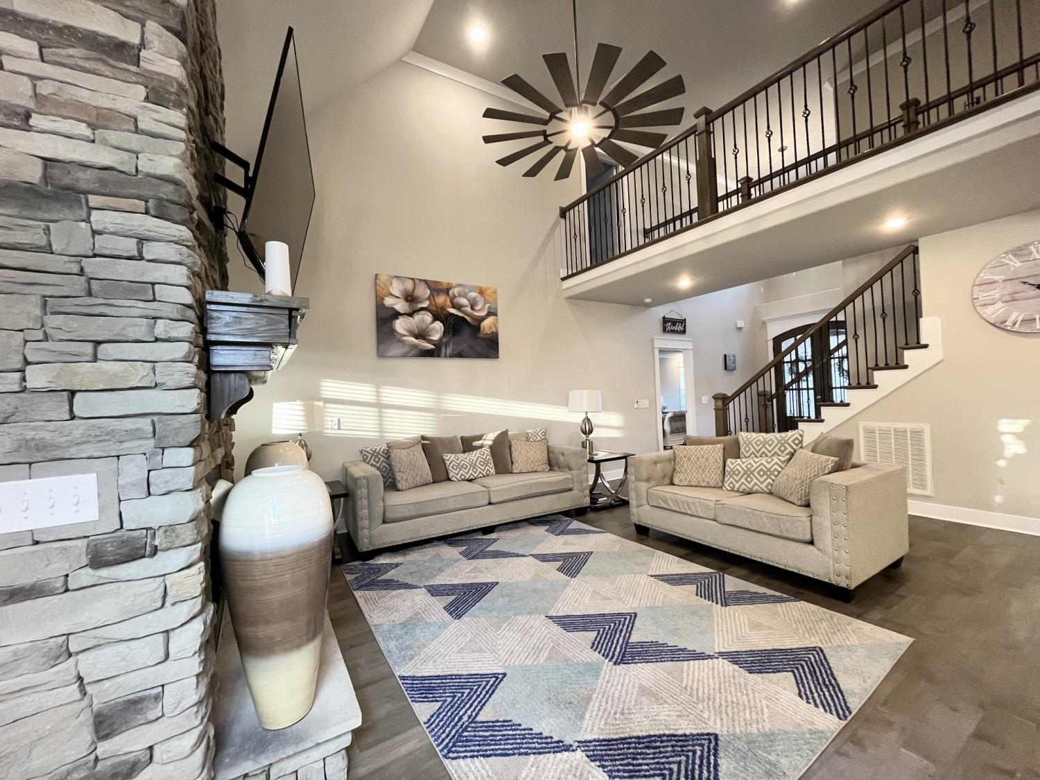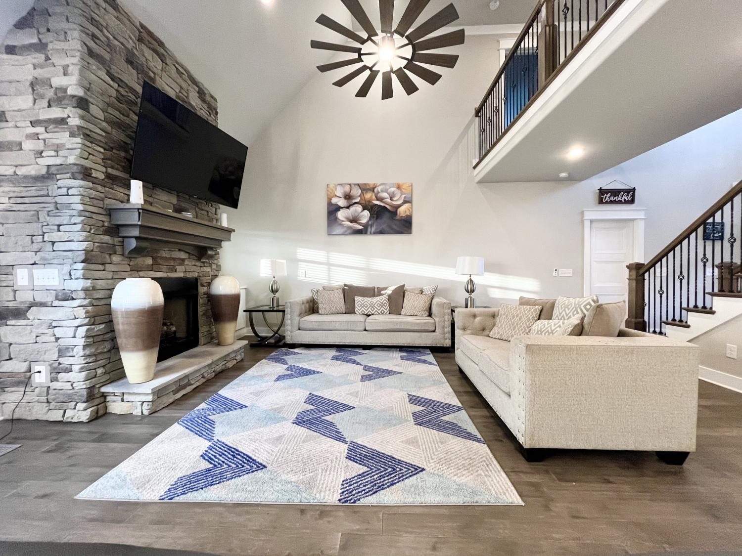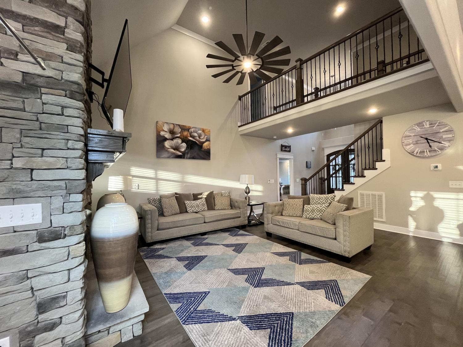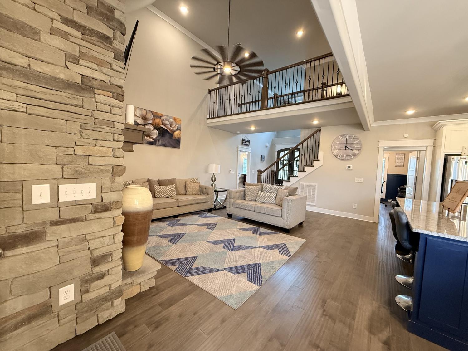 Welcome to refined living in the desirable Walnut Downs subdivision in Christiana, TN. Situated on a rare .91-acre lot backing to open farmland, this all-brick, move-in ready home offers the perfect blend of privacy, space, and upscale comfort. Built in 2021, this thoughtfully designed 5-bedroom, 3-bathroom home spans 3,500 sq ft with an open-concept layout ideal for both everyday living and entertaining. The heart of the home features a stunning kitchen complete with a full slab island, built-in convection double ovens, touch-activated faucet, and seamless flow into the main living area, where vaulted ceilings and a gas fireplace create a warm, elevated atmosphere. The main level offers a versatile formal dining room that can easily function as a home office, along with a spacious primary suite designed for comfort and privacy. Enjoy dual walk-in closets, separate vanities, and an oversized walk-in shower, while the additional main-floor bath features a relaxing jetted tub. Upstairs, a large bonus space with built-in surround sound, is pre-plumbed for a wet bar, offering endless possibilities for entertaining or multi-generational living. Storage is abundant with extensive floored attic space. Step outside to your covered and screened-in back porch with a gas fireplace also with built-in surround sound, the perfect place to unwind while overlooking a peaceful backyard that backs up to a farm—no rear neighbors, just open views. The half basketball court-width driveway and 3-car garage provide both functionality and curb appeal. Additional highlights include a gas cooktop, tankless water heater, TechShield roof decking for energy efficiency, and a low HOA of just $20/month. Conveniently located just minutes from local shopping, dining, and attractions like Uncle Nearest Distillery and the Tennessee Walking Horse National Celebration grounds. This home offers the space, upgrades, and setting today’s buyers are searching for—schedule your private showing today.